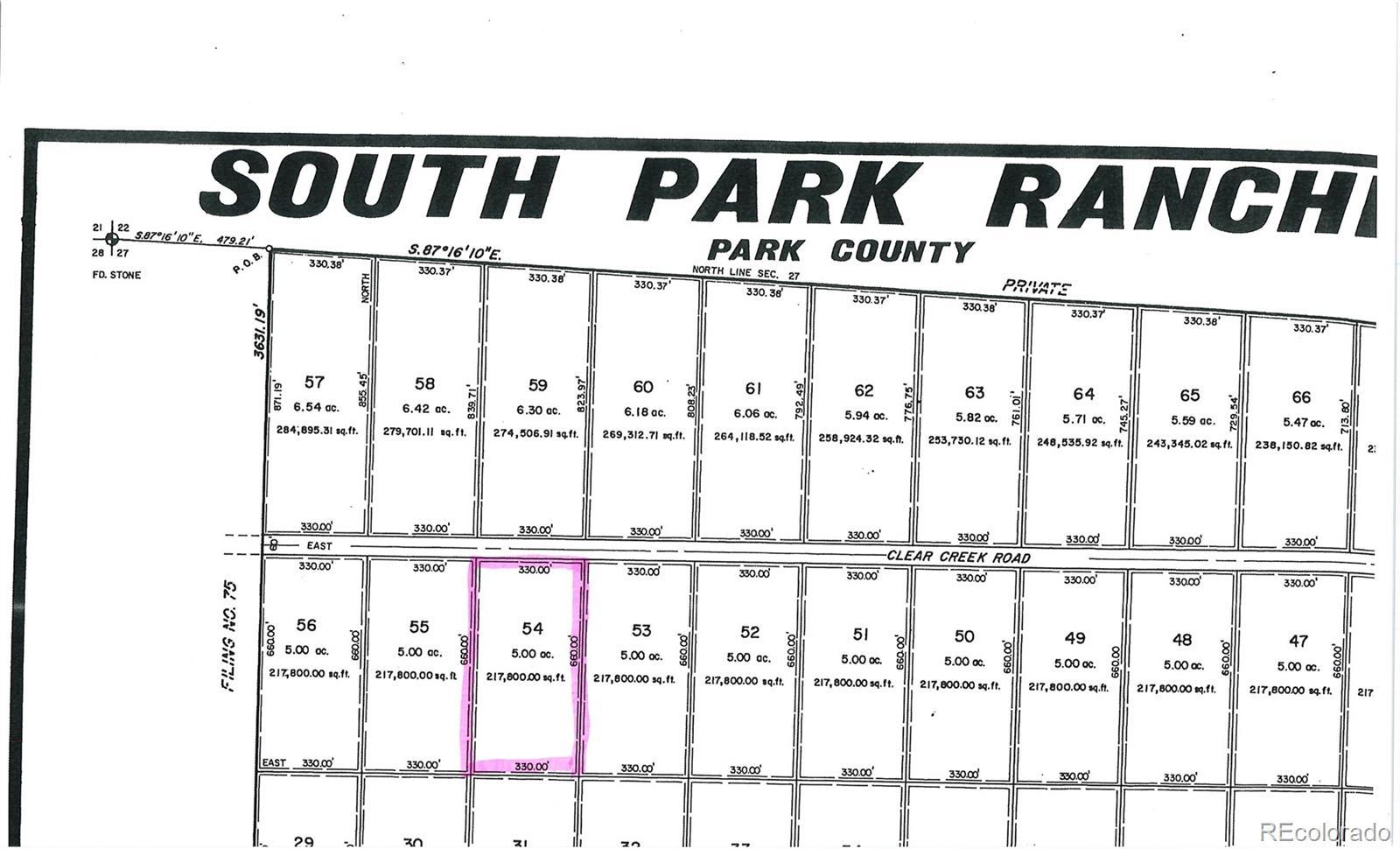 There is so much adventure to be had in the mountains. Outdoor enthusiasts will love this 5 acre camping lot in South Park Ranches. Pull up the camper on to this level lot with 360 degree mountain views and head out to all the outdoor recreation you could wish for. Fishing and boating at Eleven Mile and Spinney are right across the road, or try your hand at legendary fly fishing on the Dream Stream. Several national forest trails are nearby for hiking, biking, horseback riding, and off-roading. World class skiing and White Water rafting are just down the road. 5 acres gives you plenty of space to spread out, relax and enjoy the peace and quiet, the colorful sunrises and sunsets, and escape the city crowds. Minutes away in the historic town of Hartsel you can visit quaint restaurants and partake in the mountain hospitality. Camp for now, or build your own off-grid getaway. Trees, No; Power, No; Phone, Yes. SOUTH PARK RANCHES FILING 48 LOT 54