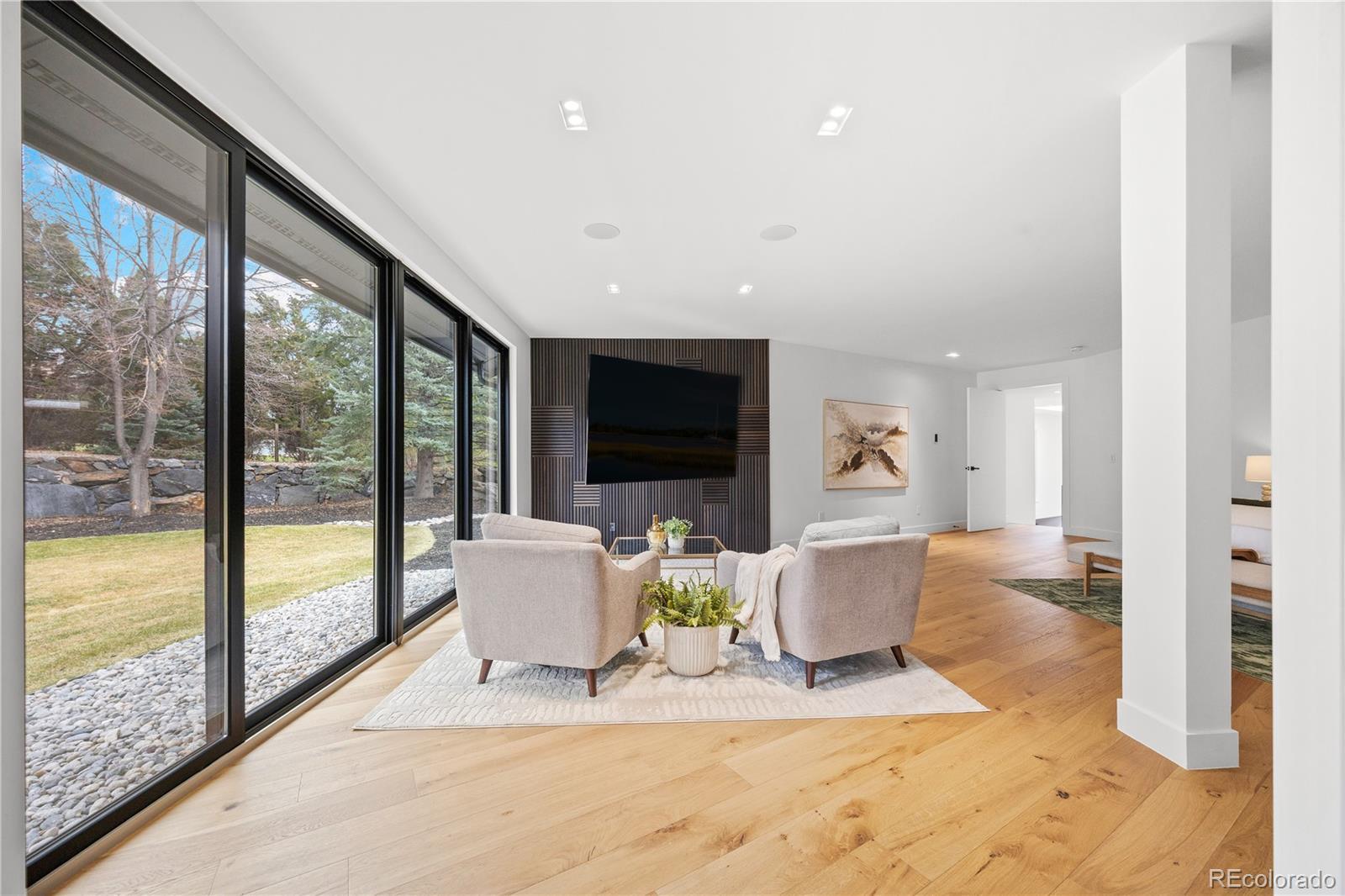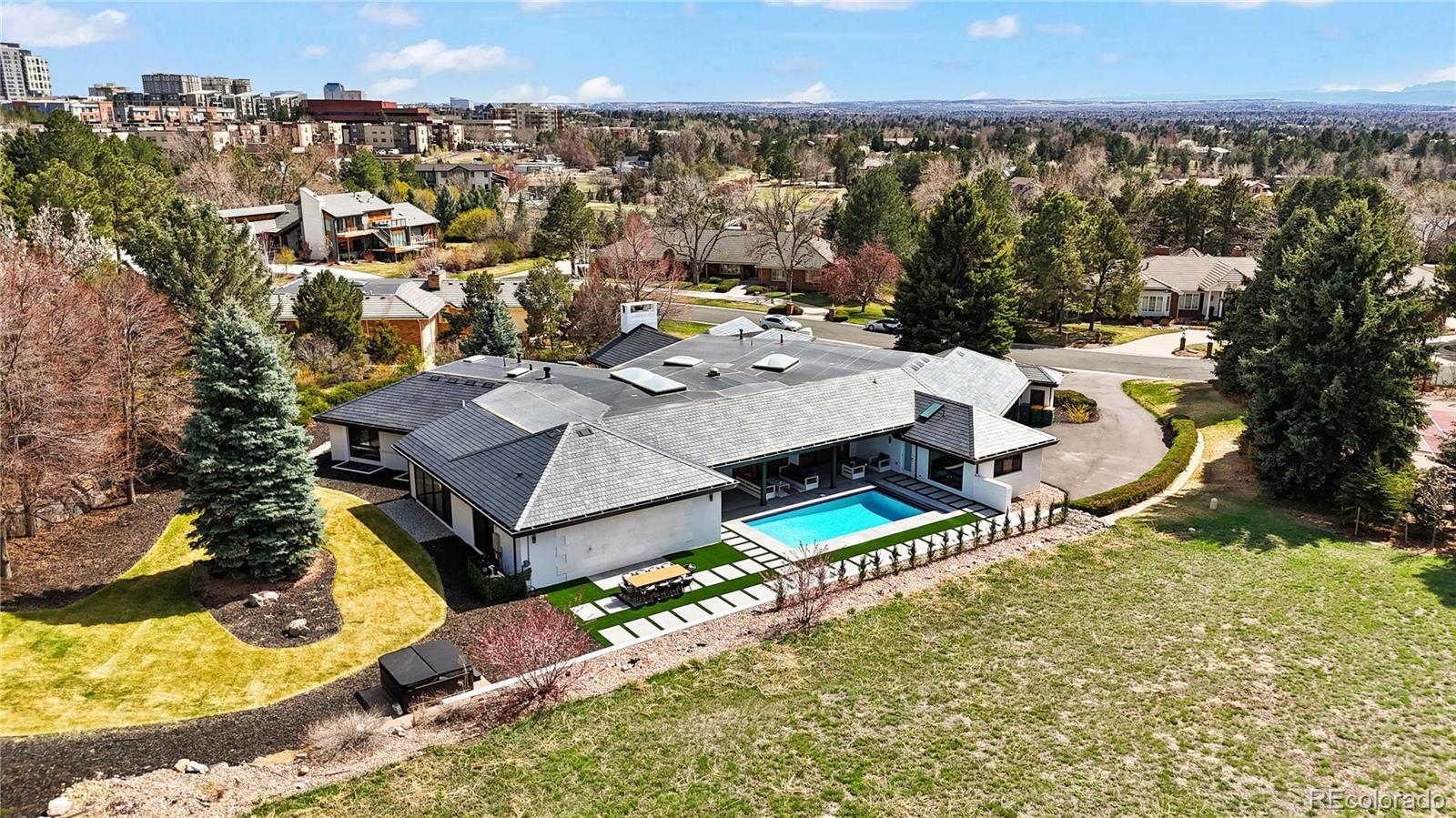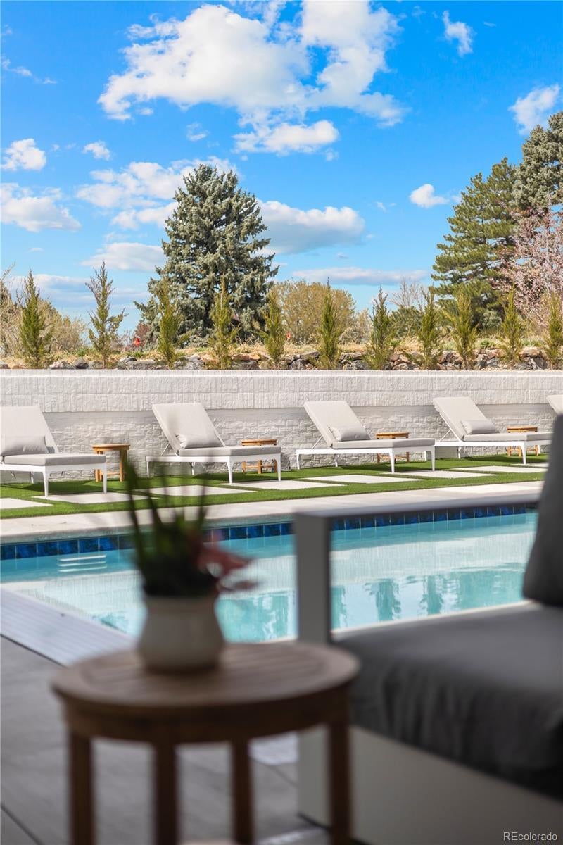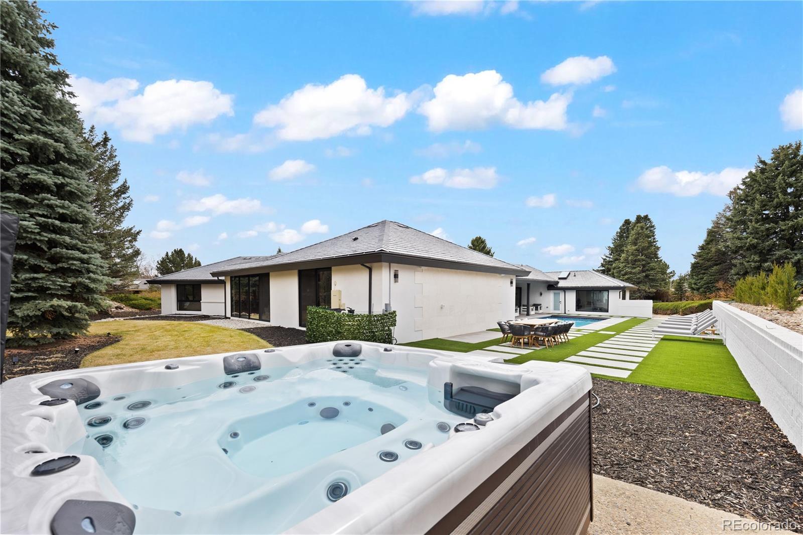 Welcome to this exceptional estate in the highly sought-after Cherry Hills Village community, where timeless elegance meets modern comfort. Spanning over 9,000 square feet of light-filled living space, this stunning residence offers a lifestyle of unparalleled sophistication and ease. Step into a grand, open-concept main level designed for both everyday living and elegant entertaining. The gourmet kitchen is a chef’s dream, outfitted with top-of-the-line Miele appliances, beautiful cabinetry, large hidden pantry and a seamless flow into the living and dining areas. Accordion glass doors in both the kitchen and living room create a true indoor-outdoor experience, opening to a serene backyard oasis featuring a sparkling pool, lush turf, and a shaded patio—perfect for Colorado’s sunny days and cool evenings. The expansive primary suite is a true retreat, featuring a spa-like ensuite, designer walk-in closet with built-in laundry, and elegant finishes throughout. Three additional bedrooms on the main level each offer en-suite bathrooms, providing privacy and comfort for family or guests. The lower level is an entertainer’s dream with a large open lounge, cozy fireplace, full bar, and a theater screen for movie nights. Two additional bedrooms, a full laundry room, and a luxurious spa-style bathroom with a sauna and shower complete the space. Ideally positioned directly across from the walking trail #6247 that leads to other trails within the Village, the home enjoys immediate access to serene outdoor paths perfect for morning strolls or evening walks. Adding to the sense of privacy and open space, the vacant lot directly to the west—located just above the property—is owned by a neighbor within the community and is not slated for future development. From the thoughtful layout to the high-end finishes and seamless indoor-outdoor flow, this Cherry Hills Village home embodies refined living at its finest.