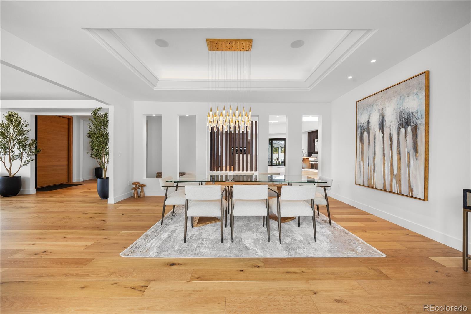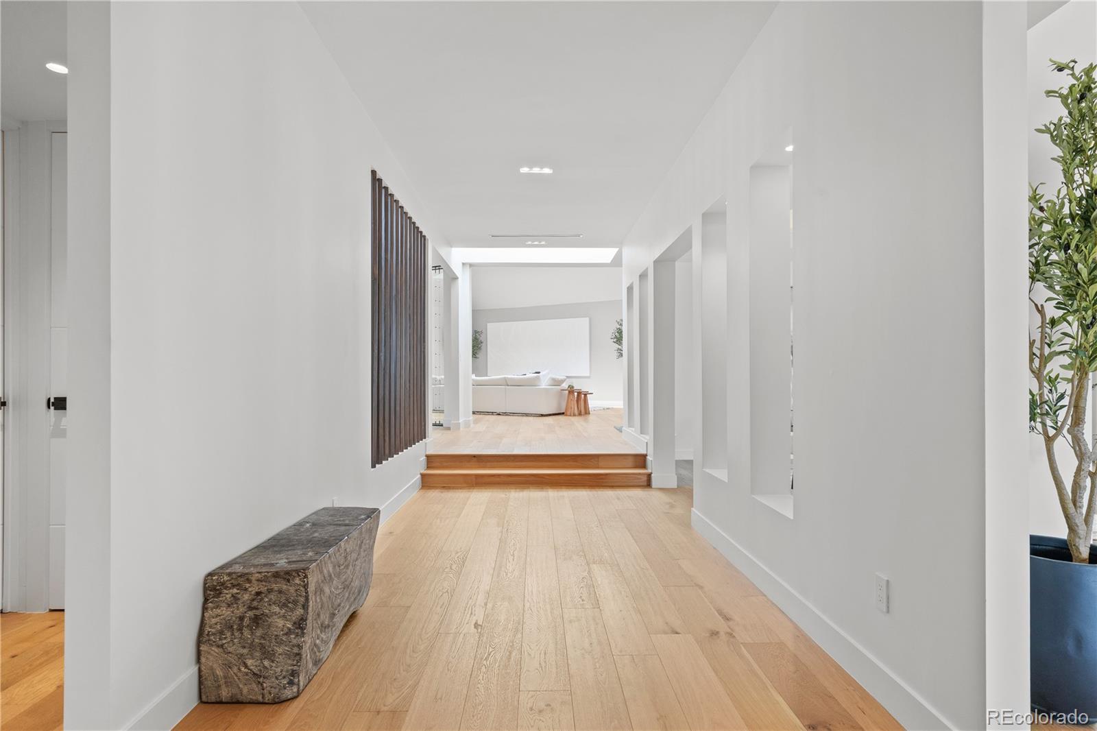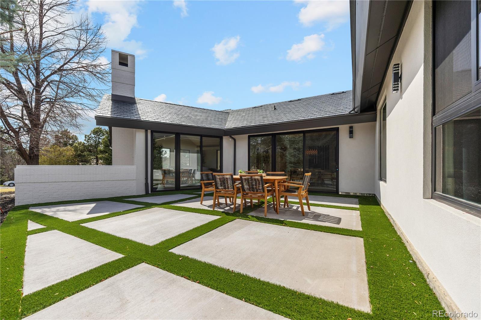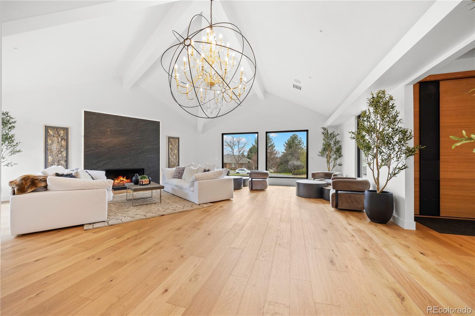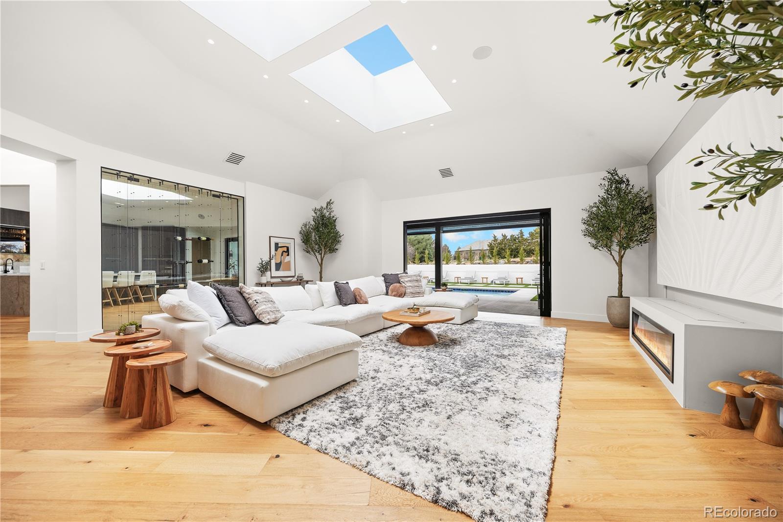 Welcome to this exceptional estate in the highly sought-after Cherry Hills Village community, where timeless elegance meets modern comfort. Spanning over 9,000 square feet of light-filled living space, this stunning residence offers a lifestyle of unparalleled sophistication and ease. Step into a grand, open-concept main level designed for both everyday living and elegant entertaining. The gourmet kitchen is a chef’s dream, outfitted with top-of-the-line Miele appliances, beautiful cabinetry, large hidden pantry and a seamless flow into the living and dining areas. Accordion glass doors in both the kitchen and living room create a true indoor-outdoor experience, opening to a serene backyard oasis featuring a sparkling pool, lush turf, and a shaded patio—perfect for Colorado’s sunny days and cool evenings. The expansive primary suite is a true retreat, featuring a spa-like ensuite, designer walk-in closet with built-in laundry, and elegant finishes throughout. Three additional bedrooms on the main level each offer en-suite bathrooms, providing privacy and comfort for family or guests. The lower level is an entertainer’s dream with a large open lounge, cozy fireplace, full bar, and a theater screen for movie nights. Two additional bedrooms, a full laundry room, and a luxurious spa-style bathroom with a sauna and shower complete the space. Ideally positioned directly across from the walking trail #6247 that leads to other trails within the Village, the home enjoys immediate access to serene outdoor paths perfect for morning strolls or evening walks. Adding to the sense of privacy and open space, the vacant lot directly to the west—located just above the property—is owned by a neighbor within the community and is not slated for future development. From the thoughtful layout to the high-end finishes and seamless indoor-outdoor flow, this Cherry Hills Village home embodies refined living at its finest.