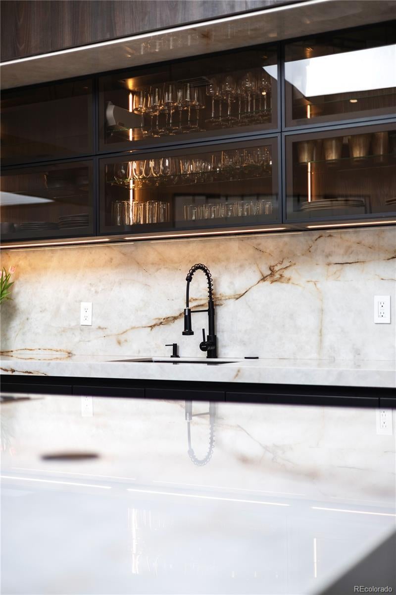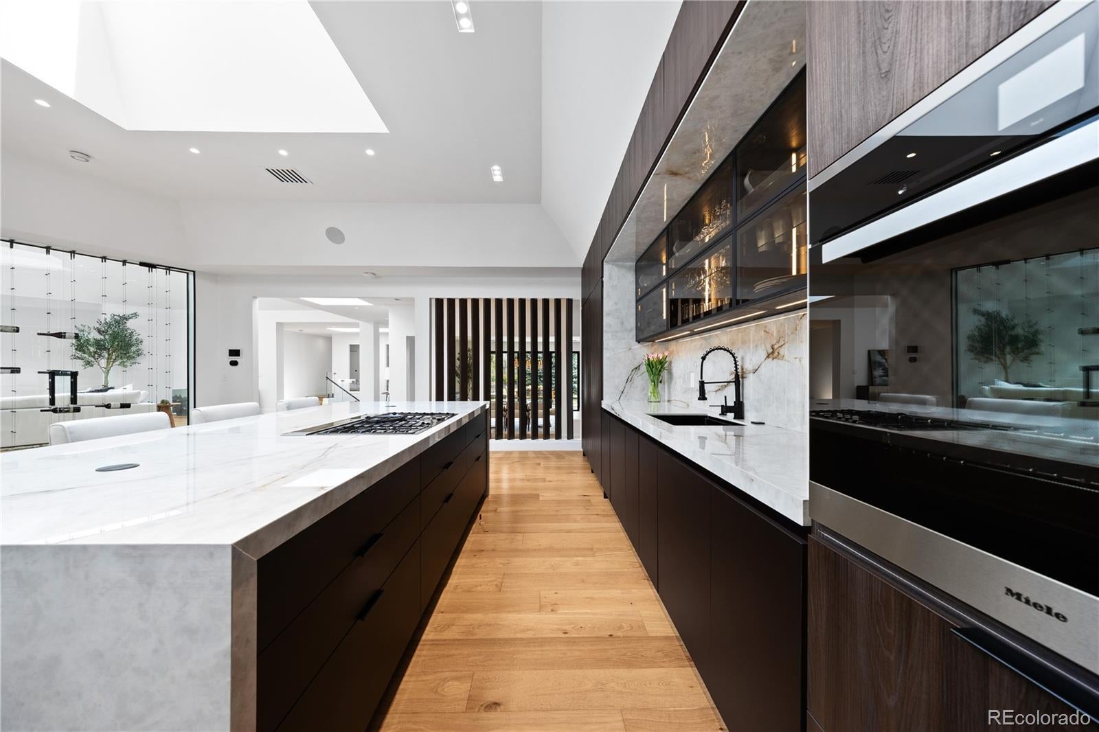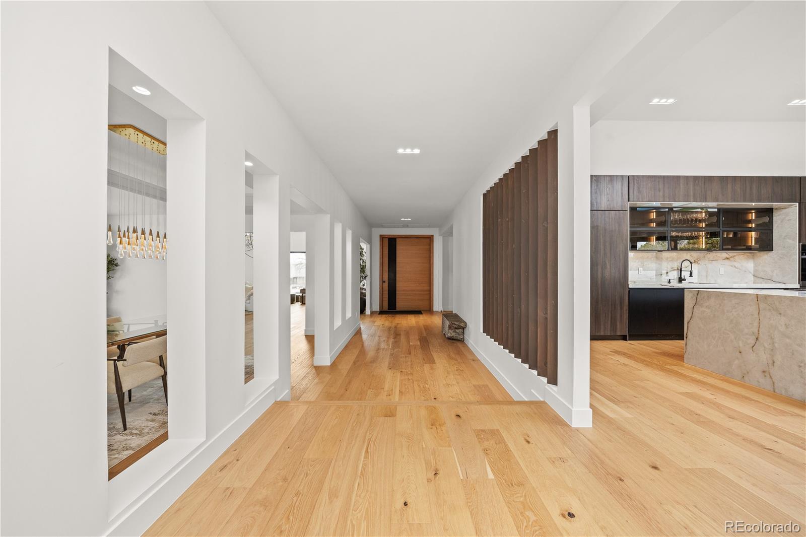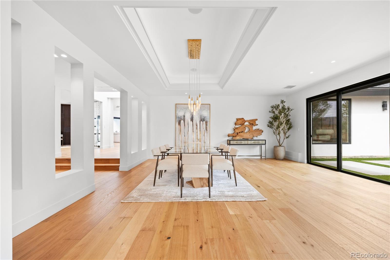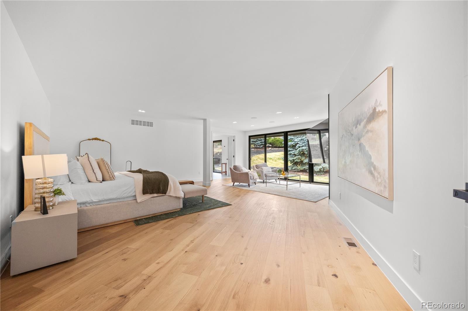 Welcome to this exceptional estate in the highly sought-after Cherry Hills Village community, where timeless elegance meets modern comfort. Spanning over 9,000 square feet of light-filled living space, this stunning residence offers a lifestyle of unparalleled sophistication and ease. Step into a grand, open-concept main level designed for both everyday living and elegant entertaining. The gourmet kitchen is a chef’s dream, outfitted with top-of-the-line Miele appliances, beautiful cabinetry, large hidden pantry and a seamless flow into the living and dining areas. Accordion glass doors in both the kitchen and living room create a true indoor-outdoor experience, opening to a serene backyard oasis featuring a sparkling pool, lush turf, and a shaded patio—perfect for Colorado’s sunny days and cool evenings. The expansive primary suite is a true retreat, featuring a spa-like ensuite, designer walk-in closet with built-in laundry, and elegant finishes throughout. Three additional bedrooms on the main level each offer en-suite bathrooms, providing privacy and comfort for family or guests. The lower level is an entertainer’s dream with a large open lounge, cozy fireplace, full bar, and a theater screen for movie nights. Two additional bedrooms, a full laundry room, and a luxurious spa-style bathroom with a sauna and shower complete the space. Ideally positioned directly across from the walking trail #6247 that leads to other trails within the Village, the home enjoys immediate access to serene outdoor paths perfect for morning strolls or evening walks. Adding to the sense of privacy and open space, the vacant lot directly to the west—located just above the property—is owned by a neighbor within the community and is not slated for future development. From the thoughtful layout to the high-end finishes and seamless indoor-outdoor flow, this Cherry Hills Village home embodies refined living at its finest.