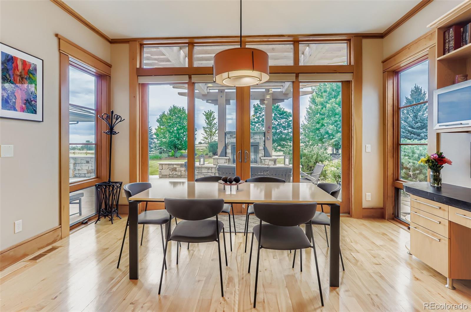 Welcome to 9260 Shooting Star Court—an exceptional residence tucked away on a quiet cul-de-sac in one of Niwot’s most desirable neighborhoods. This beautifully maintained home blends timeless design with modern comfort, featuring spacious living areas, custom finishes, and expansive outdoor spaces perfect for entertaining or everyday living. The heart of the home is the chef’s kitchen, complete with rich soapstone countertops, stainless steel appliances, a large island, and a sunny breakfast nook that opens seamlessly into the inviting family room with a gas fireplace. A formal dining room adds elegance for hosting, while a main-floor office offers flexibility with its own en-suite ¾ bath—ideal for guests or working from home. A separate powder room completes the main level. Upstairs, the spacious primary suite offers a serene retreat with private balcony access, a luxurious five-piece bath, and a generous walk-in closet. Three additional bedrooms and two full bathrooms complete the upper level—one with a Jack-and-Jill layout featuring a shared shower, and the other with a full tub and shower combination. The finished basement is designed for both relaxation and functionality. It includes a large rec room, full bar area, a separate gym, and two bathrooms—each with a shower. A private guest bedroom with its own en-suite bath creates the perfect secluded space for visitors, offering comfort and privacy away from the main living areas. Outside, enjoy beautifully landscaped grounds, a spacious patio, and a peaceful backyard sanctuary. The oversized 4-car garage provides ample room for vehicles, storage, and hobbies. Located just minutes from downtown Niwot, award-winning schools, trails, and open space—this home offers the perfect blend of luxury, comfort, and Colorado living.