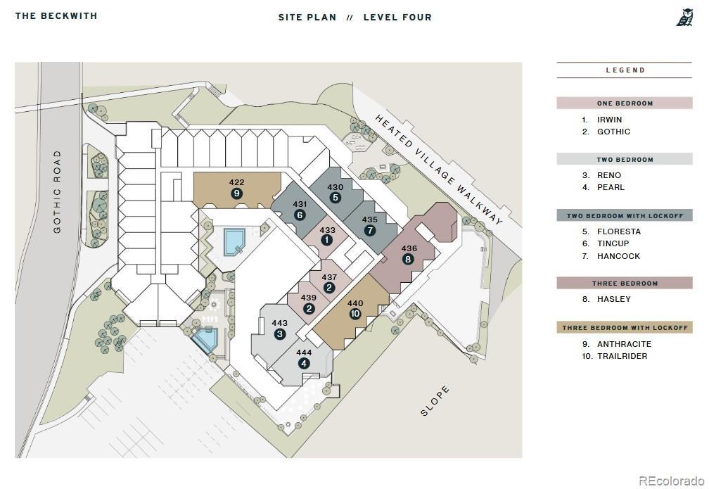 Beckwith Residence 435 is a premier two-bedroom residence within The Beckwith’s exclusive ski-in, ski-out collection of 49 to-be-built homes. With an exterior northeast-facing orientation, this Hancock floor plan spans 1,397 square feet and offers a rare, elevated perspective capturing a wide panorama of sky, trail, and alpine beauty. This thoughtfully designed residence features two bedrooms, two-and-a-half baths, a private lockoff, and an open-concept kitchen, living, and dining area that seamlessly blends indoor comfort with outdoor connection. Oversized windows flood the space with natural light, while three private balconies— off the living room, the primary suite, and the lockoff— offer ideal perches for morning coffee, midday sun, or après-ski stargazing. The gourmet kitchen is outfitted with natural stone countertops, high-end appliances, a pantry, and generous space for culinary exploration and entertaining. A custom millwork bench and cubbies at the entry make gear organization effortless. The primary suite is a private sanctuary with a millwork wardrobe, private balcony, and a spa-inspired en-suite bath featuring Kohler fixtures and radiant finishes. The secondary bedroom and lockoff suite provides another peaceful escape with mountain-inspired textures, en-suite bath, and elevated privacy. Additional conveniences include a stylish powder room with bespoke wall coverings, in-unit laundry with stacked washer/dryer, and secure owner’s gear storage. The Beckwith is the only ski-in, ski-out resort in the heart of Crested Butte's base area, with world-class amenities including a four-star, community-inspired hotel, seamless ski valet, luxurious spa, adventure concierge, and private mountain & social community, Club Beck. A multi-phased reimaging of Elevation Hotel & Spa will transform almost every space at the resort, with residences anticipated for completion in the Winter 26-27 ski season.