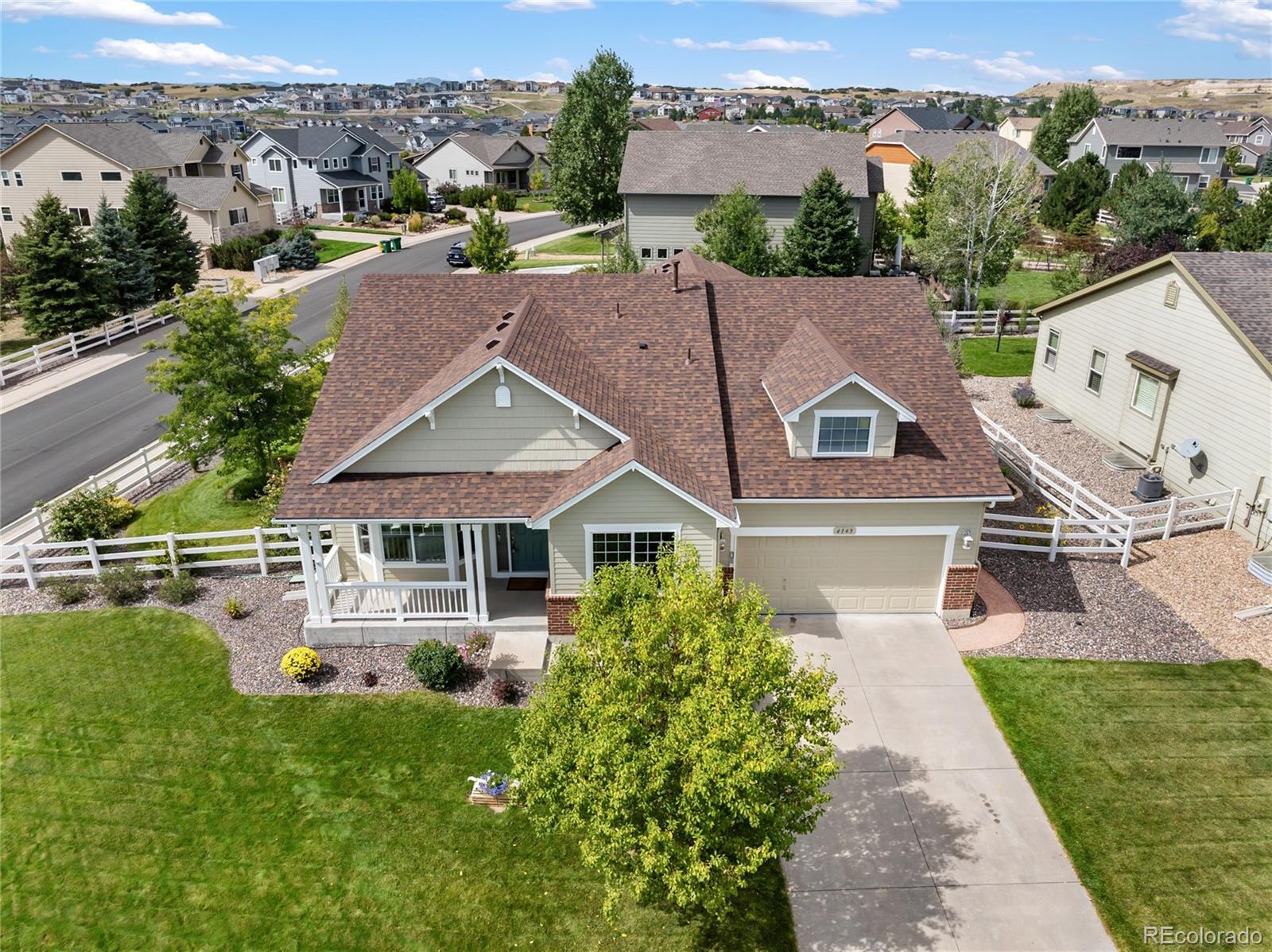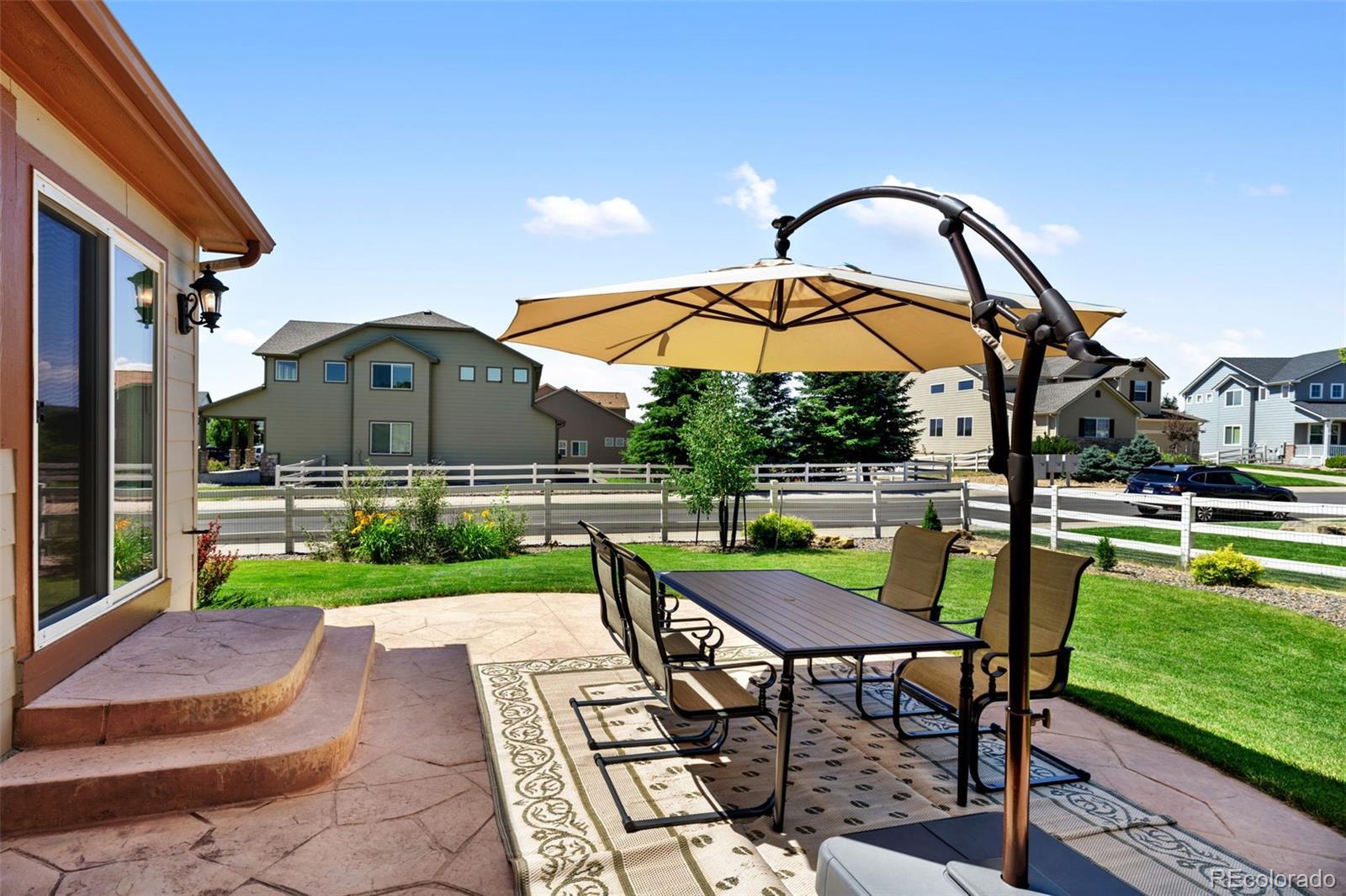 BETTER THAN NEW!! Don't miss your chance to make this completely updated 3,462 sf ranch-style home with a partial basement on nearly .25 acre corner lot in Crystal Valley Ranch your own Colorado home! Outside you will find mature landscaping, a water feature, a manicured fenced yard with a raised garden bed and a large outdoor patio the likes of which you won't find in a new build. The automatic sprinkler system and drip lines make maintenance easy! Walk out on the patio from the primary bedroom through the French doors or throw open those French doors to listen to the water feature and let the outdoors in as you enjoy your morning ocffee or read a book from the comfort of your primary bedroom. Updates completed in 2025 include NEW EXTERIOR PAINT~ NEW ROOF ~ NEW AMANA FURNACE WITH SMART HOME THERMOSTAT ~ NEW WATER HEATER ~ NEW FINGERPRINT-RESISTENT STAINLESS STEEL APPLIANCES ~ NEW INTERIOR PAINT ~ NEW LIGHT FIXTURES ~ AND NEW IN 2024, NEW MOEN WATER MONITORING SYSTEM & UV AIR PURIFIER LIGHT! This home is ready for you to settle in and enjoy! Step inside to find a light, bright, and airy atmosphere that sets the stage for both relaxation and entertaining. The stylish natural hickory wood flooring flows seamlessly from the kitchen to the breakfast room. The kitchen, bathrooms and reading nook all feature natural hickory wood. The additional bedrooms are charming and versatile, perfect as guest rooms or a creative home office. Your guests will appreciate the full bath conveniently accessible from both bedrooms. For those with outdoor adventures in mind, this home boasts a spacious 3-car tandem garage for your workshop, ATVs, bikes, and toys! Plus, the expansive basement offers ample storage and a finished room ideal for crafting or a dedicated office space. Embrace the Colorado lifestyle you've always dreamed of. Don't miss the chance to make this enchanting house your home!