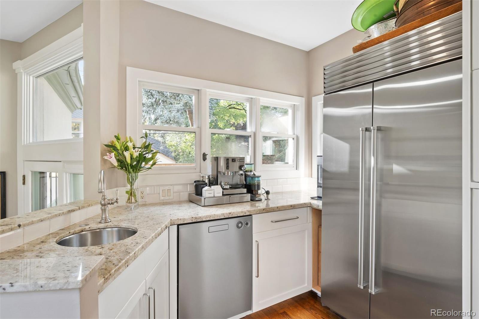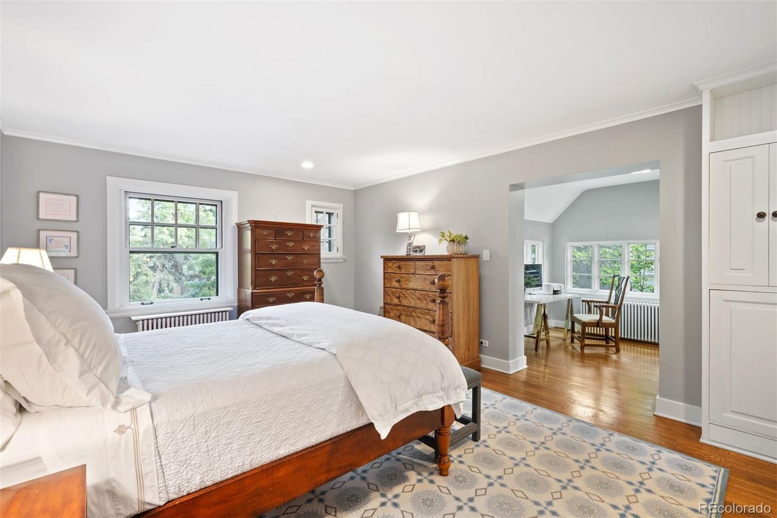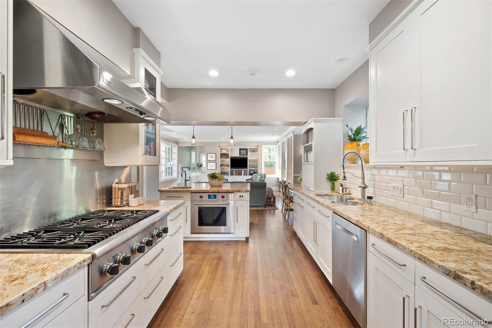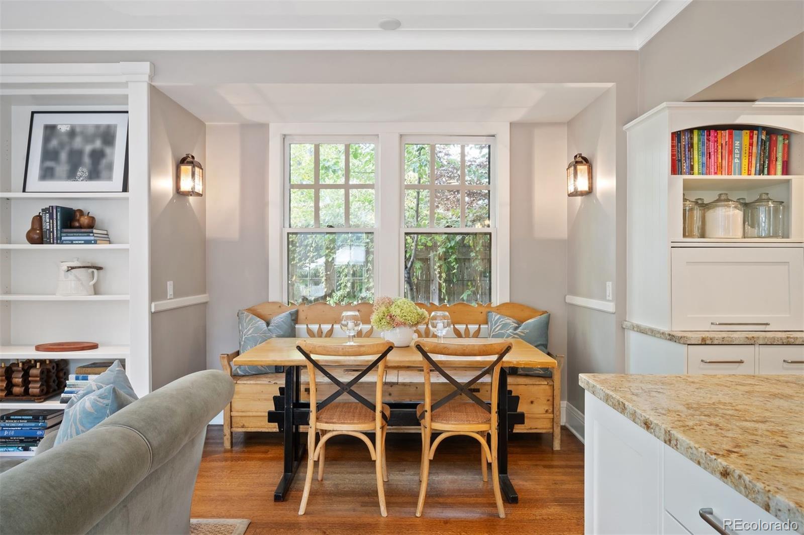 Set on one of Country Club’s most desirable streets, 141 Gilpin Street is a remarkable 1910 Dutch-inspired residence where architectural integrity, modern livability, and exceptional outdoor spaces align. Original tiger-quarter sawn floors, beautifully restored original hardware, and period craftsmanship anchor the home in history, while thoughtful seller improvements enhance both interior and exterior living. Generous windows, high ceilings, and an open layout create a sunlit main level. The formal living room showcases extensive millwork, a boxed-beam ceiling, and a custom mantel. A sunroom connects the front and rear patios for seamless indoor–outdoor flow. The dining room features original quatrefoil plaster detail and abundant natural light. The chef’s kitchen with granite countertops includes two Wolf ovens, a Sub-Zero refrigerator, Bosch dishwasher, island, and breakfast nook. The adjacent family room offers walls of built-ins and windows, plus a full wet bar with additional refrigeration and dishwasher. French doors open to south-facing, landscaped gardens with multiple patios and ambient lighting, along with a grassy play area near the garage. An exceptional laundry/mudroom provides generous storage, and the oversized two-car garage offers rare capacity. Upstairs, the primary suite includes ample closets, a light-filled sitting area or office, and a renovated five-piece bath. Three additional bedrooms, a flexible office or non-conforming bedroom, and two baths complete the level. The basement offers a rec room, full bath, non-conforming bedroom, and abundant storage. Just minutes from Cherry Creek North and steps from the Cherry Creek bike path and Denver Country Club, this residence offers enduring style in a location that defines lasting value.