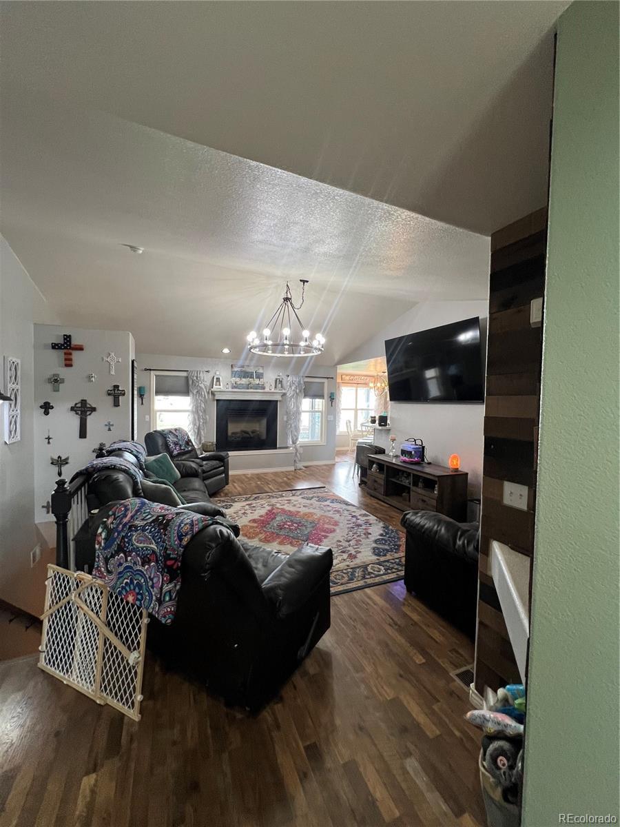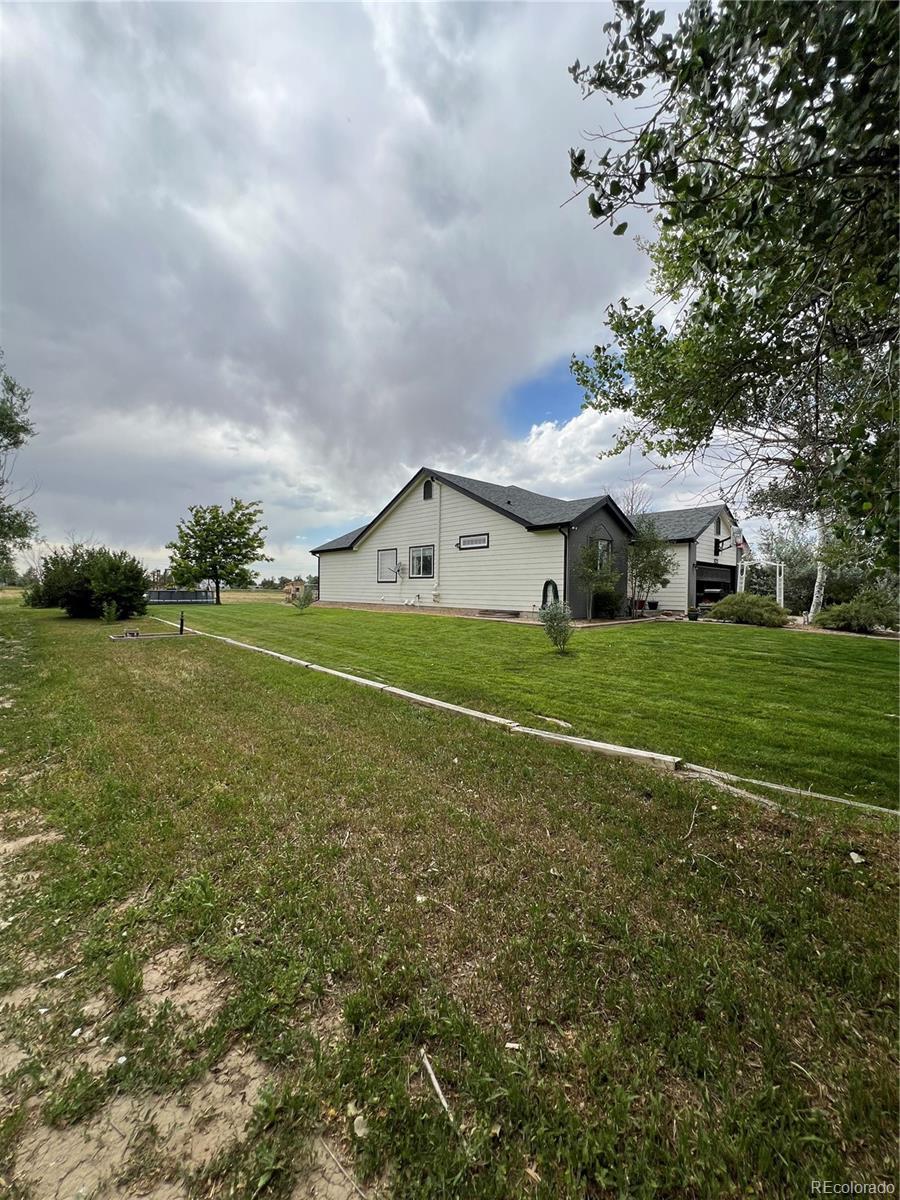 This well-maintained 4-bed, 3-bath home in a quiet neighborhood with no HOA features vaulted ceilings, finished basement, and beautiful yard. Pride of ownership shows throughout this property! Upstairs you will find spacious living room with a cozy fireplace and vaulted ceilings. The kitchen features a bar with rustic details and stone backsplash. Upstairs are 3 bedrooms including the primary bed with a vaulted ceiling, a large window and walk-in closet. The en-suit bathroom features a walk-in shower and ample light as you get ready in the morning. Downstairs you will see a finished basement with an additional bedroom, office/gym room, and ample space for entertaining. The basement also includes a fireplace, full bathroom, and professional finishes throughout. This home is on a 2.5-acre lot with many trees, nice landscaping, spacious grass areas, and 640 sq/ft shop, perfect for storing a camper or a workspace. Located in Strasburg CO, near i-70 about 25 minutes from the Denver-metro area.