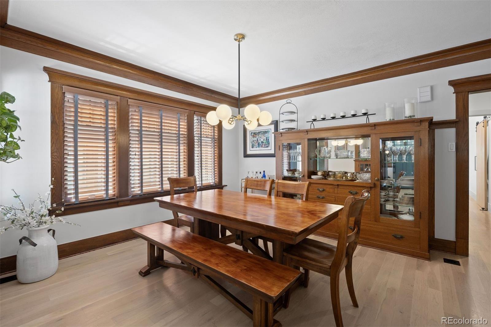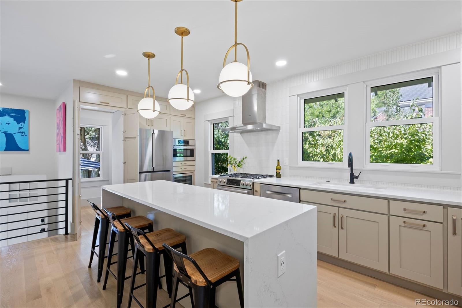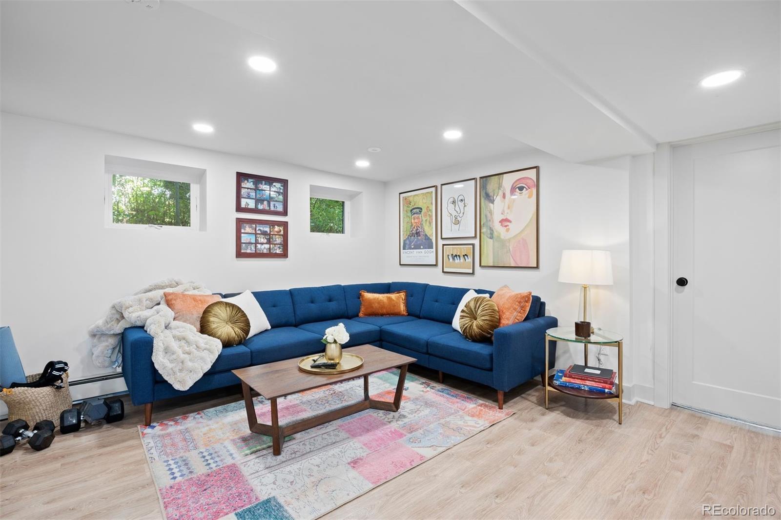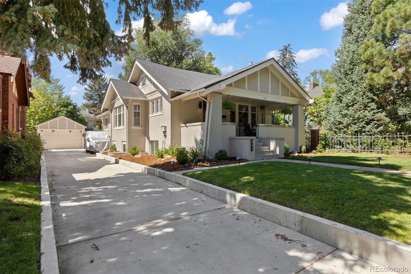 Welcome to this exceptional Craftsman home, perfectly located in the highly sought-after Country Club neighborhood, just off 7th Avenue Parkway in the charming 7th Avenue Historic District. Thoughtfully renovated from top to bottom, this residence blends timeless character with modern sophistication. The main level features a spacious living and dining area, ideal for entertaining, complete with custom built-ins, elegant crown molding, a cozy gas fireplace, and newer white oak hardwood floors throughout. At the heart of the home is a beautifully remodeled kitchen, showcasing custom cabinetry, premium Bosch appliances, a striking oversized waterfall island, and a hidden walk-in pantry—perfect for both everyday living and hosting. The main floor also includes a light-filled primary suite with two closets and a stylish en-suite bathroom, along with a second bedroom and full bath to complete the level. The fully finished basement offers incredible natural light through garden-level windows and brand new luxury vinyl plank flooring. This expansive space includes a large recreation room, home office, laundry room, remodeled bathroom, two generously sized sun-filled bedrooms—each with oversized walk-in closets—and a dedicated storage room. Step outside to a private backyard oasis that has undergone a major transformation. Enjoy a newly added stone patio, flat grassy yard framed by mature trees, a new iron fence, and an extra-wide driveway—creating the perfect setting for outdoor living and entertaining. All of this is just steps from some of Denver’s best amenities—beautiful parks, top-tier dining, and boutique shopping. With convenient access to Cherry Creek, Downtown, and other historic neighborhoods, this is truly a rare opportunity to own a modern classic in one of the city's most desirable locations.