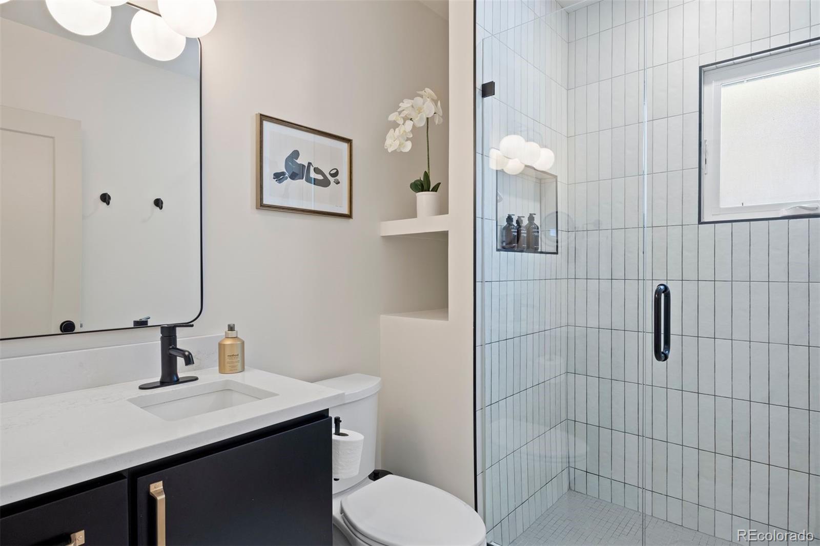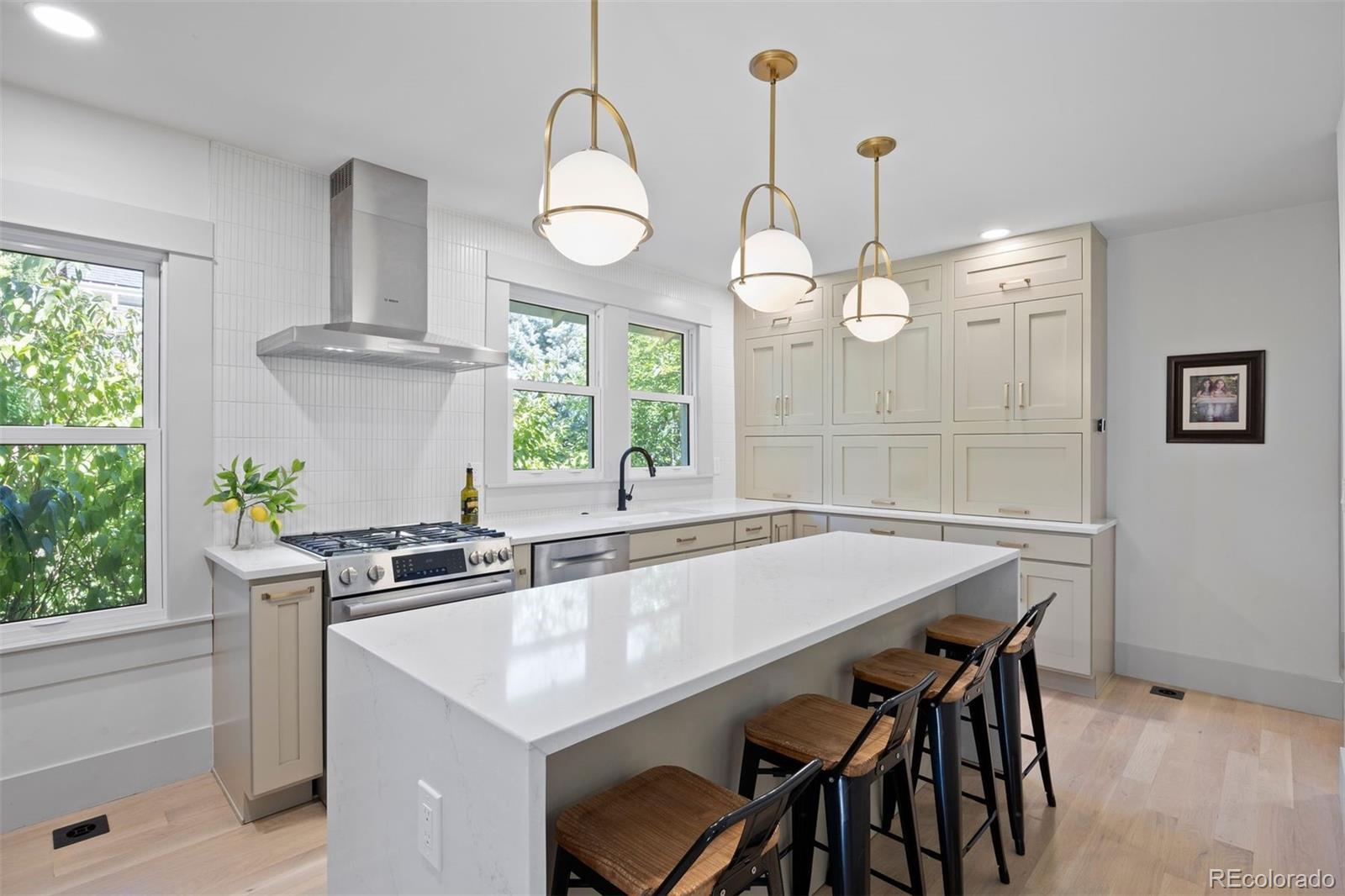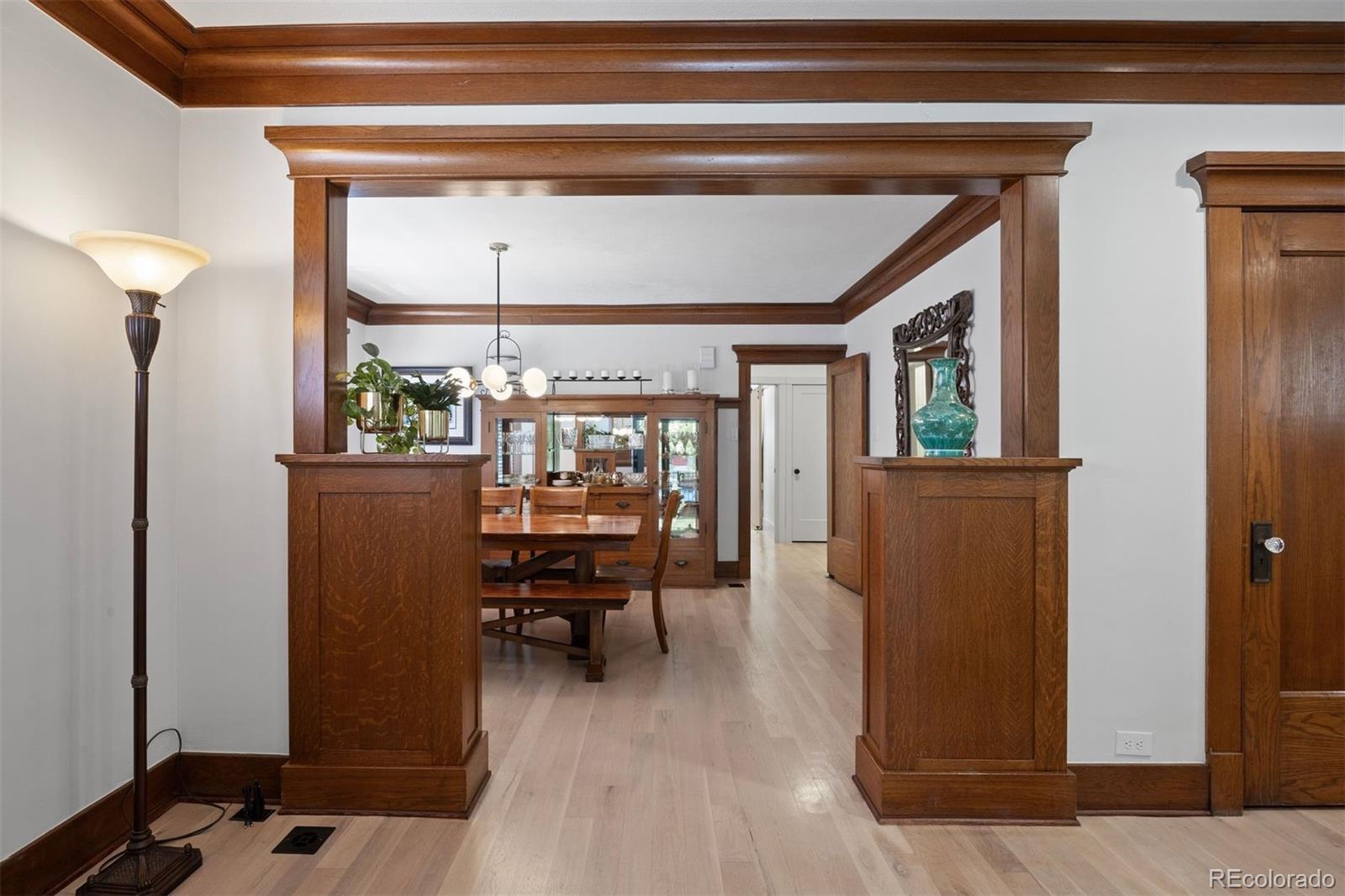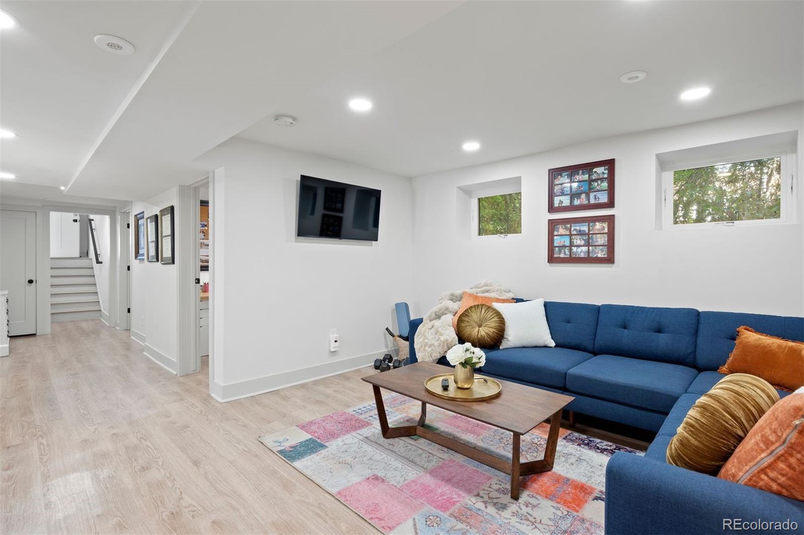 Welcome to this exceptional Craftsman home, perfectly located in the highly sought-after Country Club neighborhood, just off 7th Avenue Parkway in the charming 7th Avenue Historic District. Thoughtfully renovated from top to bottom, this residence blends timeless character with modern sophistication. The main level features a spacious living and dining area, ideal for entertaining, complete with custom built-ins, elegant crown molding, a cozy gas fireplace, and newer white oak hardwood floors throughout. At the heart of the home is a beautifully remodeled kitchen, showcasing custom cabinetry, premium Bosch appliances, a striking oversized waterfall island, and a hidden walk-in pantry—perfect for both everyday living and hosting. The main floor also includes a light-filled primary suite with two closets and a stylish en-suite bathroom, along with a second bedroom and full bath to complete the level. The fully finished basement offers incredible natural light through garden-level windows and brand new luxury vinyl plank flooring. This expansive space includes a large recreation room, home office, laundry room, remodeled bathroom, two generously sized sun-filled bedrooms—each with oversized walk-in closets—and a dedicated storage room. Step outside to a private backyard oasis that has undergone a major transformation. Enjoy a newly added stone patio, flat grassy yard framed by mature trees, a new iron fence, and an extra-wide driveway—creating the perfect setting for outdoor living and entertaining. All of this is just steps from some of Denver’s best amenities—beautiful parks, top-tier dining, and boutique shopping. With convenient access to Cherry Creek, Downtown, and other historic neighborhoods, this is truly a rare opportunity to own a modern classic in one of the city's most desirable locations.