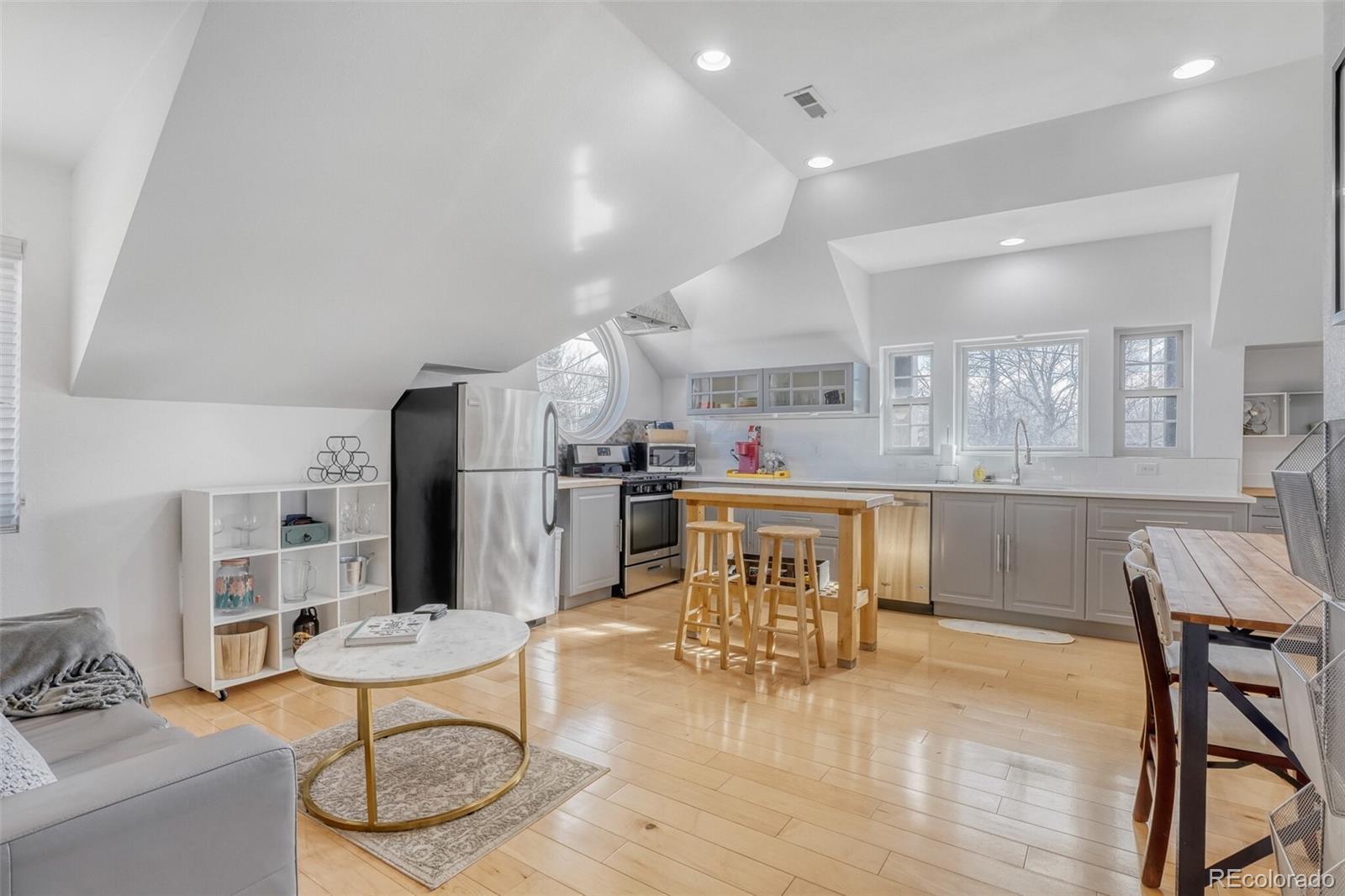 A truly special home and ADU on a quiet block in highly sought-after Platt Park. Opportunities like this rarely come along. A beautifully updated primary home paired with a thoughtfully designed ADU (built in 2015) creates one of the most unique and versatile properties in the neighborhood. The main home features three bedrooms and two baths and is full of warmth and charm. Step in from the inviting front porch to an open great room with living area, fireplace, dining space, and remodeled kitchen—perfect for gathering with friends or enjoying a quiet night at home. Original refinished wood floors and abundant natural light fill the main level. Two nicely sized bedrooms and a remodeled bath complete this level. Downstairs offers a spacious family room, home office alcove, second remodeled bath, and third (non-conforming) bedroom—ideal for guests, hobbies, or work-from-home flexibility. Just off the kitchen, step onto the large deck with space for dining, lounging, grilling, and the included hot tub. The private backyard leads to a two-car garage with rare pull-through double doors. And then there is the ADU. Masterfully designed with charm and custom details, it lives like a true second home. It features its own private yard, separate entrance and legal address, and garage with interior access. The main level offers a flexible space perfect for guests, office, or second living area. Upstairs, vaulted ceilings create a bright open great room with living space, kitchen, and dining area, plus a large primary bedroom and full bath with laundry. Most furnishings (with a few exclusions), dishes, and kitchen items are included—making it truly turnkey for guests, rental income, or extended living. Previously used as an mid-/short-term rental . A rare chance to enjoy the Platt Park lifestyle while offering flexibility for guests, multigenerational living, or supplemental income.