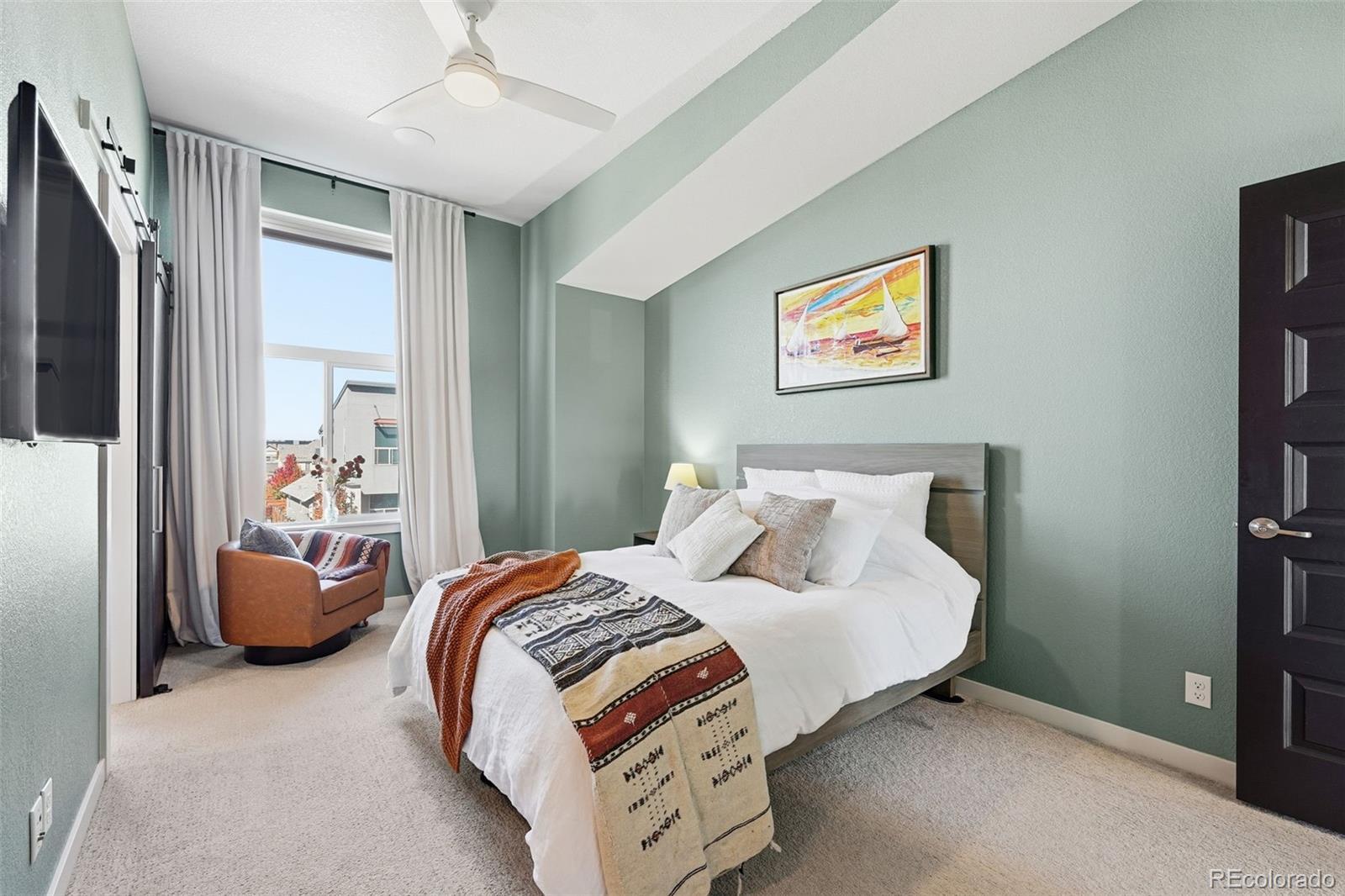 Gorgeous townhome in the heart of Northfield ~ Central Park * Beautiful finishes showcased throughout an open floorplan flooded with natural light * The main floor features stunning herringbone flooring, a gourmet kitchen with rich cabinetry, slab countertops, stainless steel Whirlpool appliances, a wonderful center island with a built-in wine rack, and pendant lighting and smart canned lighting * The adjacent living room is perfect for relaxing and features built-in Bowers & Wilkins surround sound speakers for your favorite movies * The large deck is accessed from the living room and makes grilling and entertaining a dream * The upper level features a generous primary suite with a vaulted ceiling, blackout shades, a walk-in closet, and an ensuite bath featuring a barn door for privacy * The second bedroom has tons of natural light, a ceiling fan, a spacious closet and blackout shades, with easy access to the second bathroom and the upstairs laundry * Two separate outside spaces to enjoy Colorado's beautiful weather * Convenient attached 2-car garage * Tankless hot water heater * New roof in 2025 * Quantum fiber internet available * Located just minutes from parks, pools, shopping, entertainment and restaurants with easy access to downtown and DIA * Maverick Pool is less than a half mile away * Trader Joe's, Lifetime Fitness and Whole Foods coming soon to Northfield! Don't miss this beauty!