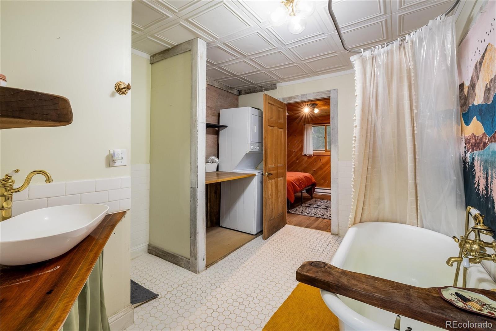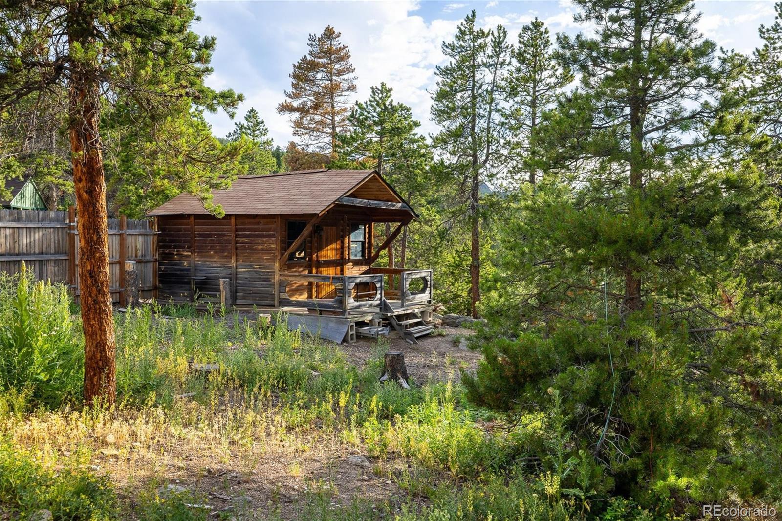 Perched on a peaceful mountainside with awe-inspiring views of the Continental Divide, this unique property offers a rare opportunity to own both a charming cabin and a detached studio—blending character, versatility, and untapped potential. Surrounded by evergreens and rugged natural beauty, this retreat delivers a sense of serenity while still offering access to nearby amenities and adventure. Step inside the main cabin and you’ll find a light-filled interior full of warmth and personality. Expansive windows frame the treetops and distant peaks, while rich wood-paneled walls, a cozy electric fireplace, and a brand-new pellet stove create a welcoming, lodge-like ambiance. The kitchen is equipped with stainless steel appliances and offers an efficient layout for mountain living. The skylit bedroom provides a quiet sanctuary, while the spacious full bath includes a classic clawfoot tub and convenient in-unit laundry. The lower level features a walk-out basement with flexible space for a home gym, workshop, or additional storage—ideal for weekend projects or future customization. Just a short stroll away, the detached studio includes its own front porch and sweeping views. While it needs renovation, it holds exciting potential as a creative space, guest suite, or private retreat. Enjoy the outdoors from the expansive back deck, where you’re immersed in natural beauty—perfect for relaxing, stargazing, or entertaining under the Colorado sky. The property is being sold strictly AS-IS. Tucked away yet conveniently located near Wondervu Café, Eldora Ski Resort, and Gross Reservoir, and only about an hour from Denver International Airport, this mountainside gem is ideal for those looking for a peaceful escape, creative inspiration, or a rewarding renovation project. Unlock the potential of this one-of-a-kind mountain hideaway.