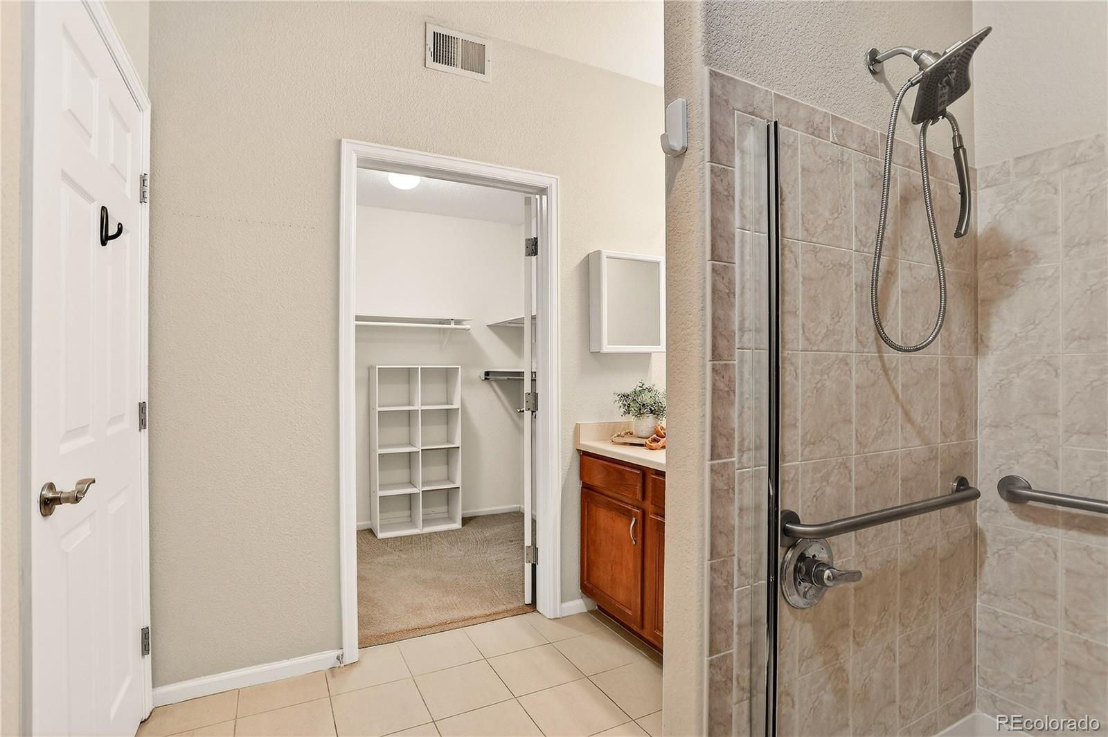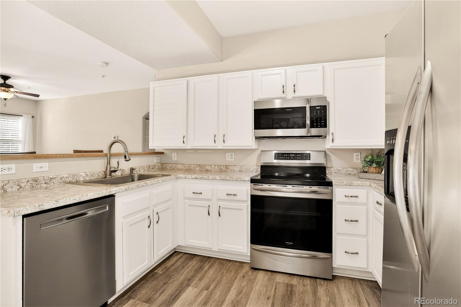 Welcome to this beautifully updated, Creek Side at Parker condominium featuring the convenience of main level living in the heart of Parker. Boasting three bedrooms, two full bathrooms, and a covered patio, this home has ample living and entertaining space. Upon entry, one is greeted with luxury vinyl plank flooring that exudes elegance and durability throughout the living areas. A cozy gas fireplace can be found in the family room which is open to the kitchen and dining area creating a wonderful, open floor plan. Crisp, white cabinets and stainless steel appliances adorn the kitchen which includes a designated pantry. The primary suite is equipped with an ¾ bath boasting a handicapped accessible, large walk-in shower with a seat, a spacious walk-in closet, and access to the covered patio. Step onto the patio from the primary bedroom or the dining area to simply relax and enjoy Colorado's weather or to fire up the grill. There are two additional bedrooms, one with a walk-in closet, and a second full bath down the hall. A laundry area is located in the home for convenience and the washer and dryer are included. Newer windows have been installed throughout most of the home which enhance energy efficiency and aesthetic appeal. The community amenities include a pool, hot tub, clubhouse, and fitness center, as well as direct access to the Cherry Creek Trail for those who like to enjoy nature with leisurely walks, runs, or bike rides from Parker to downtown Denver! This location can’t be beat as it is walkable to a movie theater, shopping, several restaurants, tennis courts, skate park, baseball field, recreation center, and downtown Parker!
