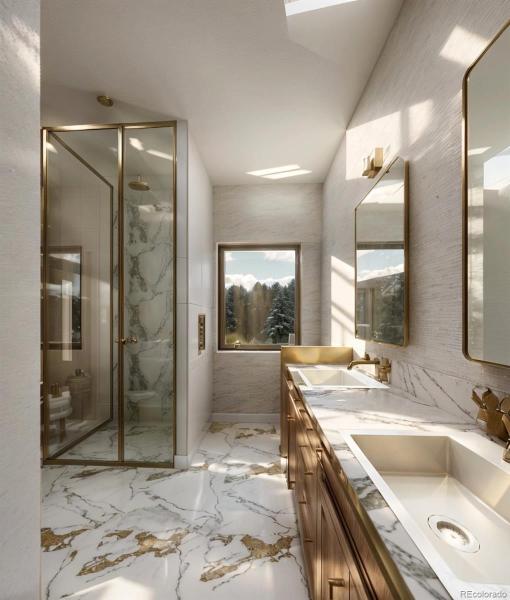 Experience elevated mountain living in this newly built home in the coveted saddleback Ridge Estates Evergreen neighborhood. Thoughtfully designed to capture expansive mountain views, the open layout is filled with natural light and showcases wide-plank wood floors, vaulted ceilings, and refined craftsmanship throughout. The property is located just a few blocks from I70! At the heart of the home lies a showstopping chef’s kitchen, complete with an oversized island, premium appliances, and custom cabinetry, designed for effortless entertaining and luxury. Step outside to massive decks overlooking untouched open space and sweeping mountain views, offering a perfect backdrop for morning coffee or sunset gatherings. The main-level primary suite is a serene escape featuring a cozy fireplace, spa-like bath with an oversized soaking tub, rain shower, dual vanities, and a walk-in closet with custom built-ins. A work from home dream office with expansive views completes the main floor. Downstairs, enjoy the full home theater experience in the state-of-the-art media room, entertain at the full bar and kitchenette, enjoy the built-in 4-person wet/dry sauna, admire the backlit wine wall display, or recharge in the home gym. Two additional en-suite bedrooms provide comfort and privacy for guests. A secondary bedroom with en-suite bath, private office, powder room, and mudroom complete the lower floor. The rare heated oversized 2-car garage offers ample space for vehicles and all your outdoor gear. Perfectly situated just minutes from Evergreen, I70, Idaho Springs, you’ll have easy access to skiing, snowboarding, hiking, biking, fishing, golfing, and more. Whether you’re seeking year-round adventure or peaceful mountain serenity, this exceptional home offers the best of Colorado’s mountain lifestyle in one of its most desirable communities. Anticipated completion is early Spring 2026!