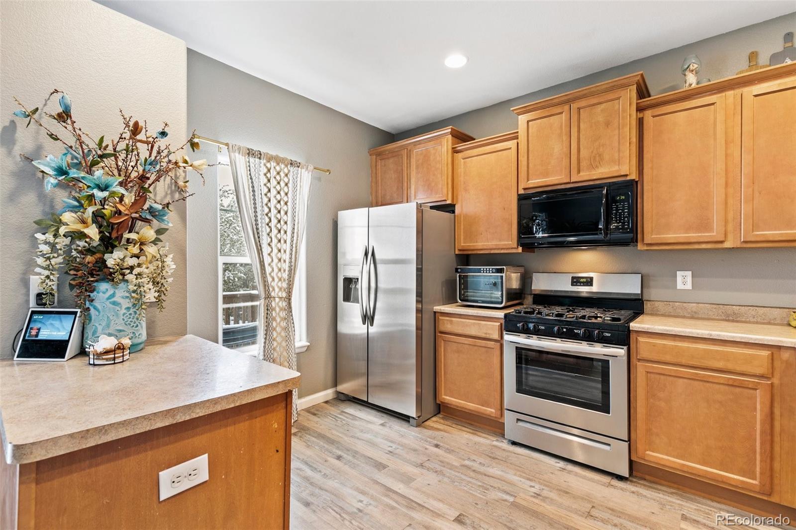 Welcome to your dream Colorado townhouse at 997 Burning Bush Point in Monument! This move-in ready, end-unit home features 4 bedrooms, 4 bathrooms, and nearly 1,900 sq ft of bright, modern living space. Enjoy panoramic mountain and city views from your private walk-out deck—perfect for grilling or morning coffee. The open-concept kitchen/dining/living level offers a spacious living room with a cozy gas fireplace, new luxury vinyl plank flooring, and brand new carpet throughout. A perfectly placed half bath rounds out this level. With windows cascading light throughout, this is one of the most inviting spaces you will find. Retreat upstairs to a generous primary suite with ensuite bath and two additional bedrooms plus laundry for ultimate convenience. Need multi-generational or guest space? The entry-level bedroom and bathroom are ideal! Updates include a brand new roof, hot water heater, exterior paint, and fresh curb appeal. Park in your attached 1-car garage and enjoy easy access to Lewis-Palmer schools, nearby walking trails, tranquil ponds, shopping, and Woodmoor community amenities. Low HOA fees cover maintenance and offer peace of mind. This well-maintained home is minutes from I-25, making commuting to Colorado Springs or Denver a breeze. Experience modern Colorado living with stunning Pikes Peak views, friendly neighbors, and fresh upgrades including new exterior paint and new roof.