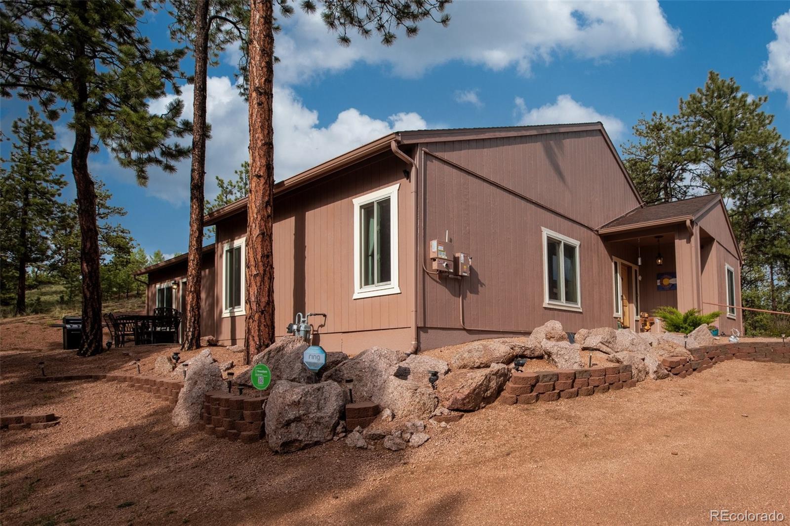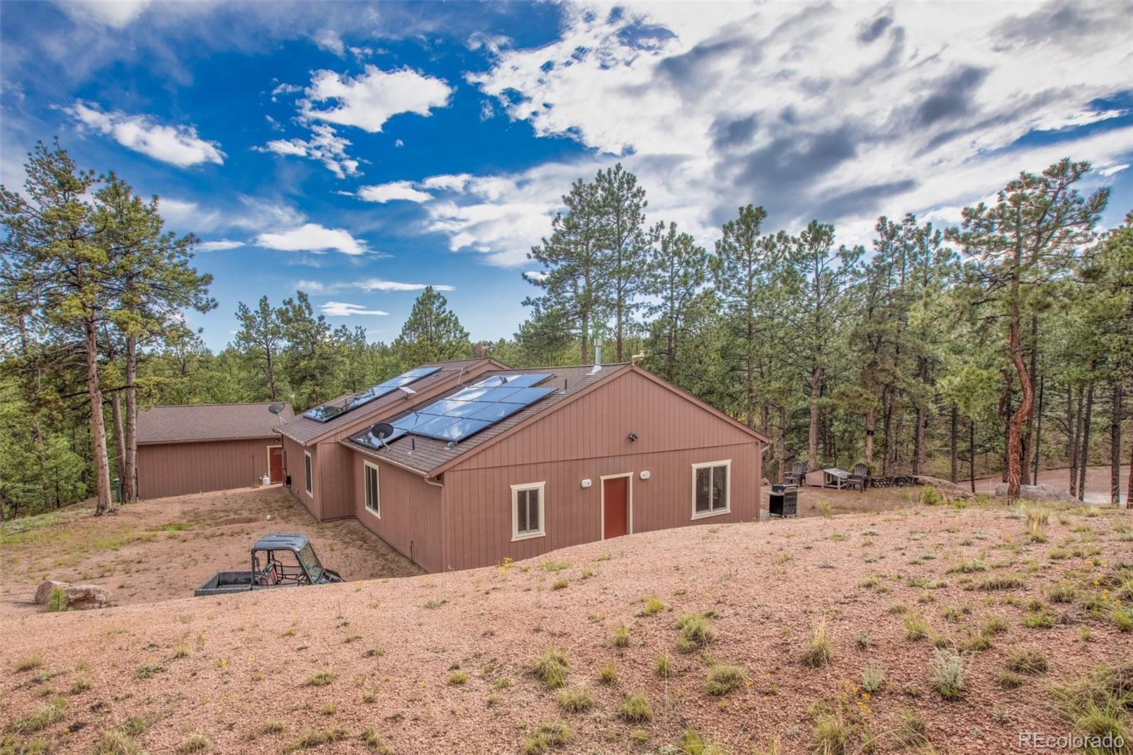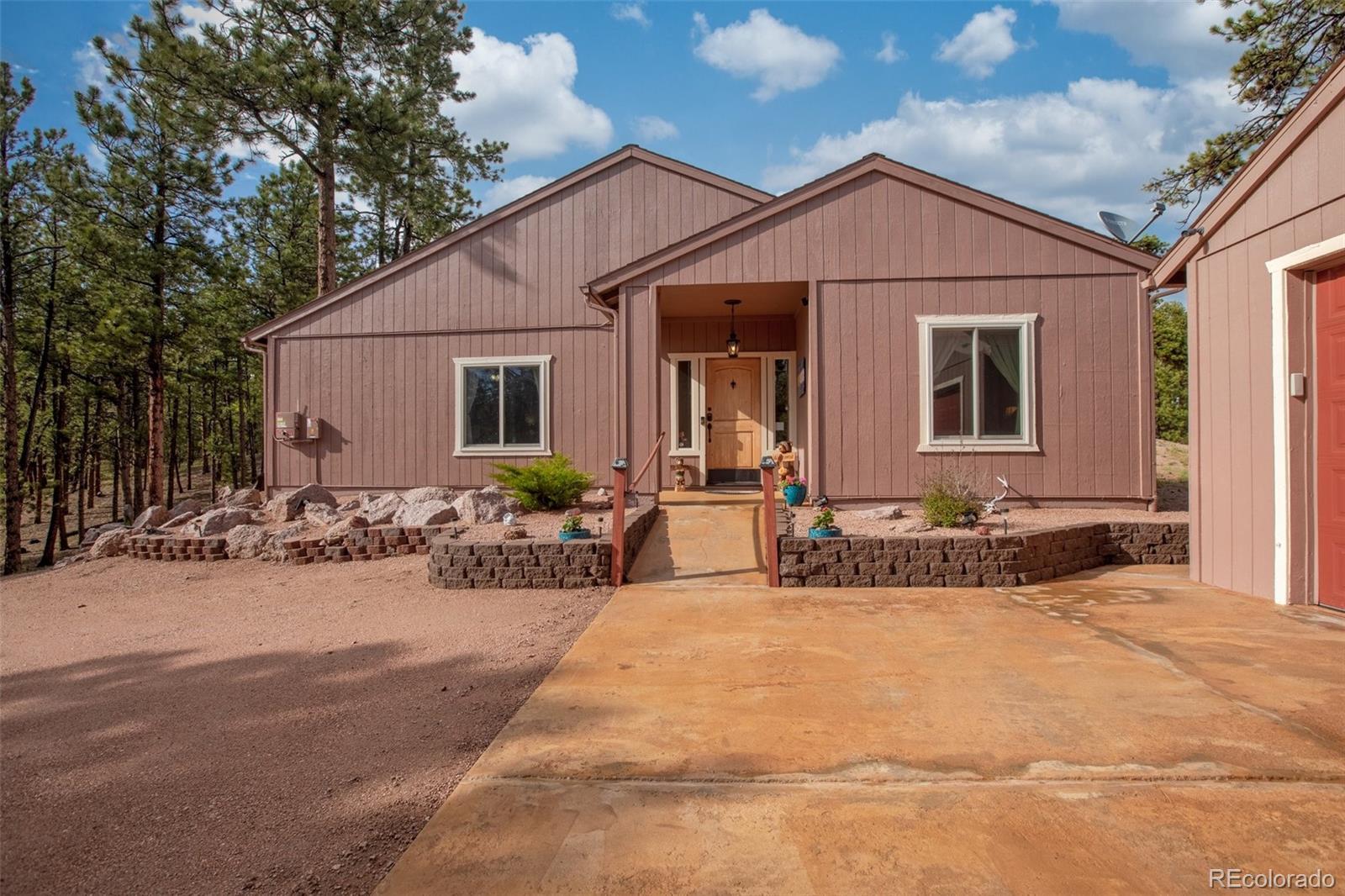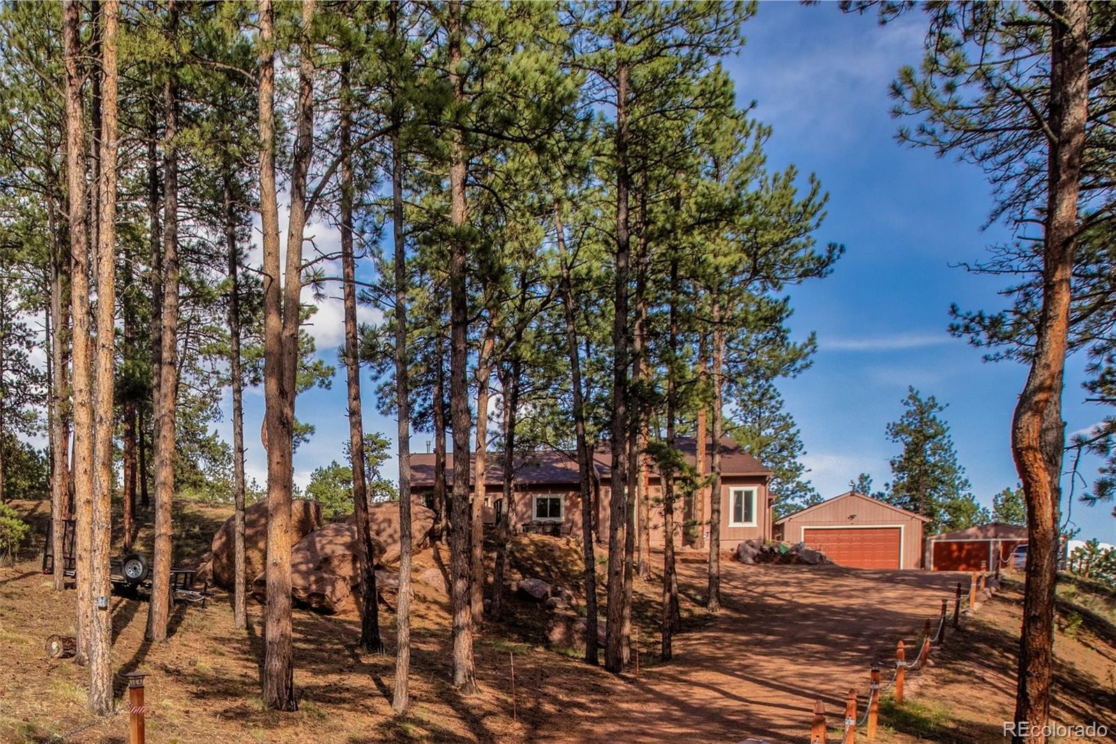 Welcome to your dream home! This stunning custom ranch offers convenient single-level living with a spacious, open floor plan, move-in ready for your comfort. 2,111 sq. ft., this home features 3 bedrooms, 2 bathrooms, a 2-car detached garage, and a large shed for extra storage. Nestled on 2.1-acre lot at the end of a peaceful cul-de-sac, this property offers privacy surrounded by towering pines and boulder rock formations. The kitchen, showcasing hickory cabinets, granite countertops, a pantry, premium stainless steel appliances, recessed lighting, and durable ceramic tile floors. The expansive dining area flows seamlessly onto a large patio, perfect for barbecues and outdoor entertaining. Large master suite (17x18), complete with a walk-in closet and a stylish 3/4 bathroom featuring double sinks and ceramic tile floors. In addition included a washer and dryer, ceiling fans w/ light fixtures in nearly every room. Freshly painted interior and exterior enhance the home’s appeal. Energy-efficient upgrades include new windows (2021), solar panels (2022), and a new furnace with a smart thermostat (2024). A Polaris side-by-side with a snow plow is included, for your convenience. Located just 15 minutes from Divide and 30 minutes from Woodland Park, this home combines privacy with easy access to nearby amenities. Don’t miss this exceptional opportunity to own a beautifully updated home in a breathtaking Colorado setting!