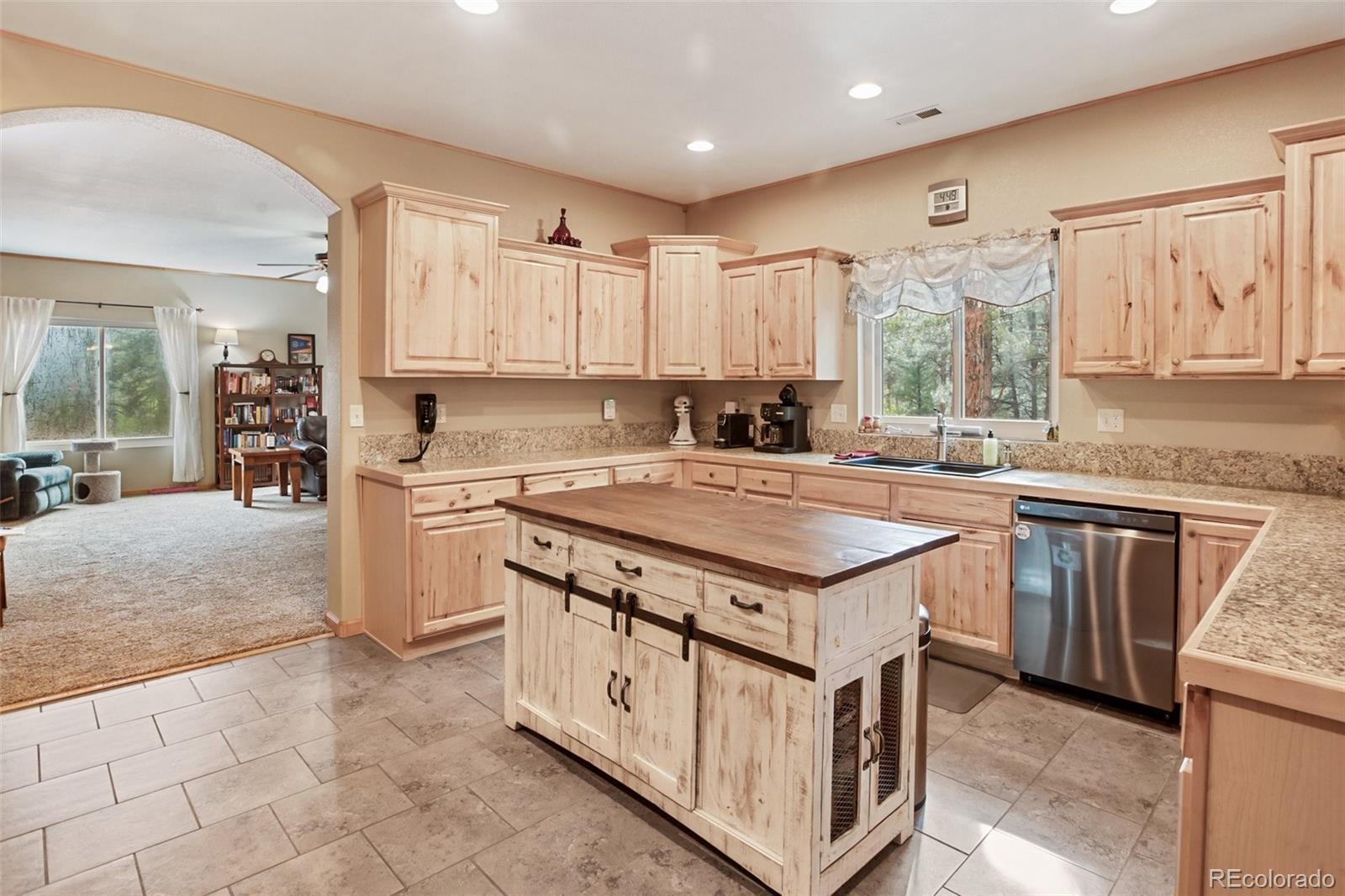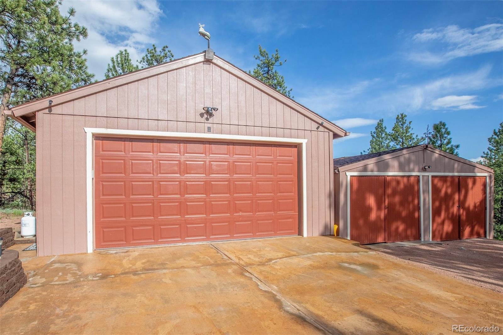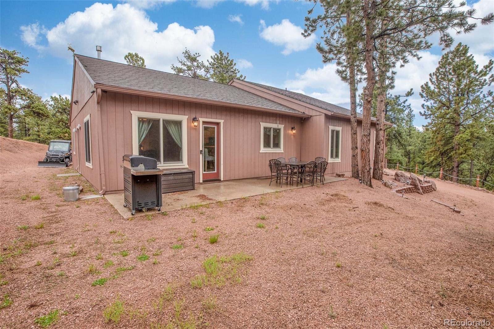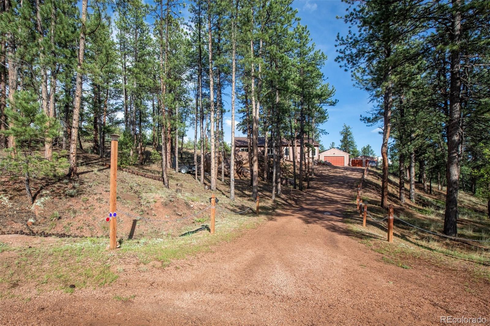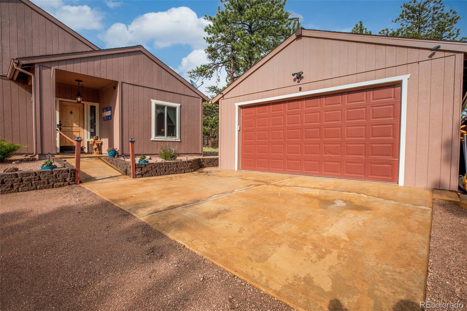 Welcome to your dream home! This stunning custom ranch offers convenient single-level living with a spacious, open floor plan, move-in ready for your comfort. 2,111 sq. ft., this home features 3 bedrooms, 2 bathrooms, a 2-car detached garage, and a large shed for extra storage. Nestled on 2.1-acre lot at the end of a peaceful cul-de-sac, this property offers privacy surrounded by towering pines and boulder rock formations. The kitchen, showcasing hickory cabinets, granite countertops, a pantry, premium stainless steel appliances, recessed lighting, and durable ceramic tile floors. The expansive dining area flows seamlessly onto a large patio, perfect for barbecues and outdoor entertaining. Large master suite (17x18), complete with a walk-in closet and a stylish 3/4 bathroom featuring double sinks and ceramic tile floors. In addition included a washer and dryer, ceiling fans w/ light fixtures in nearly every room. Freshly painted interior and exterior enhance the home’s appeal. Energy-efficient upgrades include new windows (2021), solar panels (2022), and a new furnace with a smart thermostat (2024). A Polaris side-by-side with a snow plow is included, for your convenience. Located just 15 minutes from Divide and 30 minutes from Woodland Park, this home combines privacy with easy access to nearby amenities. Don’t miss this exceptional opportunity to own a beautifully updated home in a breathtaking Colorado setting!