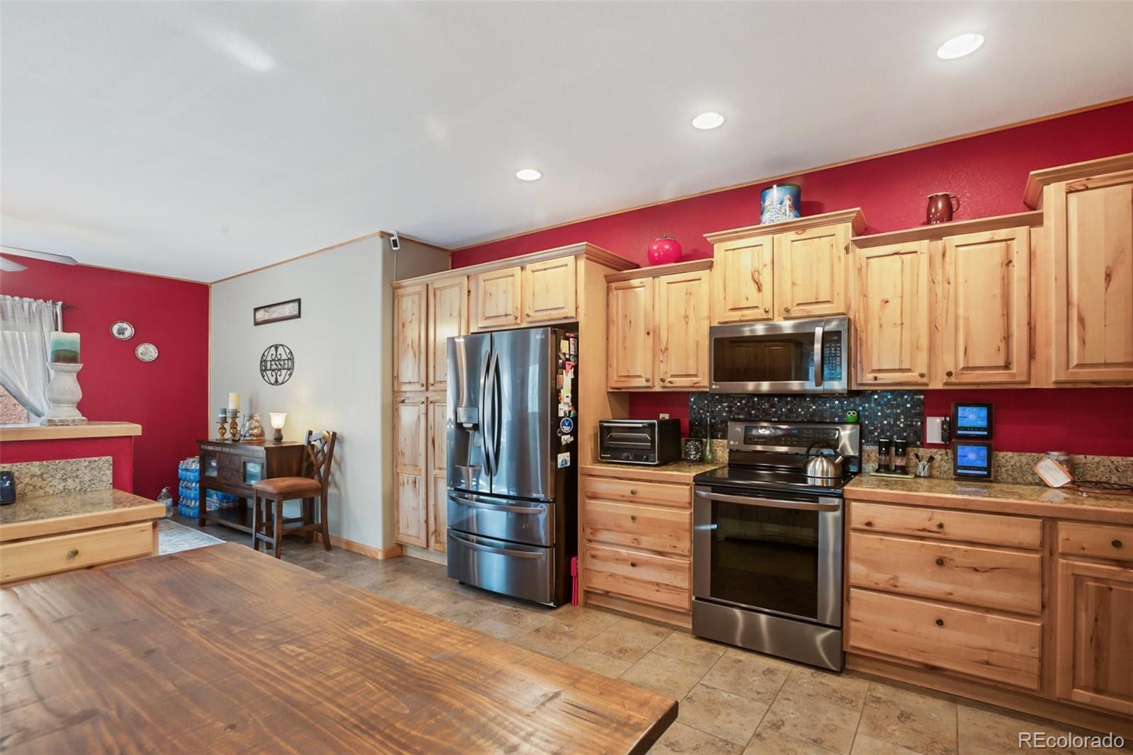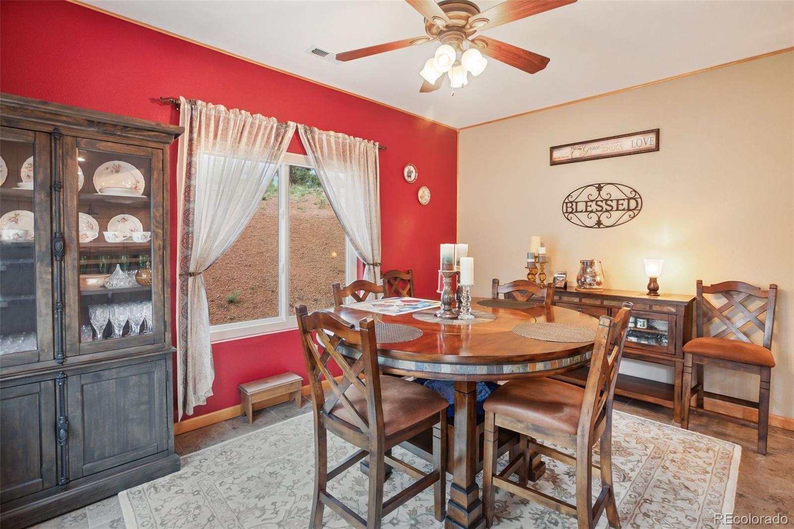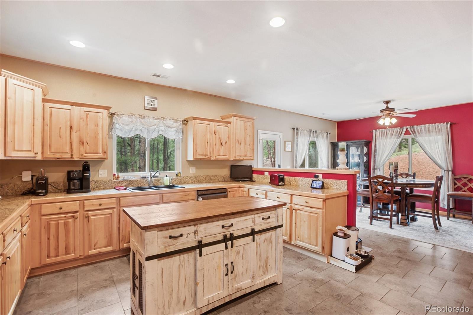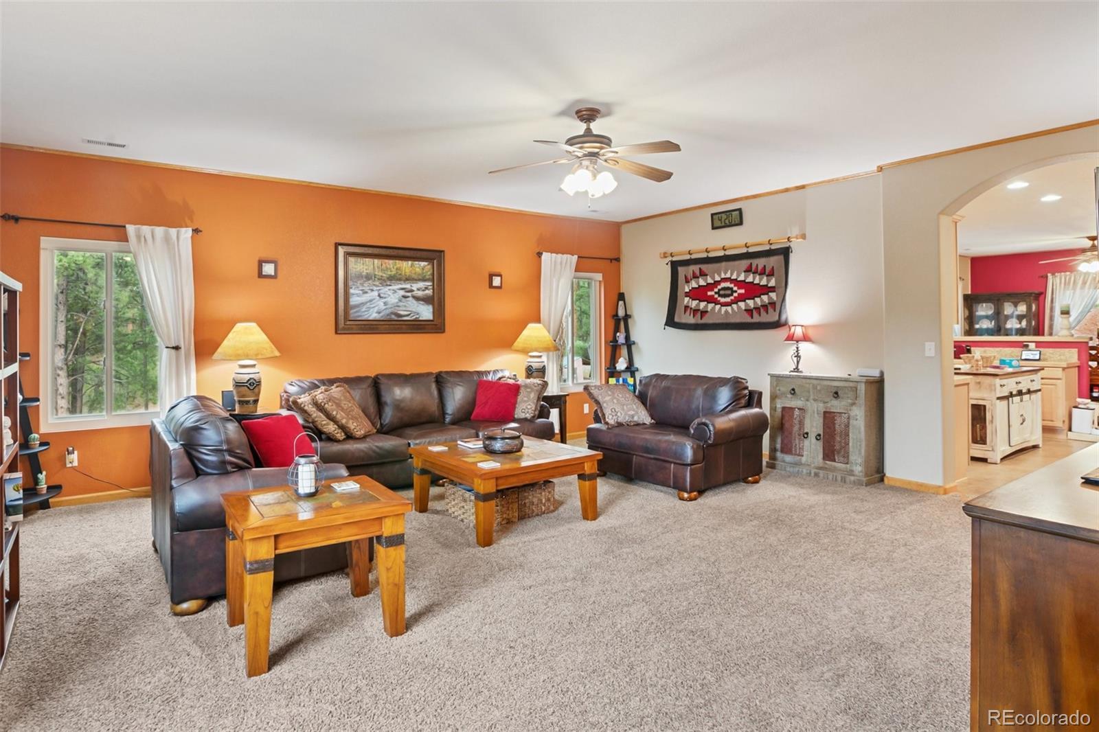 Welcome to your dream home! This stunning custom ranch offers convenient single-level living with a spacious, open floor plan, move-in ready for your comfort. 2,111 sq. ft., this home features 3 bedrooms, 2 bathrooms, a 2-car detached garage, and a large shed for extra storage. Nestled on 2.1-acre lot at the end of a peaceful cul-de-sac, this property offers privacy surrounded by towering pines and boulder rock formations. The kitchen, showcasing hickory cabinets, granite countertops, a pantry, premium stainless steel appliances, recessed lighting, and durable ceramic tile floors. The expansive dining area flows seamlessly onto a large patio, perfect for barbecues and outdoor entertaining. Large master suite (17x18), complete with a walk-in closet and a stylish 3/4 bathroom featuring double sinks and ceramic tile floors. In addition included a washer and dryer, ceiling fans w/ light fixtures in nearly every room. Freshly painted interior and exterior enhance the home’s appeal. Energy-efficient upgrades include new windows (2021), solar panels (2022), and a new furnace with a smart thermostat (2024). A Polaris side-by-side with a snow plow is included, for your convenience. Located just 15 minutes from Divide and 30 minutes from Woodland Park, this home combines privacy with easy access to nearby amenities. Don’t miss this exceptional opportunity to own a beautifully updated home in a breathtaking Colorado setting!