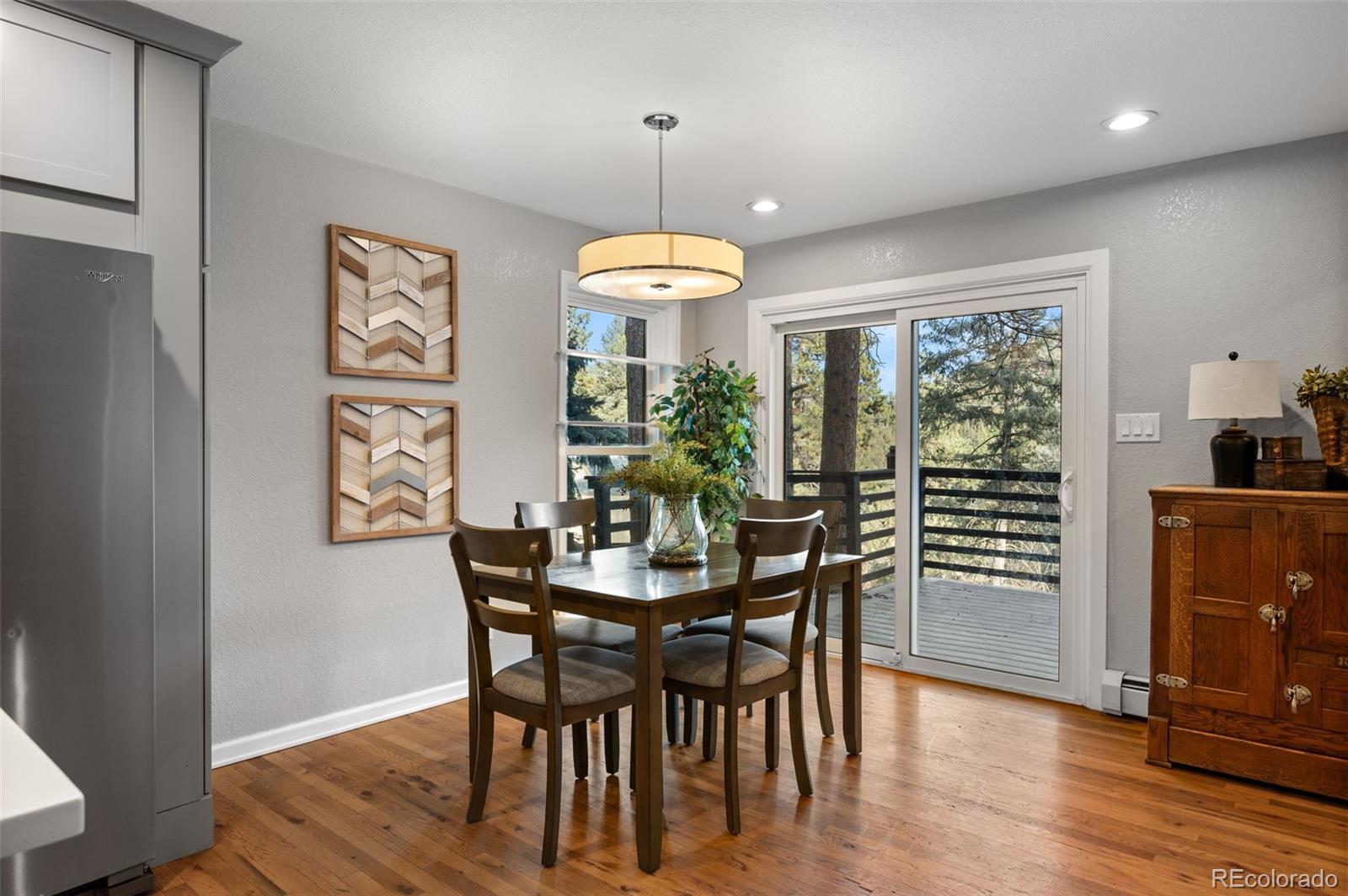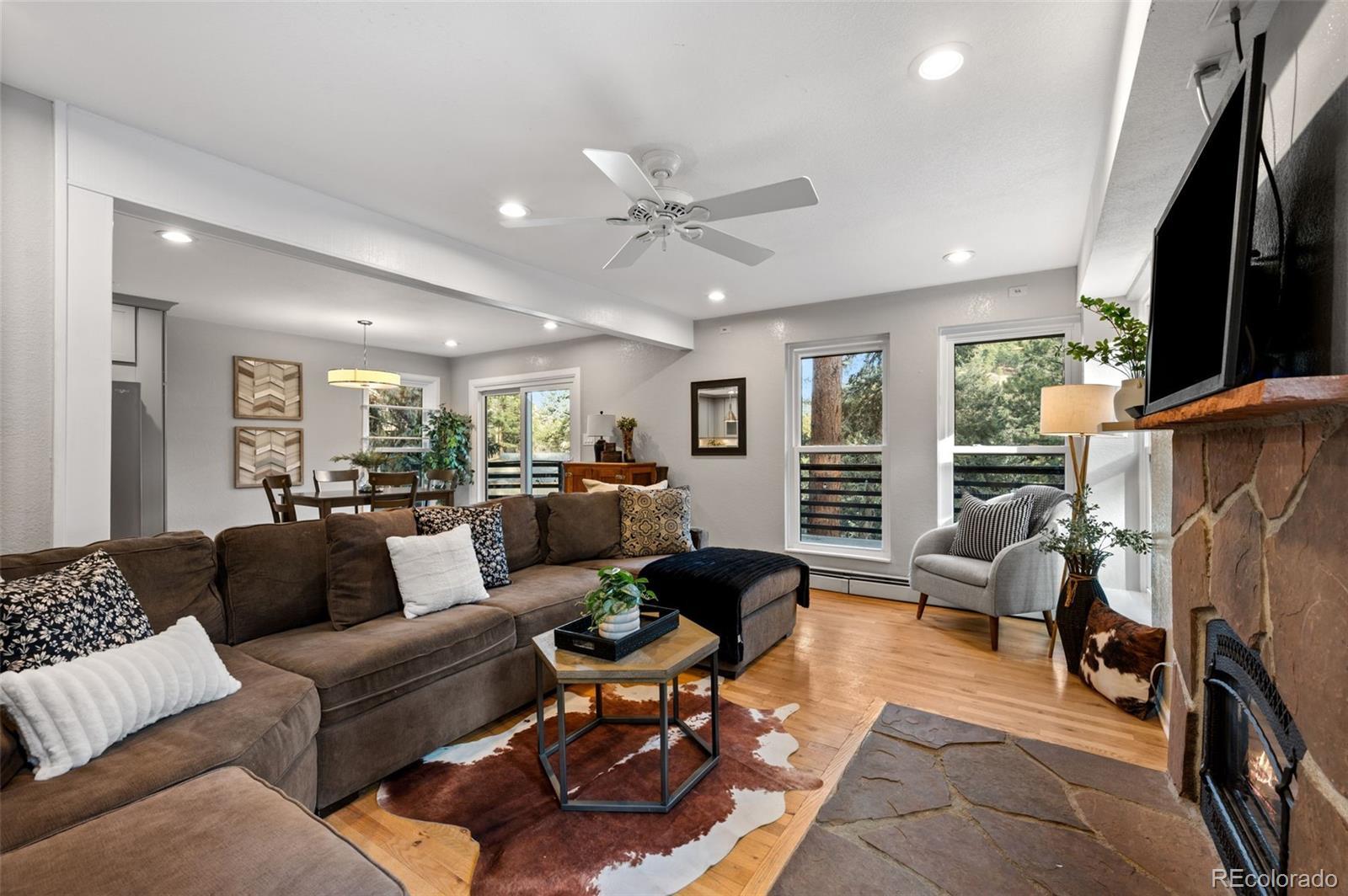 Discover your ideal Colorado foothills getaway at 5704 Santa Clara Road in Indian Hills—a serene mountain retreat set on a quiet dead-end road backing to private acreage for exceptional privacy and peaceful living. Surrounded by towering pines, rock outcroppings, and gorgeous mountain views, this home offers multiple outdoor living spaces perfect for relaxing, entertaining, and enjoying the natural beauty of the foothills. The main home features a warm, inviting layout filled with natural light and classic mountain charm. Large windows capture forest and ridgeline views from nearly every room, enhancing the sense of tranquility. Flexible interior spaces offer comfort for everyday living while accommodating guests, hobbies, or remote work. Home is 4 bedroom & 2 bathroom and approximately 1,727 sq ft. A standout feature of this property is the fully furnished 483 sq ft ADU located above the detached garage—a highly desirable bonus space with endless possibilities. Use it as an income-producing rental, private guest suite, live/work studio, or a spacious game room. This versatile addition enhances both the functionality and earnings potential of the home. Outside, the property shines with multiple outdoor living areas, perfect for morning coffee, evening gatherings, or quiet retreat time. The setting provides the best of Indian Hills living—privacy, nature, and convenience—with quick access to US-285, Conifer, Evergreen, and endless recreation including hiking, biking, and open space exploration. Whether you're seeking a full-time residence, investment opportunity, or weekend escape, 5704 Santa Clara Road delivers unmatched value and the true Colorado mountain lifestyle. Homes in this private pocket of Indian Hills rarely come available—schedule your showing today.