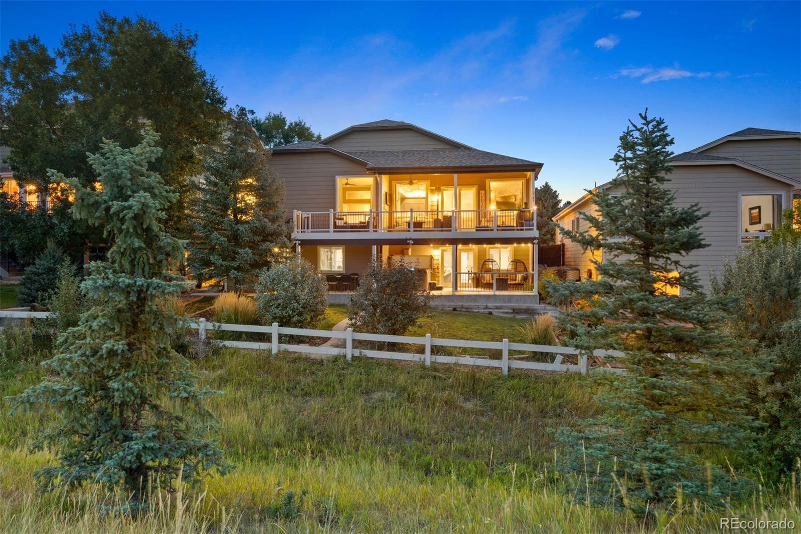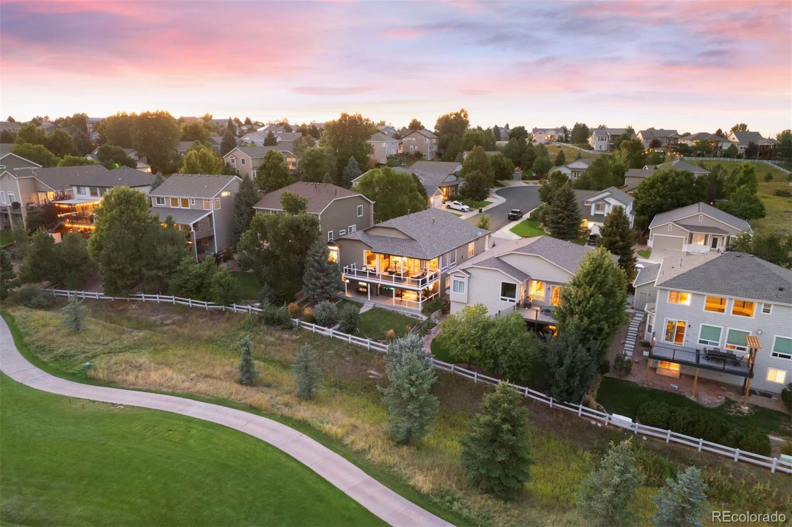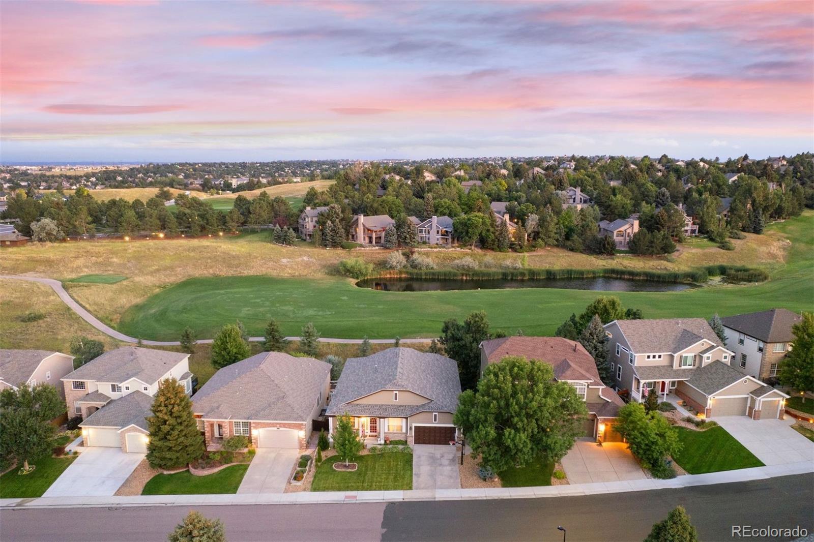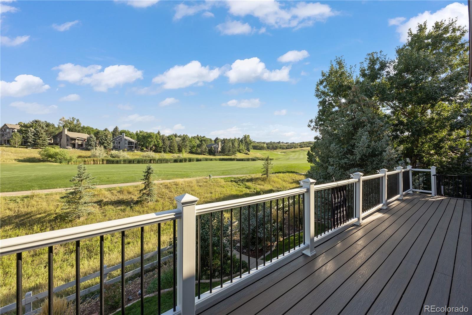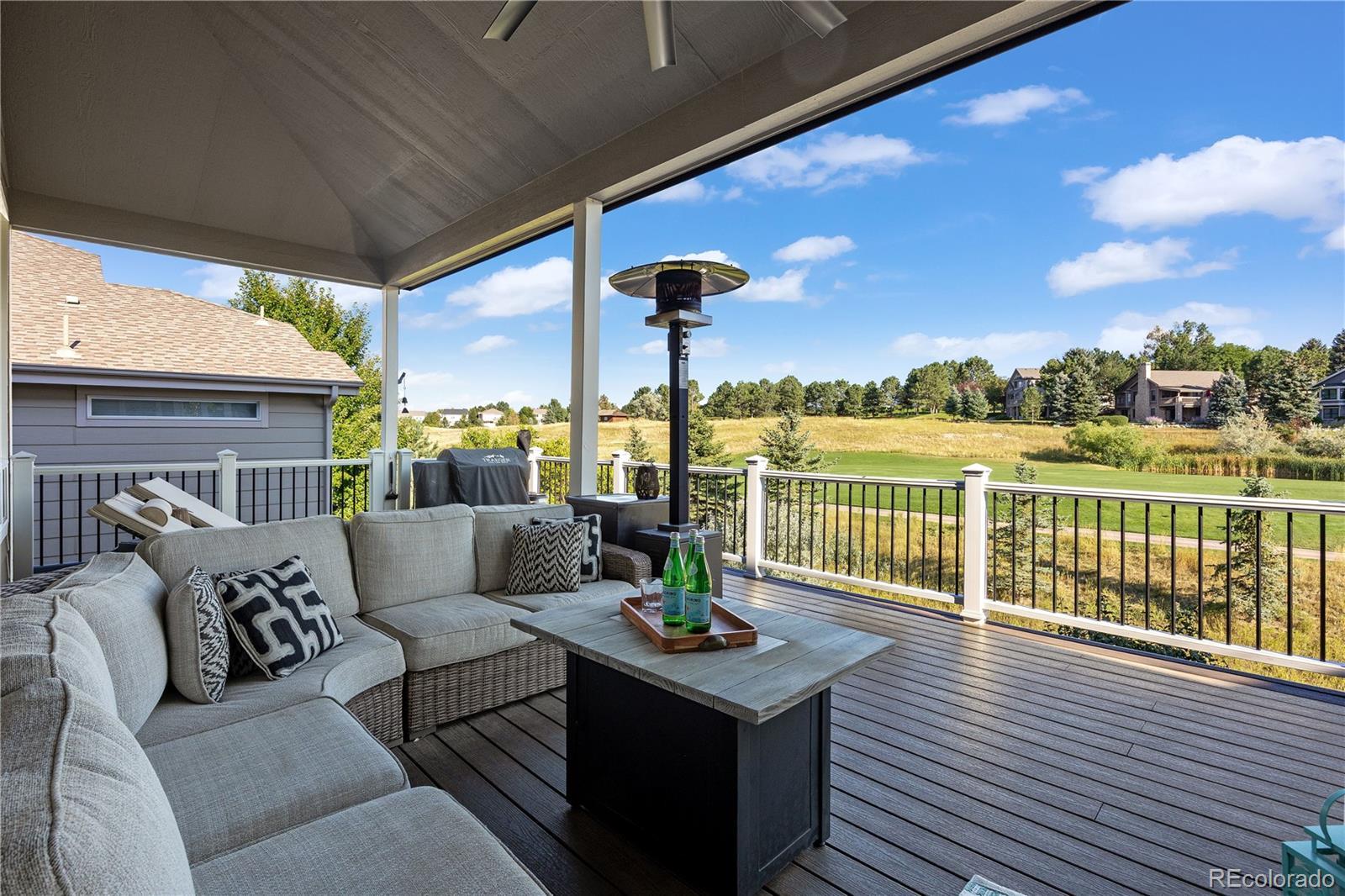 Stunning Ranch Home Backing to the 5th Fairway! With over $200,000 in renovations and upgrades, this home blends luxury, comfort, and entertaining spaces in one perfect package. Backing directly to the golf course, enjoy serene views from both levels of this beautiful ranch. The main level boasts gleaming hardwood floors, quartz countertops in the kitchen and every bath, and updated lighting and fixtures throughout. The open-concept living area flows seamlessly into the gourmet kitchen, complete with a grand center island, walk-in pantry, eat-in nook by a picture window, stainless steel appliances, gas range, and double oven. Step outside to the expansive Trex deck, ideal for entertaining while overlooking the fairway. A cozy fireplace anchors the living room, perfect for Colorado evenings. Also on the main level: •Private office with French doors and large windows •Laundry room and full bath •Two spacious bedrooms •A luxurious primary suite with deck access, spa-like 5-piece bath, and walk-in closet The walk-out lower level is an entertainer’s dream. Every detail was thoughtfully designed with luxury plank flooring, a pool table area, and a spectacular granite bar with beverage cooler, wine fridge, dishwasher, sink, and ample counter space. The spacious family room offers another fireplace, media/entertainment area, and room for dining or game nights. Three additional bedrooms and a stunning ¾ bath complete the finished living space. A massive storage/workshop area adds versatility. Step outside to a covered patio oasis, featuring a hot tub, lounge area, and lush landscaping. A new roof (2024) with a 15-year warranty adds peace of mind. Located in North Castle Pines and feeding into the highly sought-after Rock Canyon High School, this home offers both elegance and convenience.