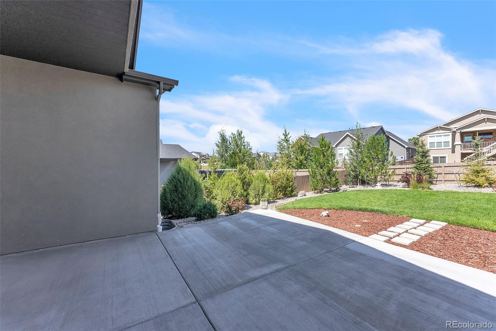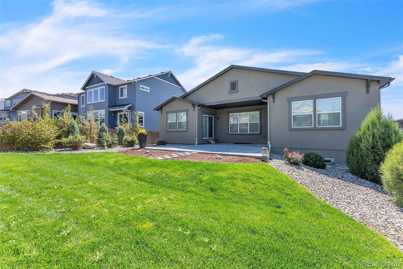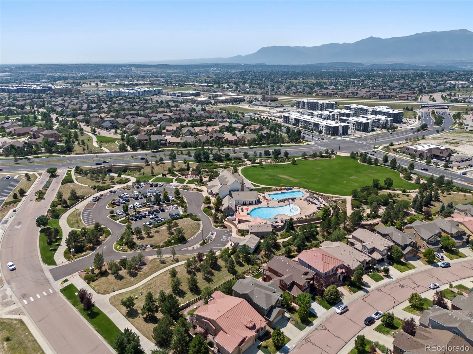 Welcome home to one of the best located homes in Cordera, boasting Pikes Peak views from the front porch, an oversized backyard complete with privacy fencing, and situated within walking distance of stunning neighborhood parks and walking trails. Walk up to this beautiful Massey floorplan by Vantage Homes in Cordera, featuring a stucco exterior, a three car garage, beautiful xeriscaping in the front yard and full landscaping with an oversized patio and lush grass in the backyard. Step through the front door, where the main level offers 11’ ceilings in the great room with a cozy corner fireplace. Continue into the designer kitchen featuring upgraded cabinets, quartz countertops, a center island, oven, and gas range with vent hood. The dining room includes a slider door that opens to a covered rear patio—perfect for outdoor dining and entertaining. A secondary bedroom and full bathroom are conveniently located off of the entryway, while the master suite complete with a 5-piece master bath and luxurious walk-in closet is located directly off the great room. An oversized mudroom/laundry room with access to the three car garage completes the main level. Head downstairs to the basement that features a large rec room, two additional bedrooms, and a full bathroom. A spacious unfinished space can be converted into a Junior Master. Note the plumbing rough ins and wet bar rough ins downstairs. Cordera is a luxurious master-planned community that features a club house, swimming pool, workout facility, workout classes, neighborhood parks, walking trails, meeting space, and more. Zoned to award winning D20 schools, and minutes from UC Health North, Children's Hospital, the Promenade Shops at Briargate, Target, countless dining options, John Venezia Park, Lifetime Fitness, and more. Unbeatable home and second to none location! Schedule your tour today!