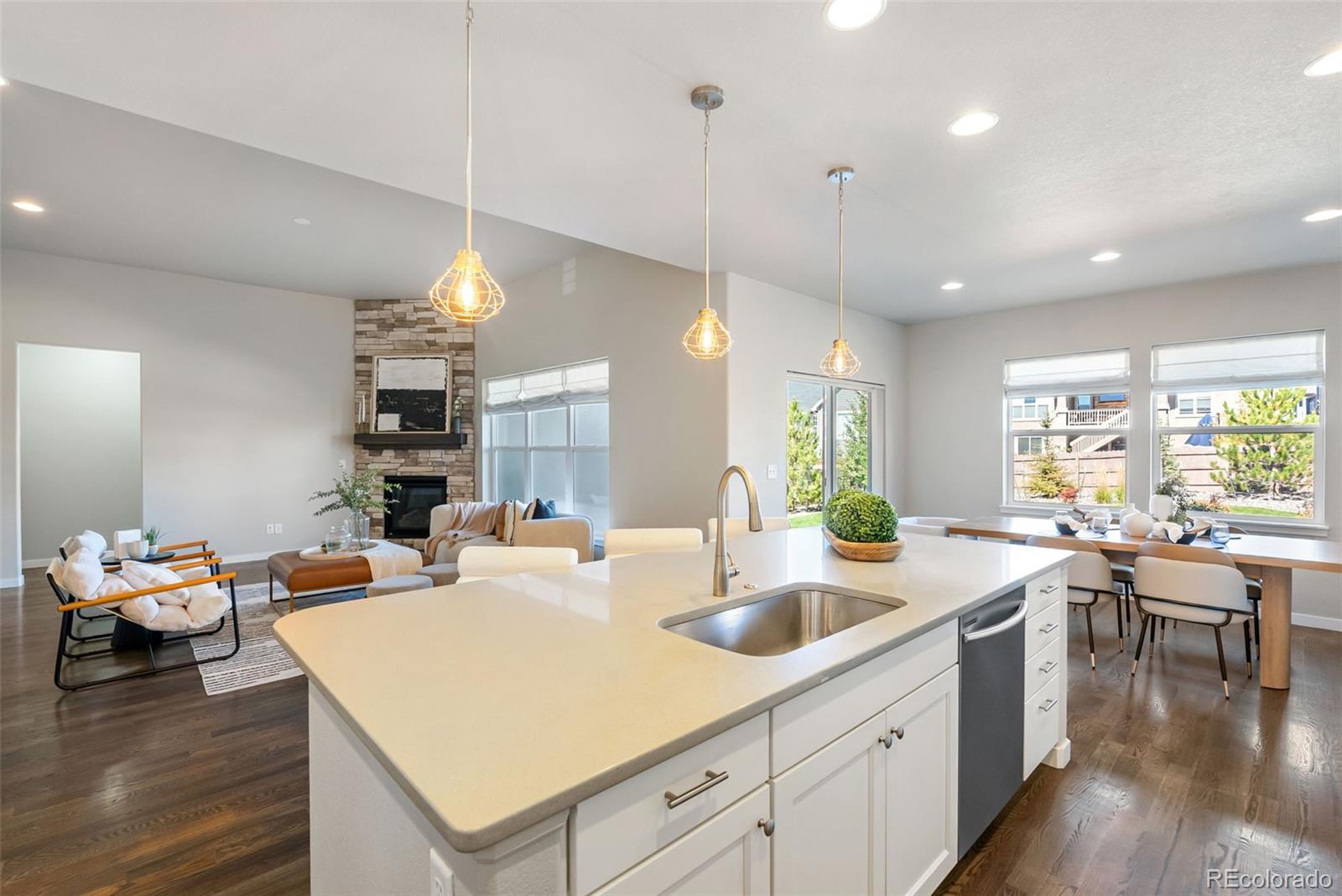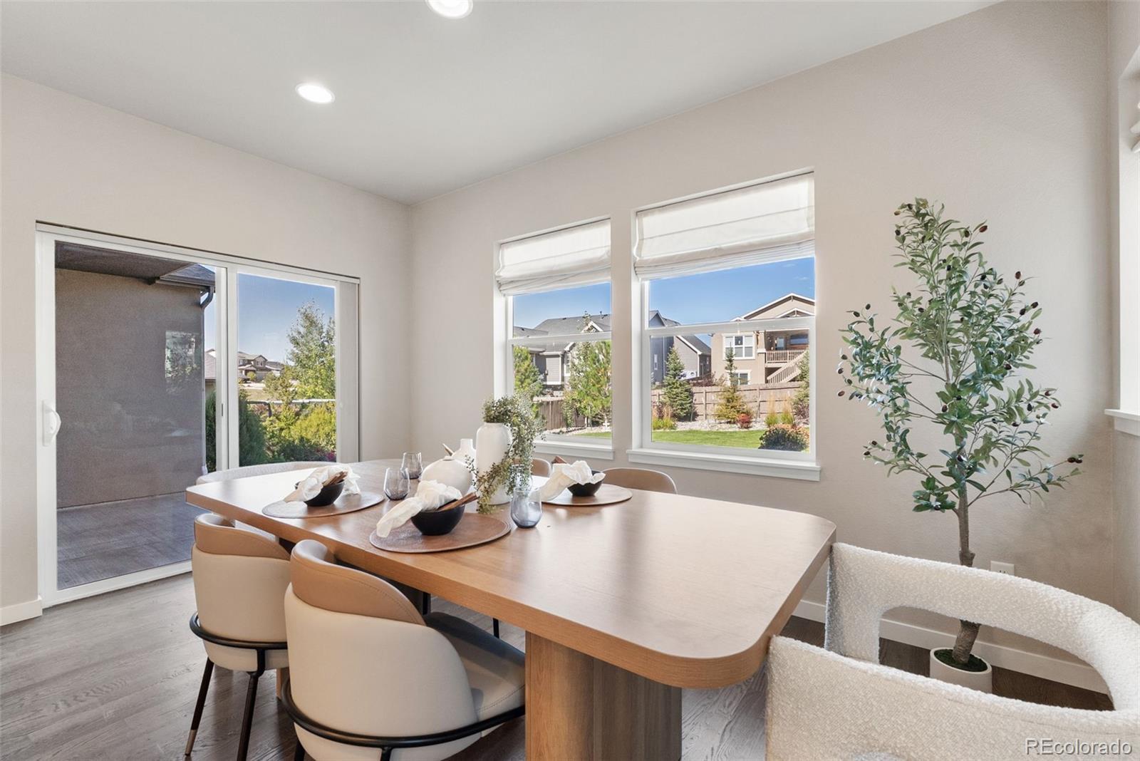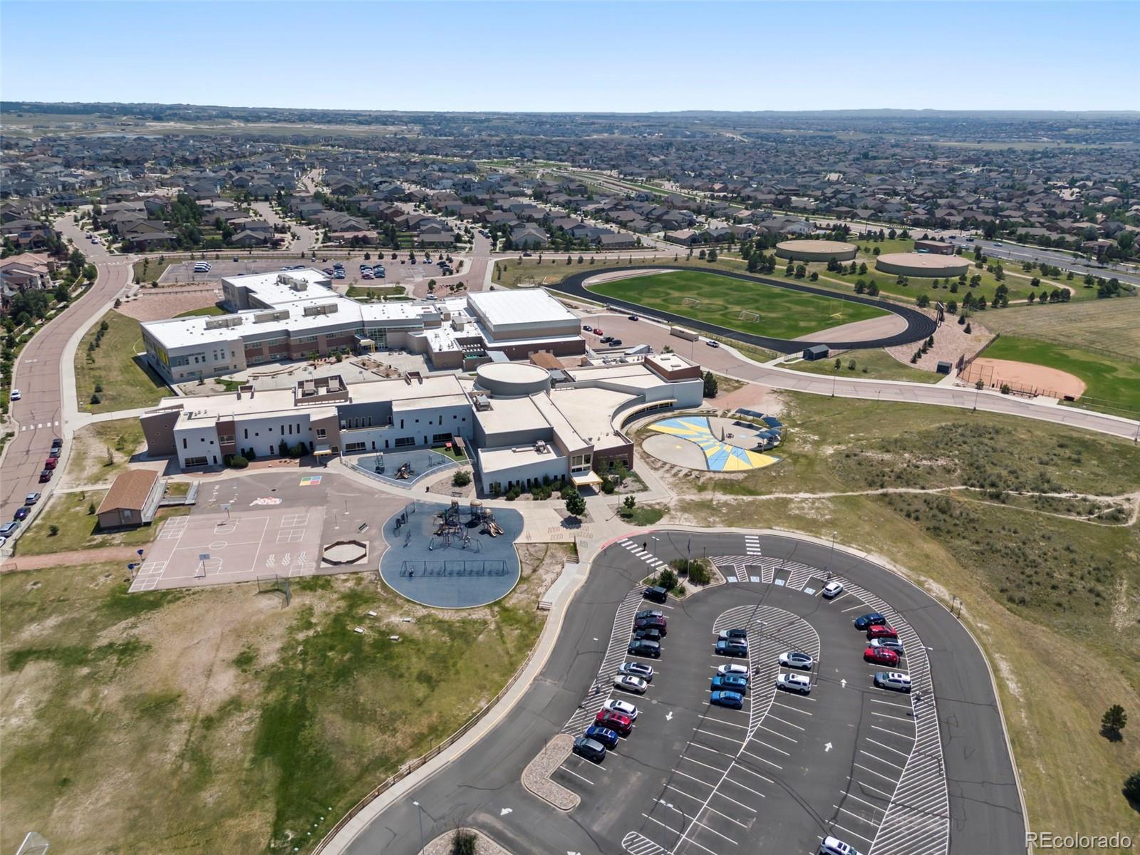 Welcome home to one of the best located homes in Cordera, boasting Pikes Peak views from the front porch, an oversized backyard complete with privacy fencing, and situated within walking distance of stunning neighborhood parks and walking trails. Walk up to this beautiful Massey floorplan by Vantage Homes in Cordera, featuring a stucco exterior, a three car garage, beautiful xeriscaping in the front yard and full landscaping with an oversized patio and lush grass in the backyard. Step through the front door, where the main level offers 11’ ceilings in the great room with a cozy corner fireplace. Continue into the designer kitchen featuring upgraded cabinets, quartz countertops, a center island, oven, and gas range with vent hood. The dining room includes a slider door that opens to a covered rear patio—perfect for outdoor dining and entertaining. A secondary bedroom and full bathroom are conveniently located off of the entryway, while the master suite complete with a 5-piece master bath and luxurious walk-in closet is located directly off the great room. An oversized mudroom/laundry room with access to the three car garage completes the main level. Head downstairs to the basement that features a large rec room, two additional bedrooms, and a full bathroom. A spacious unfinished space can be converted into a Junior Master. Note the plumbing rough ins and wet bar rough ins downstairs. Cordera is a luxurious master-planned community that features a club house, swimming pool, workout facility, workout classes, neighborhood parks, walking trails, meeting space, and more. Zoned to award winning D20 schools, and minutes from UC Health North, Children's Hospital, the Promenade Shops at Briargate, Target, countless dining options, John Venezia Park, Lifetime Fitness, and more. Unbeatable home and second to none location! Schedule your tour today!