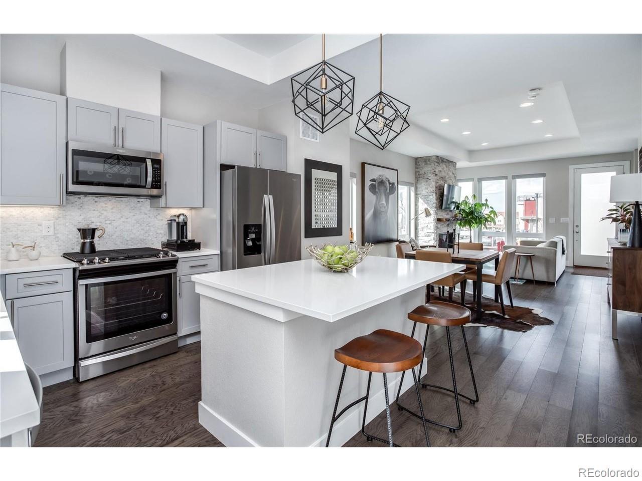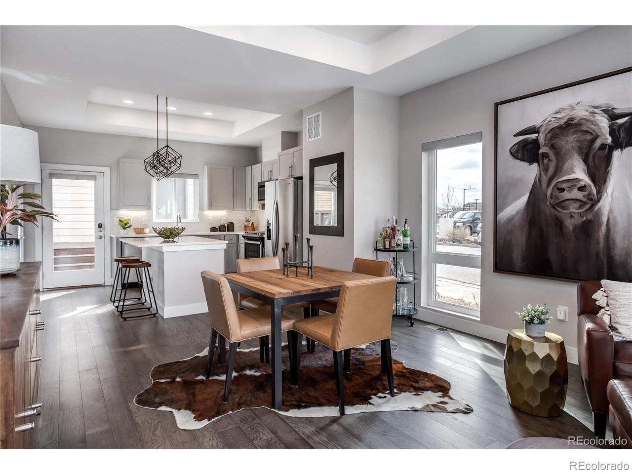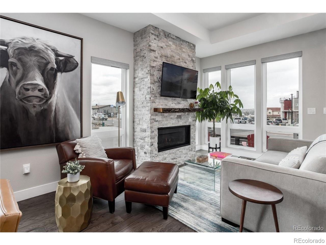 Welcome to this exceptional custom townhome, perfectly situated on a corner lot with breathtaking mountain views. This energy-efficient residence offers 3 bedrooms and 3 1/2 bathrooms, encompassing just under 2,000 sq. ft. of well-designed living space. Upon entering, you are greeted by a bright and inviting main living area featuring Cafe Society Fusion Oak flooring, designer motorized blinds, and a stunning stacked stone gas fireplace with a live edge mantle, creating a cozy atmosphere for gatherings. The heart of the home is an expansive kitchen designed for entertaining, complete with sleek quartz countertops, an elegant Carrera marble backsplash, and top-of-the-line appliances that will inspire your culinary creations. The spacious second level hosts the luxurious owner’s suite, boasting impressive ten-foot ceilings, along with a secondary bedroom that includes its own en-suite bathroom for added privacy. For additional comfort, the cozy lower level features a second living area, which includes an extra bedroom and bathroom, making it ideal for guests or family. This townhome is not just a living space; it’s a lifestyle choice, combining modern elegance with energy efficiency. Don’t miss the opportunity to call this stunning property your home. For inquiries or to schedule a showing, please reach out!