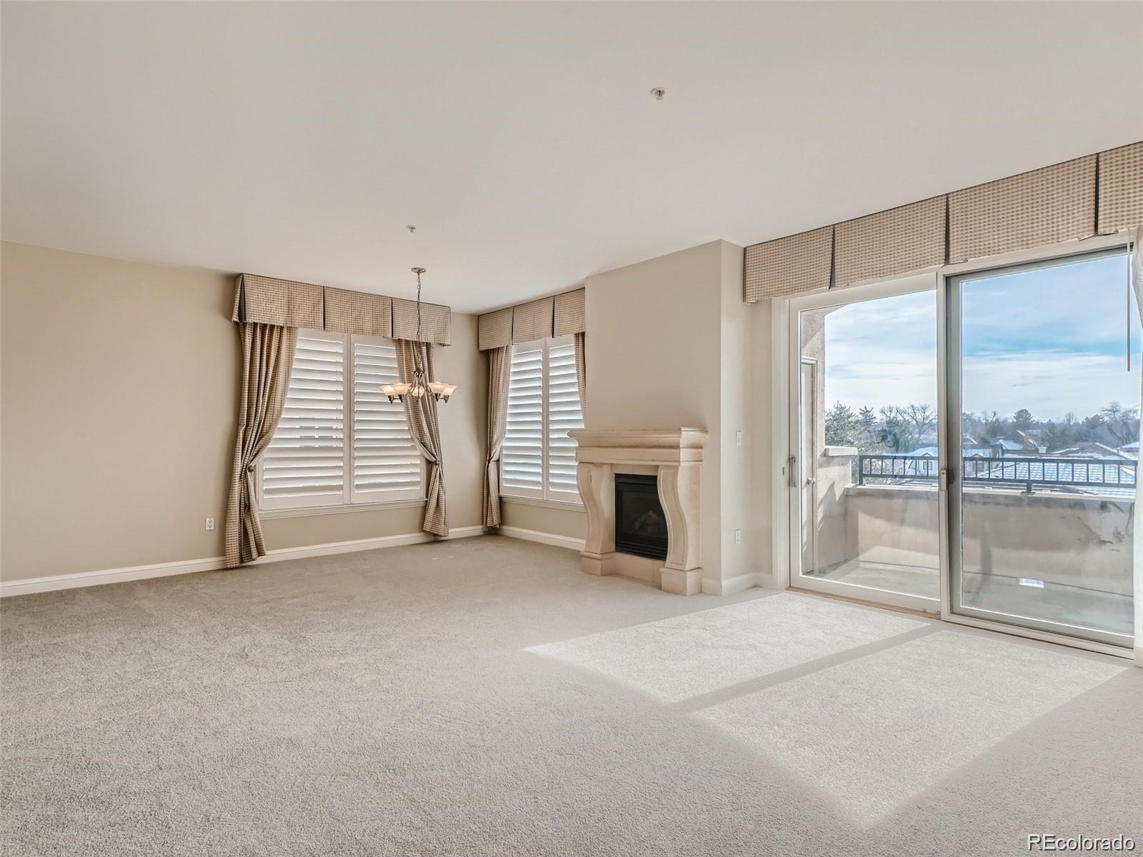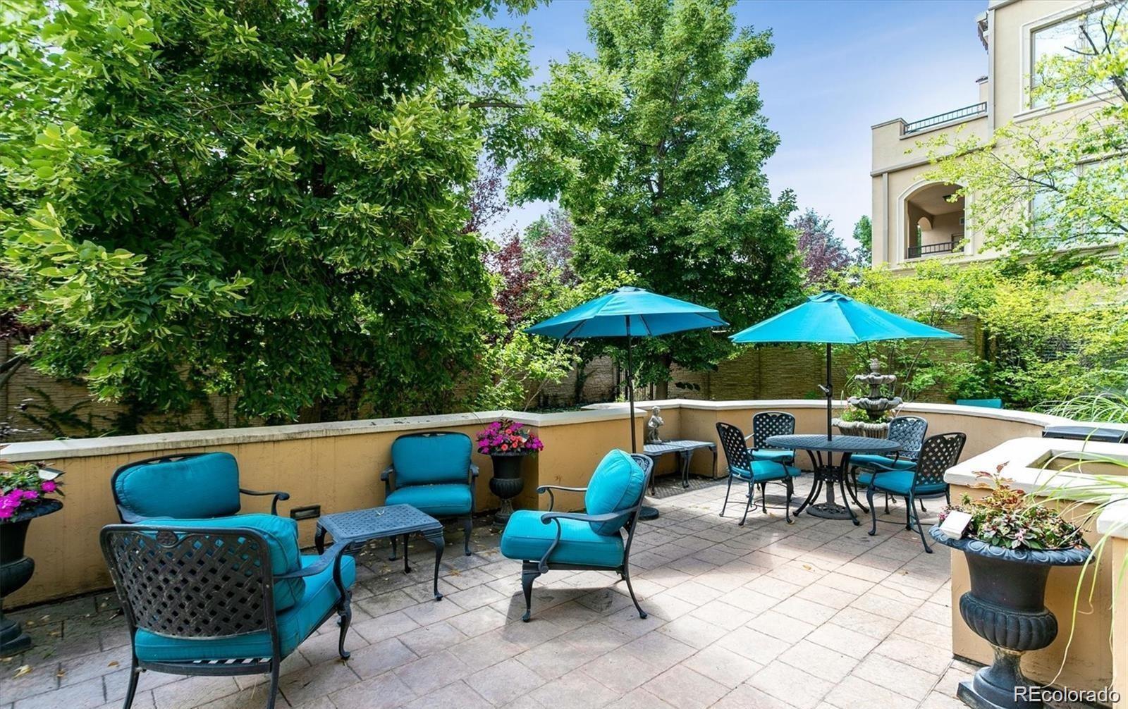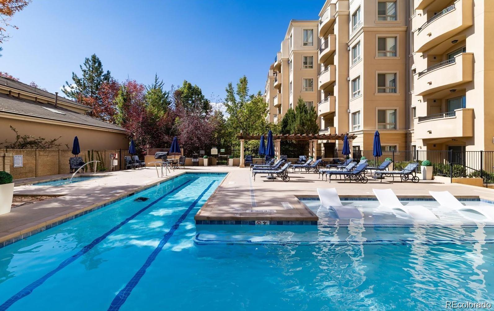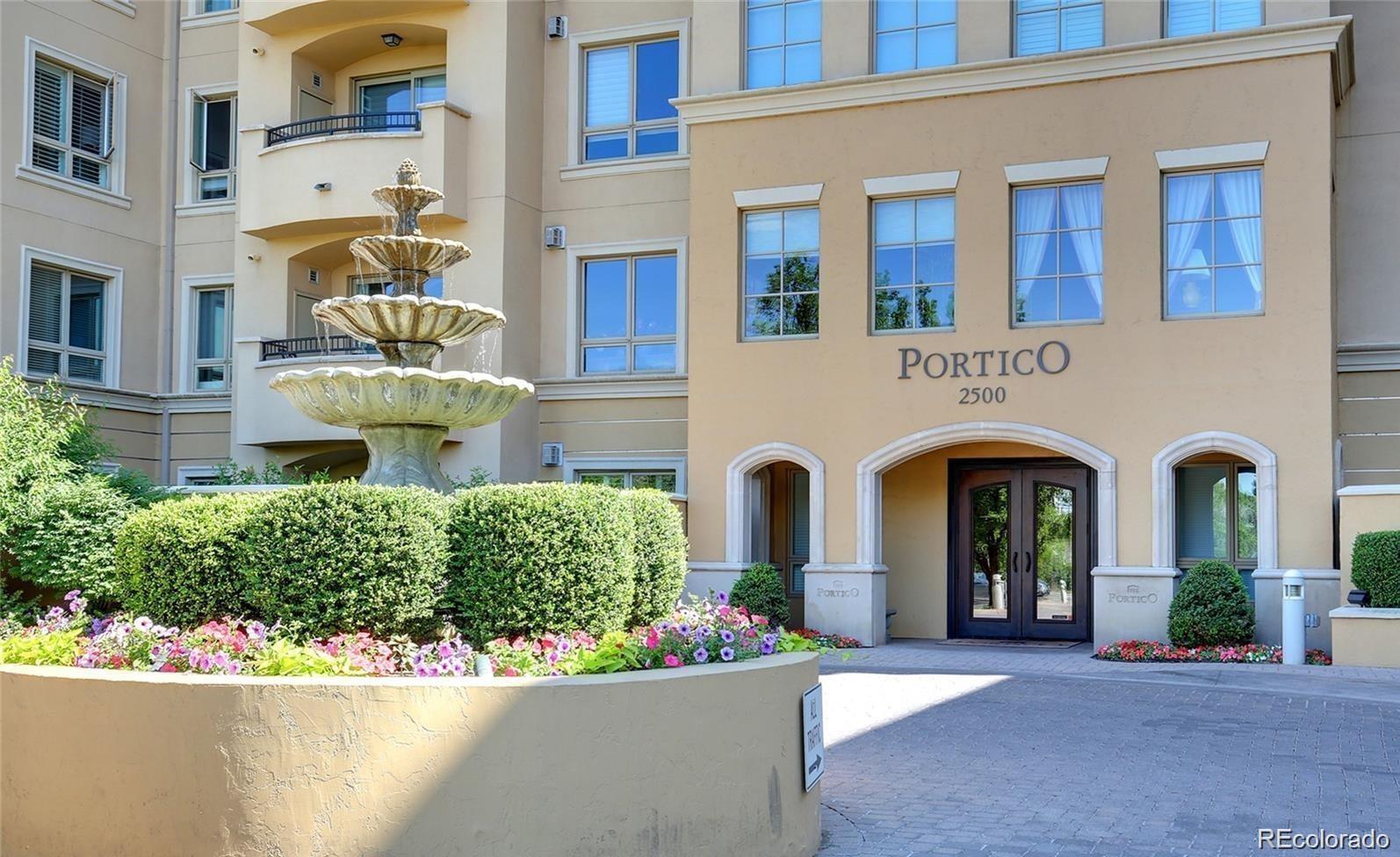 Beautiful one bedroom condo in Denver's beloved Portico...Cherry Creek's exquisite full amenity building! Premiere location with easy access to Cherry Creek North restaurants and shopping. This 963-sq-ft unit is enriched with fabulous southern views from an exterior balcony as well as from the lovely living/dining room windows. Trimmed by elegant stone, a gas fireplace in the living room sets the scene for cozy nights, while an adjacent dining room and classically finished kitchen adorned with gorgeous cabinets and opulent granite countertops offers a perfect setting for culinary delights. The unit's primary bedroom boasts a walk-in closet with separate 5-piece bath dressed with double-vanity and a soaker tub. New carpet installed in 2023. Full size clothes washer and dryer included. Portico is within immediate proximity to Denver Country Club, Cherry Creek Shopping Center, Cherry Creek North, and Cherry Creek bike path enjoyed by joggers, walkers, and outdoor adventurers. The unit features extra storage on the balcony as well as a deeded unit specific storage space. Underground heated garage equipped with electric vehicle charging station(s) and visitor parking in the garage just to the right of the entrance. Unit specific deeded parking space #172. Portico's amenities are second to none, with pool, hot tub, steam & dry sauna, one bed guest suite available for reservation, spa with private massage room, secured parking garage, social room, fitness center, additional storage and all in the heart of everything that is Cherry Creek!!!