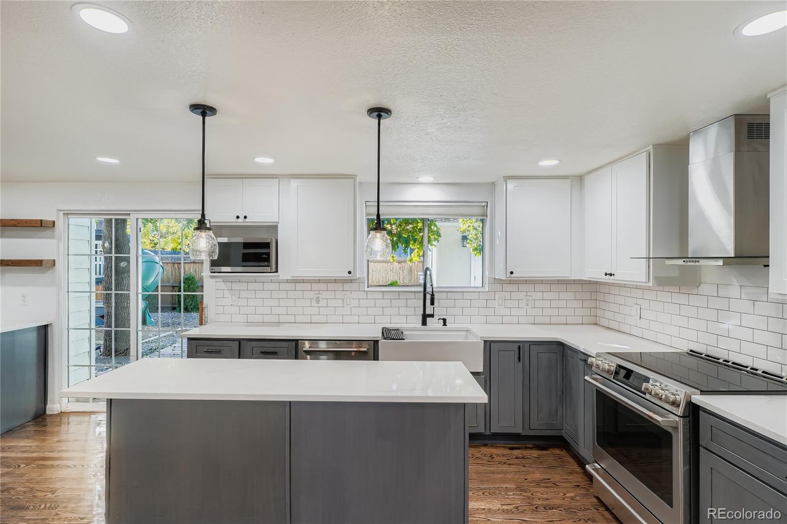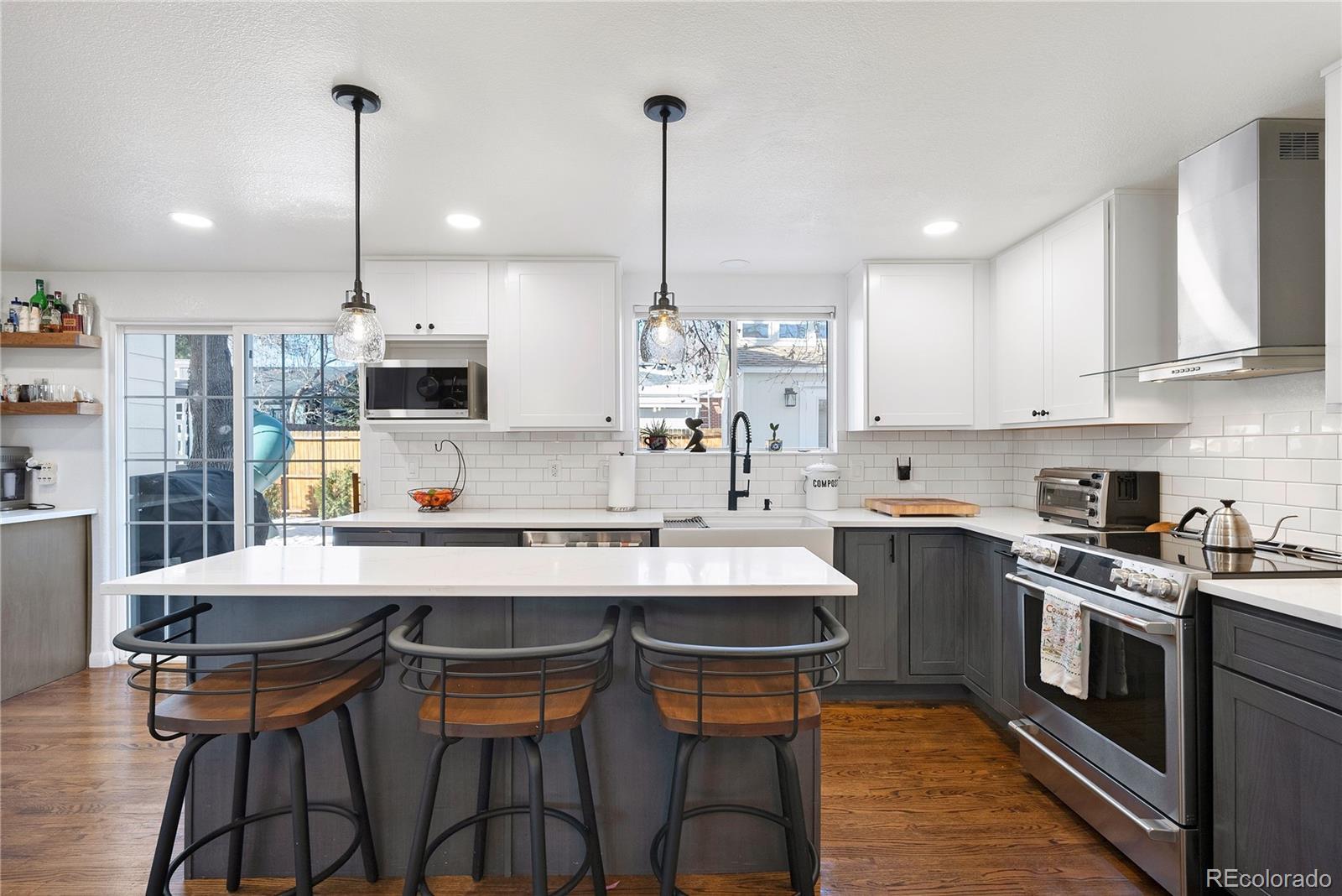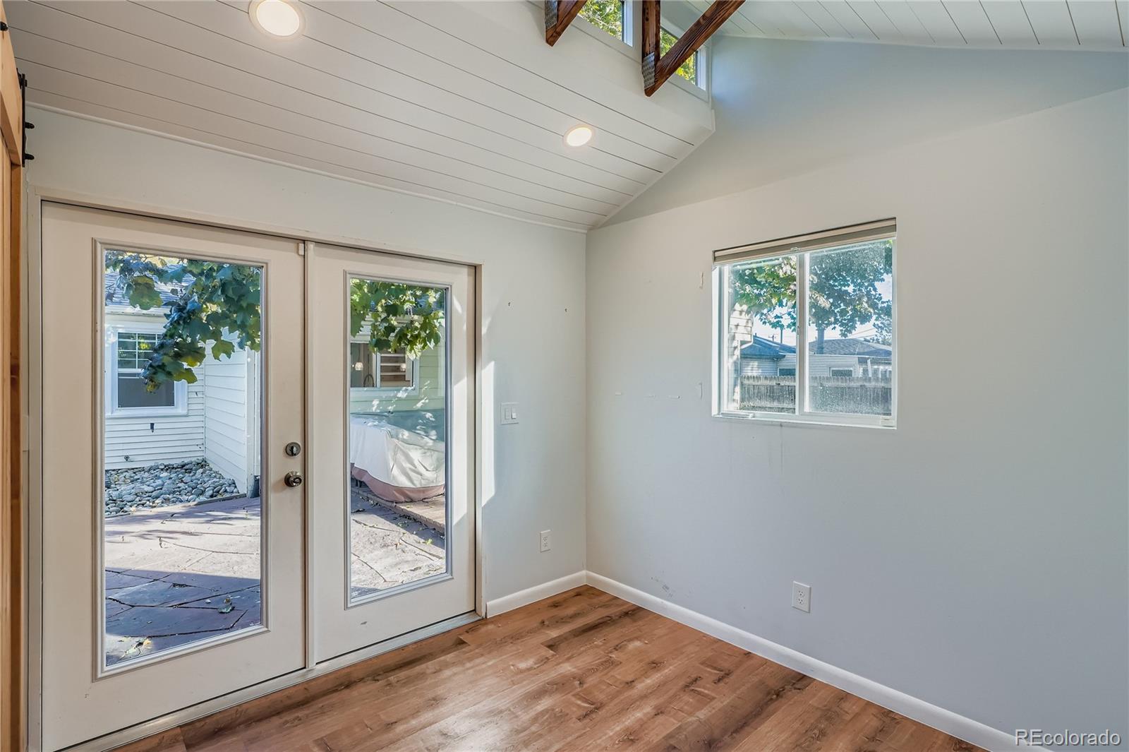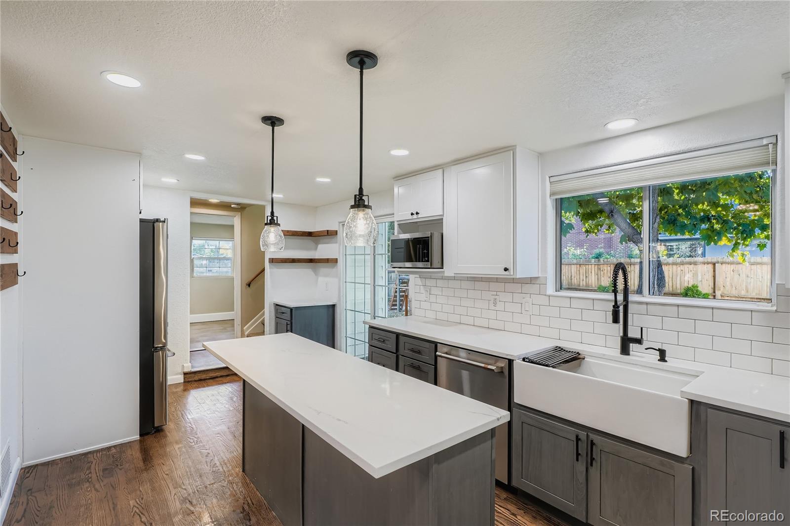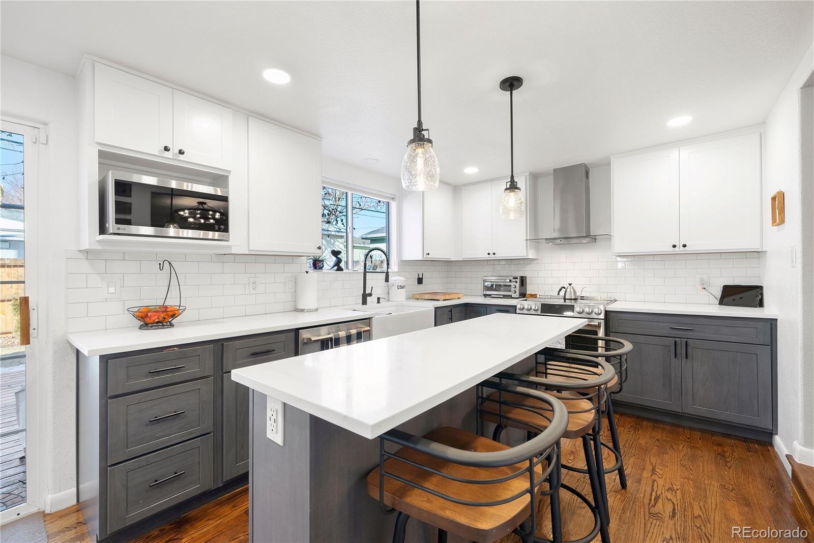 Discover this beautifully updated Edgewater home, where contemporary style blends seamlessly with welcoming character. This 3-bedroom, 2-bath residence offers a perfect balance of function and flair. The primary suite serves as a peaceful retreat, complete with a spa-inspired bath, custom built-ins, generous closet space, and room for a king bed. Two additional bedrooms on the main level are filled with natural light and provide flexible options for guests, a home office, or creative space. At the heart of the home, the chef’s kitchen impresses with stainless appliances, quartz counters, sleek cabinetry, and designer lighting that ties it all together. The open living area showcases beautiful hardwood floors and offers plenty of space for cozy nights in or hosting friends. A versatile mudroom adds extra storage and could easily double as a workout or yoga area. Step outside to your private backyard oasis—complete with mature trees, a flagstone patio, spacious deck, and play area. **Tucked behind the main home, the detached ADU is a true bonus—climate-controlled and bright, ideal for a studio, gym, office, or guest suite. **Located just blocks from Sloan’s Lake, Edgewater Beer Garden, and the Edgewater Public Market, this home puts you right at the center of one of Denver’s most desirable neighborhoods. Stylish, functional, and move-in ready—this one is truly special.
