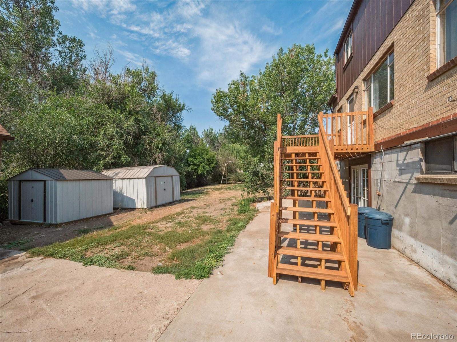 AMAZING OPPORTUNITY ON HUGE LOT! Home with great potential on 17,600 square foot lot backing to Harvard Gulch Trail, awaiting your renovation skills. Ideal for investor or buyer looking for a sweat equity situation. Home has “good bones” and lots of square footage - just needs updating. Costly recent updates include: new roof (2023), new hot water heater (2022), new back deck (2025), newer furnace and A/C (2018), 2 storage sheds (2020). Hardwood flooring under the carpet on main and upper levels. Graceful cove ceilings in Living Room and Dining Room with arched doorway between the rooms. Large sun-filled picture windows. Fireplace with brick surround. Kitchen opens to new deck. Plenty of space…2 bedrooms + full bath on main floor and 2 bedrooms, full bath and bonus room on upper level, which is ideal for a home office or media room. Walk-out basement features a 2nd fireplace, another (non-conforming) bedroom + 1/2 bath with existing plumbing for shower. Buyer to verify finished square footage in the basement. All appliances included "as is". 2 car detached garage. Plenty of room on property for RV or camper storage. Great location! Centrally located with easy access to Hampden Ave, Santa Fe Drive and I-25. Several parks nearby, including Ruby Hill + Harvard Gulch, as well as Overland Golf Course.