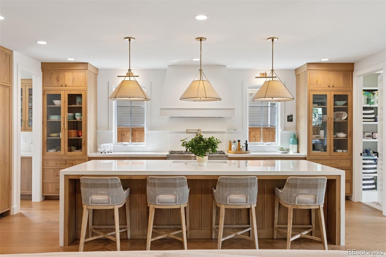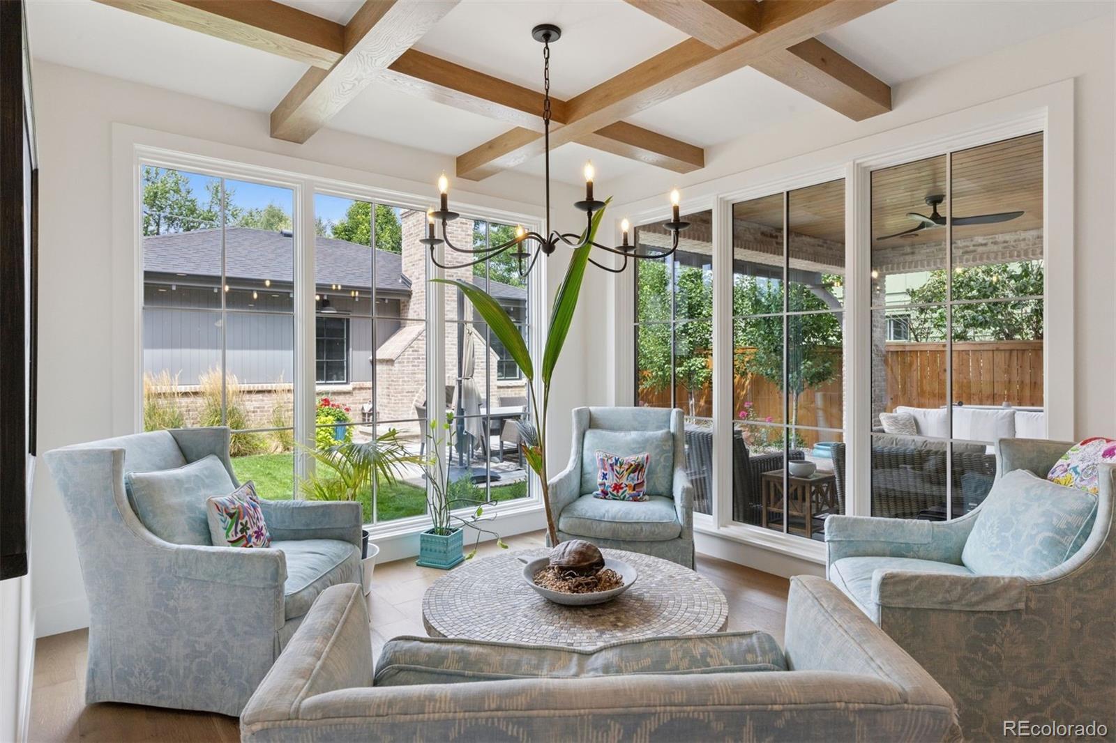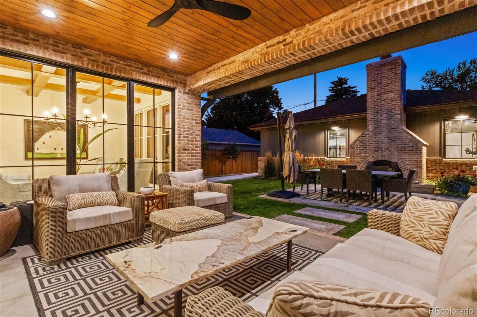 2419 S. Clayton Street presents a residence where timeless architecture meets contemporary comfort. Completed in 2023 on a 7,500-square-foot lot along one of Observatory Park’s most picturesque blocks, the home blends classic character with thoughtful modern design. A welcoming brick front porch and arched iron entry open to a sun-filled interior where details set the tone—herringbone inlay flooring, beamed ceilings, limestone accents, and warm oak cabinetry create a refined backdrop for daily living. At the heart of the home, a showcase kitchen features custom cabinetry, dual refrigeration, wine cooler, and an oversized waterfall island. A butler’s area connects seamlessly to a walk-in pantry, designed to keep appliances and storage tucked neatly out of sight. The adjoining breakfast nook and great room, framed by lattice beams and walls of windows, extend gracefully to the outdoors. Upstairs, the primary suite offers a serene retreat with vaulted, beamed ceilings, fireplace, and sunny bay window. A spa-inspired bath with dual shower heads, marble tile, and expansive walk-in closet anchors the suite, while three additional en-suite bedrooms and a generous laundry room complete the level. The finished lower level with soaring ceilings adds space for leisure and wellness, including a full bar, game and family rooms, gym, guest suite, and storage. The lot itself is designed for entertaining with a covered patio, additional brick patio with gas fireplace, and an oversized three-car garage. With premium finishes, exceptional outdoor living, and a sought-after location near Denver’s top schools and parks, this home defines elevated Observatory Park living.