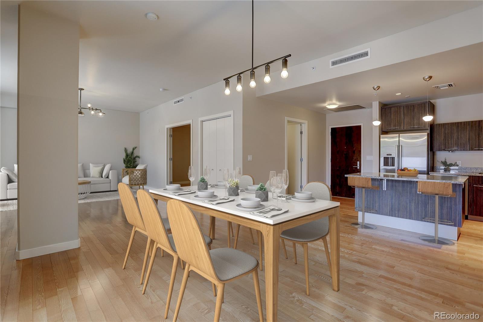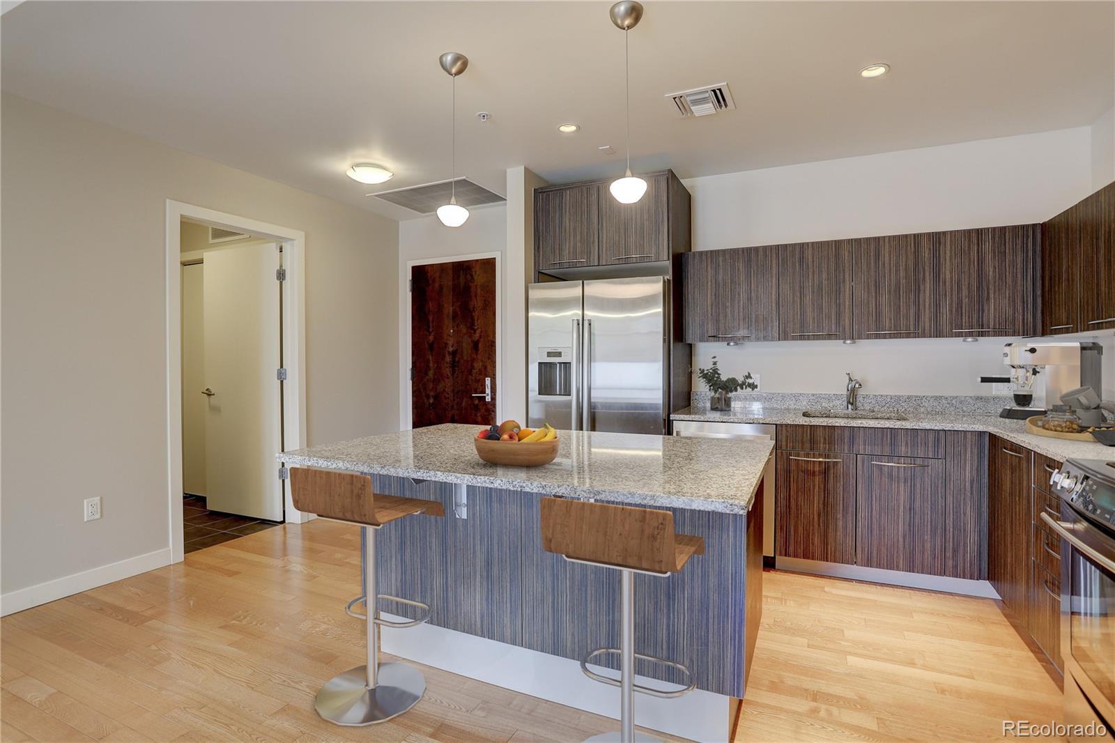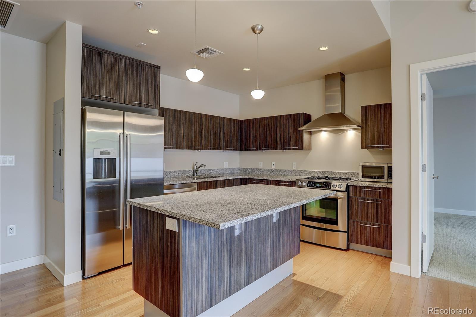 Live the lifestyle you’ve been manifesting in this sleek, move-in-ready 2-bedroom, 2-bath condo offering 1,400 sq. ft. of open living space and 2 secure indoor garage spaces (no more hunting for parking!). Step inside to soaring ceilings, oversized windows, and a bright, open-concept layout designed for both entertaining and everyday living. The modern kitchen features stainless steel appliances, granite countertops, and a breakfast island—perfect for cooking nights in or hosting friends. The spacious primary suite is your private retreat with a spa-like bath, dual vanities, and a generous walk-in closet. A second bedroom and full bath give you flexibility for a roommate, guest space, or work-from-home setup. Enjoy resort-style amenities infinity pool, fitness center, rooftop lounge, concierge, and secure building access. With high-speed internet options, streaming-ready wiring, and smart-home potential, this condo keeps you connected and stress-free. HOA includes utilities, not phone. Located just minutes from trendy coffee shops, local breweries, boutique gyms, and public transit, this home puts the best of Denver at your doorstep. Highlights for today’s lifestyle: 2 indoor garage spaces (rare!), Pet-friendly community, Modern finishes + low-maintenance living, Walk able, social, and connected neighborhood. This is more than a condo—it’s your hub for convenience, community, and elevated living.