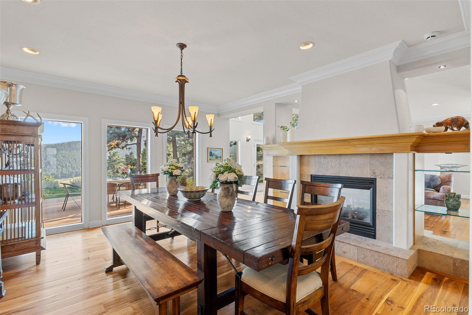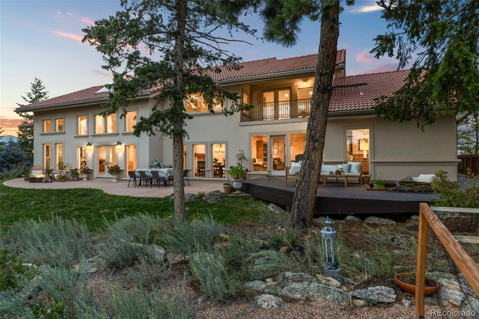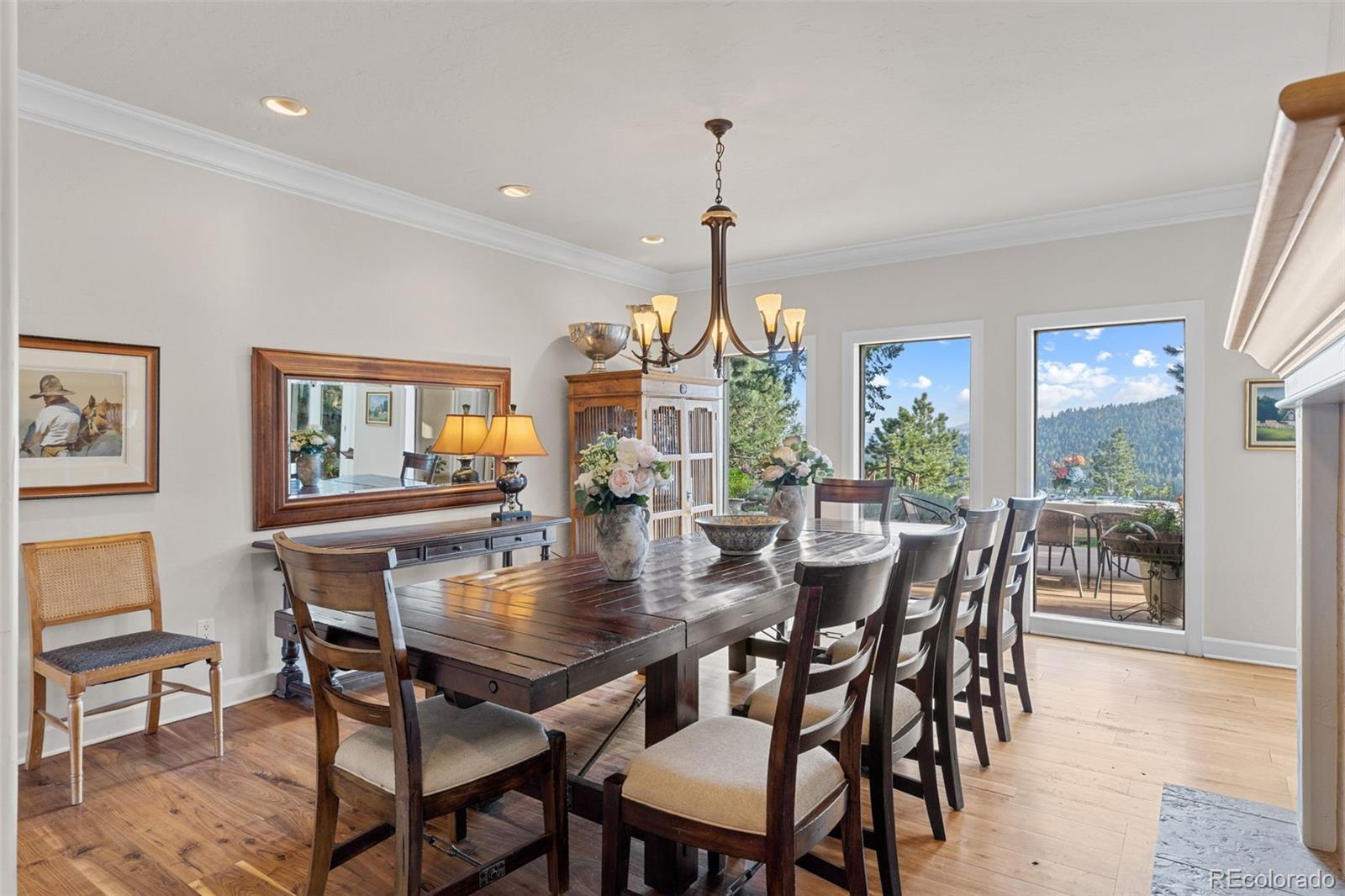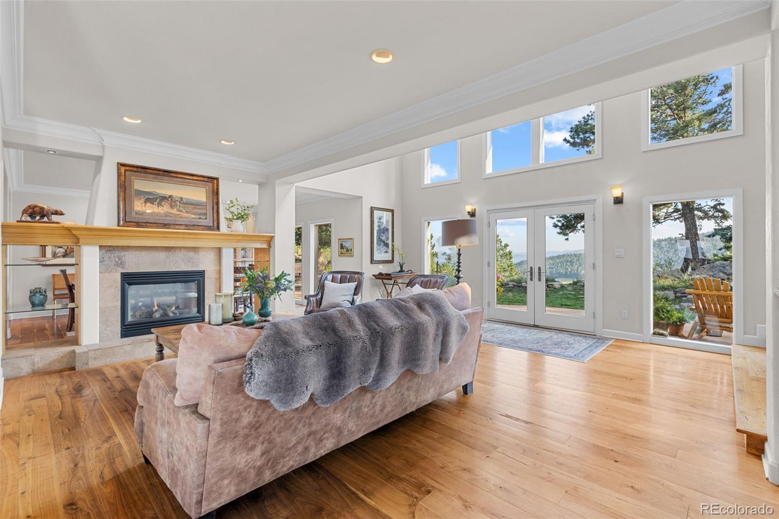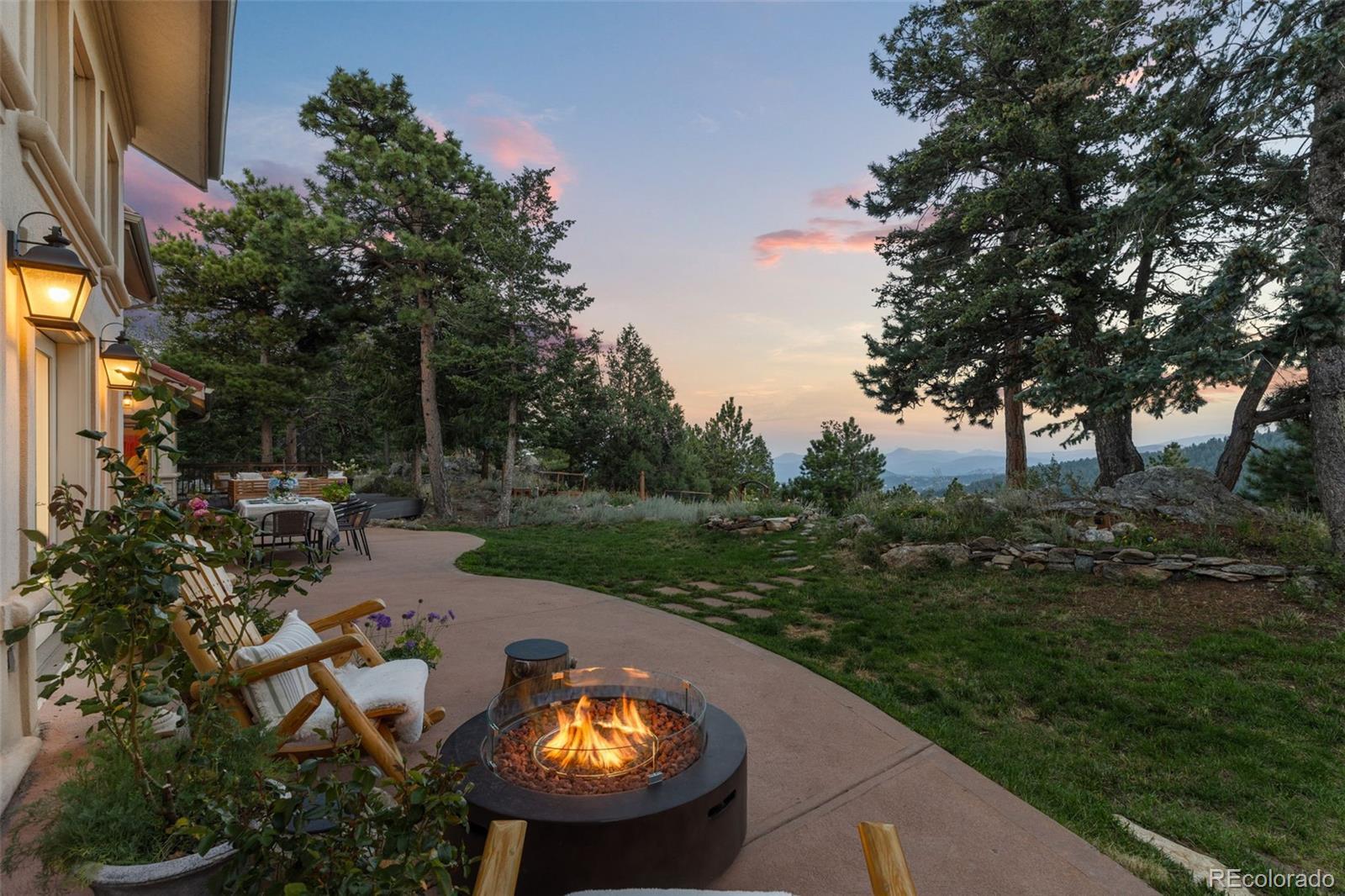 Soda Creek Mountain Retreat with Breathtaking Views! Discover the ultimate Colorado lifestyle in this expansive mountain estate, perfectly set on nearly seven private acres of serene pines with sweeping views of rolling meadows and layered peaks. Arrive down the private driveway and step into a setting of pure tranquility. Inside, a grand foyer welcomes you with soaring ceilings, a graceful curved staircase, and walls of natural light. The main level is ideal for everyday living and entertaining, featuring a spacious kitchen with island seating that seamlessly flows into the dining and family rooms, connected by the double-sided fireplace. Step outside to patios and wraparound decks that capture majestic mountain views in every direction, easily accessed from nearly every room in the house. Upstairs, the luxurious primary suite offers a private terrace, fireplace, spa-like bath, and a generous walk-in closet. Additional bedrooms upstairs and on the main level feature ensuite baths, perfect for family and guests. The walk-out lower level expands your living space with a home theater, wine cellar, bar, bonus rooms, and access to a heated three-car garage with workshop. All of this comes with an unbeatable location—just minutes from I-70. Enjoy quick access to Bergen Park, downtown Evergreen, and Denver, or head west to world-class ski resorts. Private, elegant, and endlessly inspiring, this one-of-a-kind Soda Creek estate offers the perfect blend of luxury and Colorado adventure.
