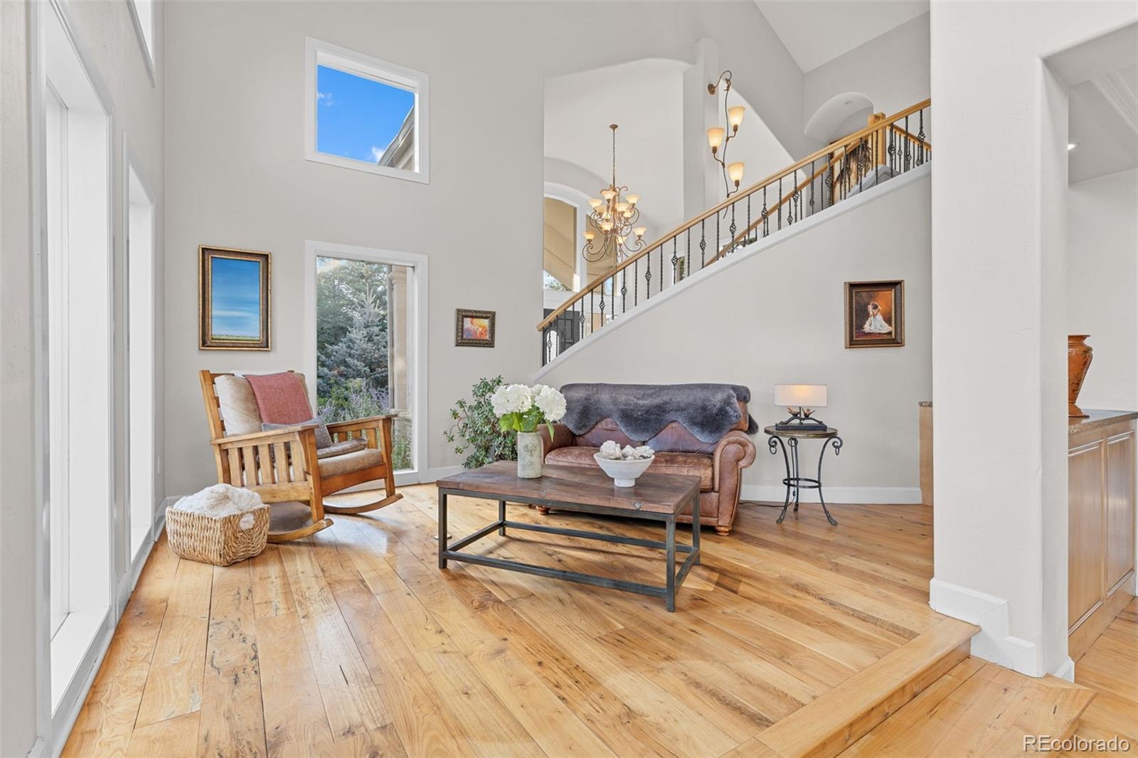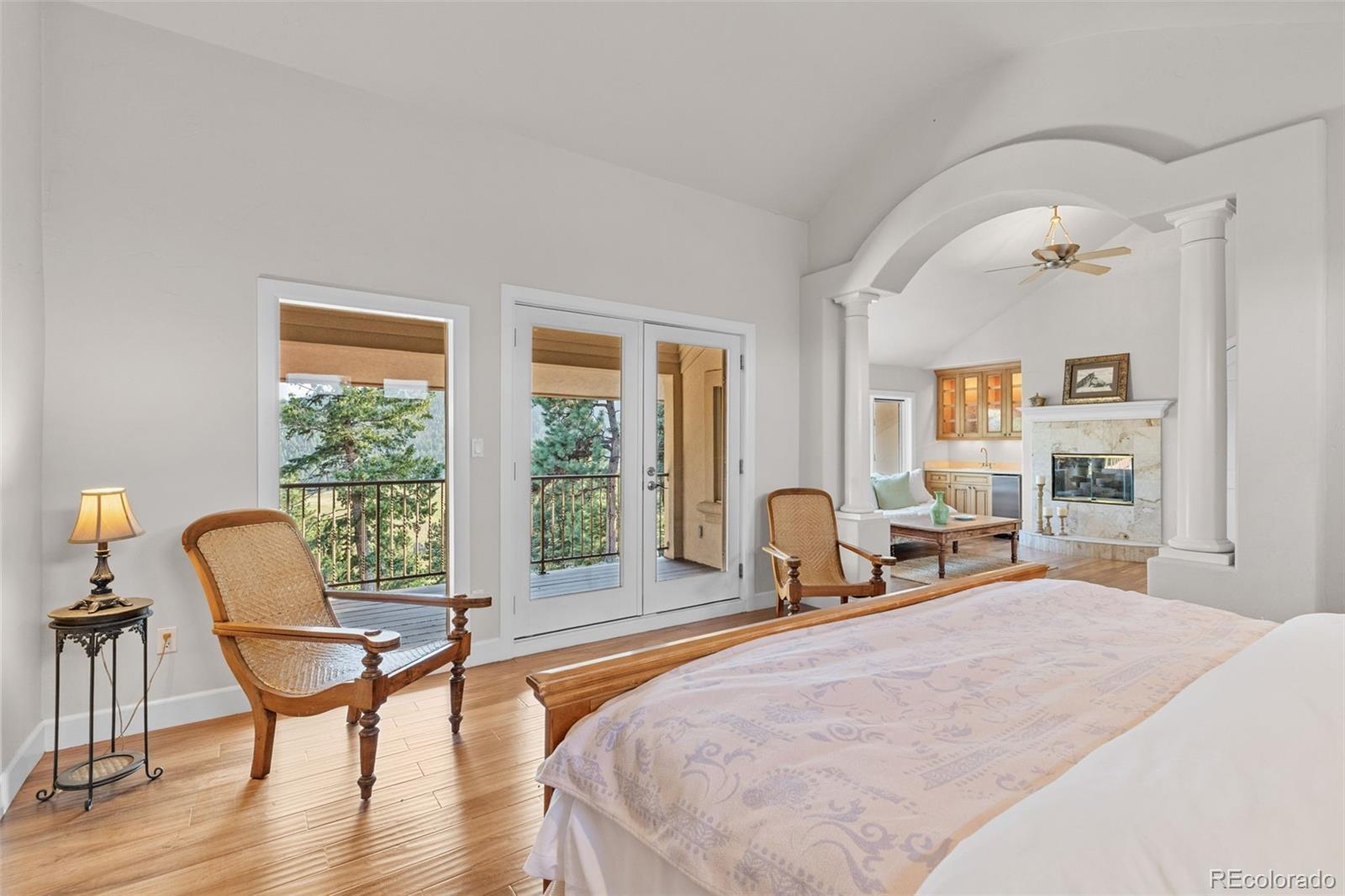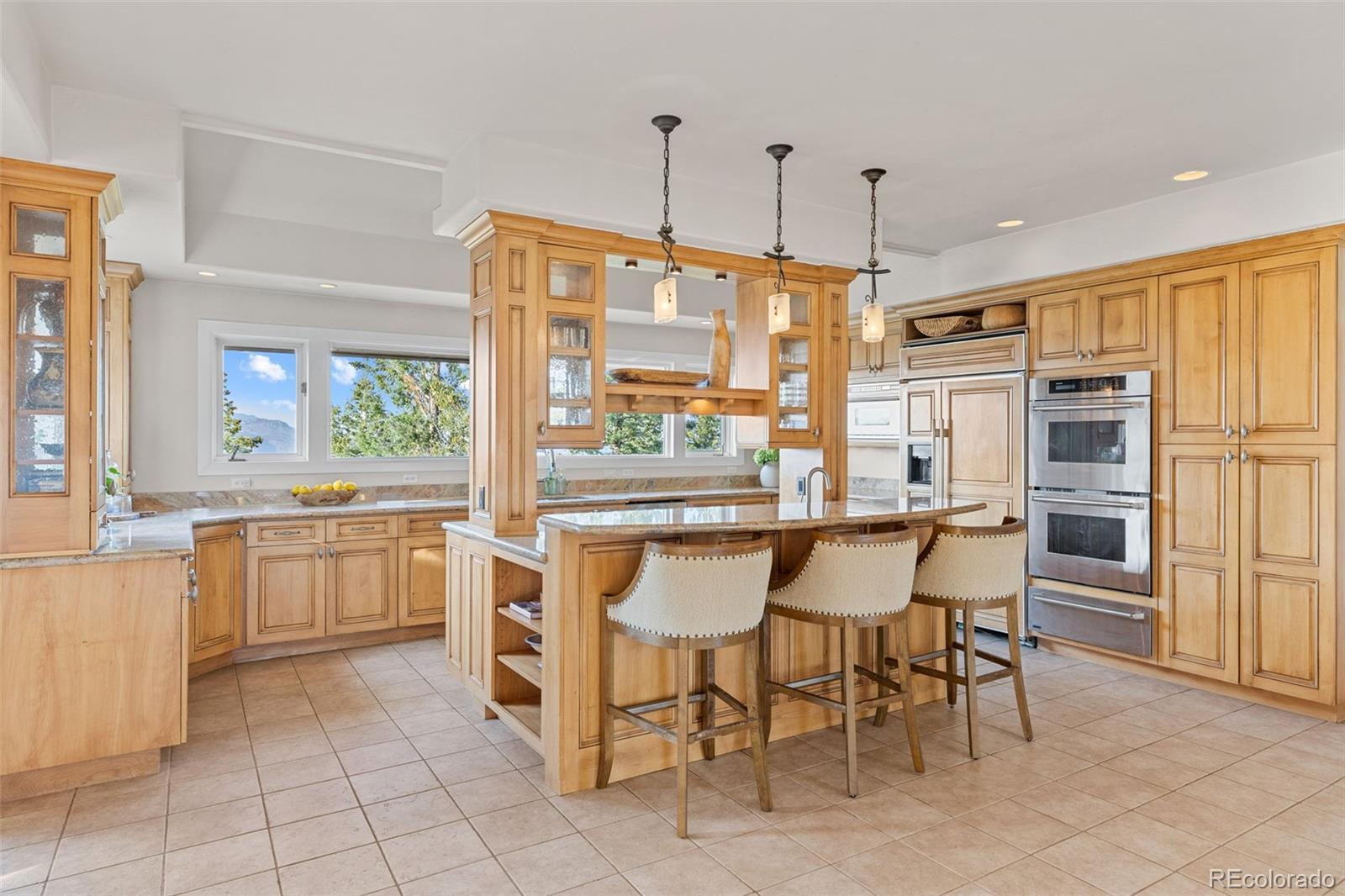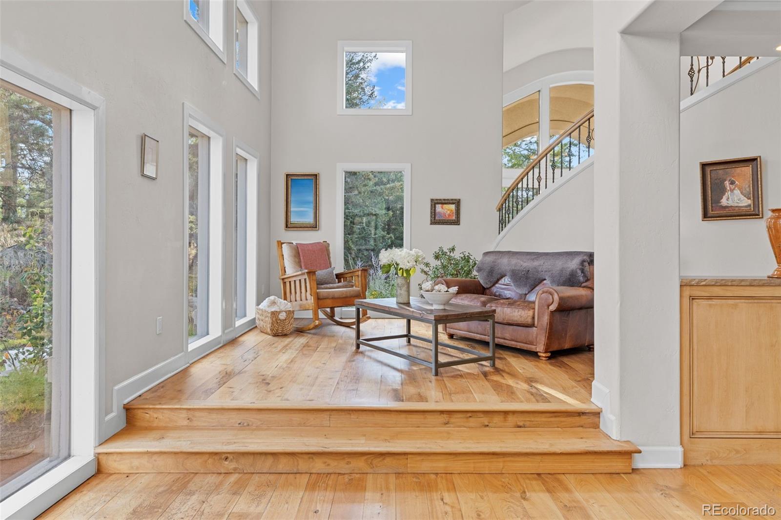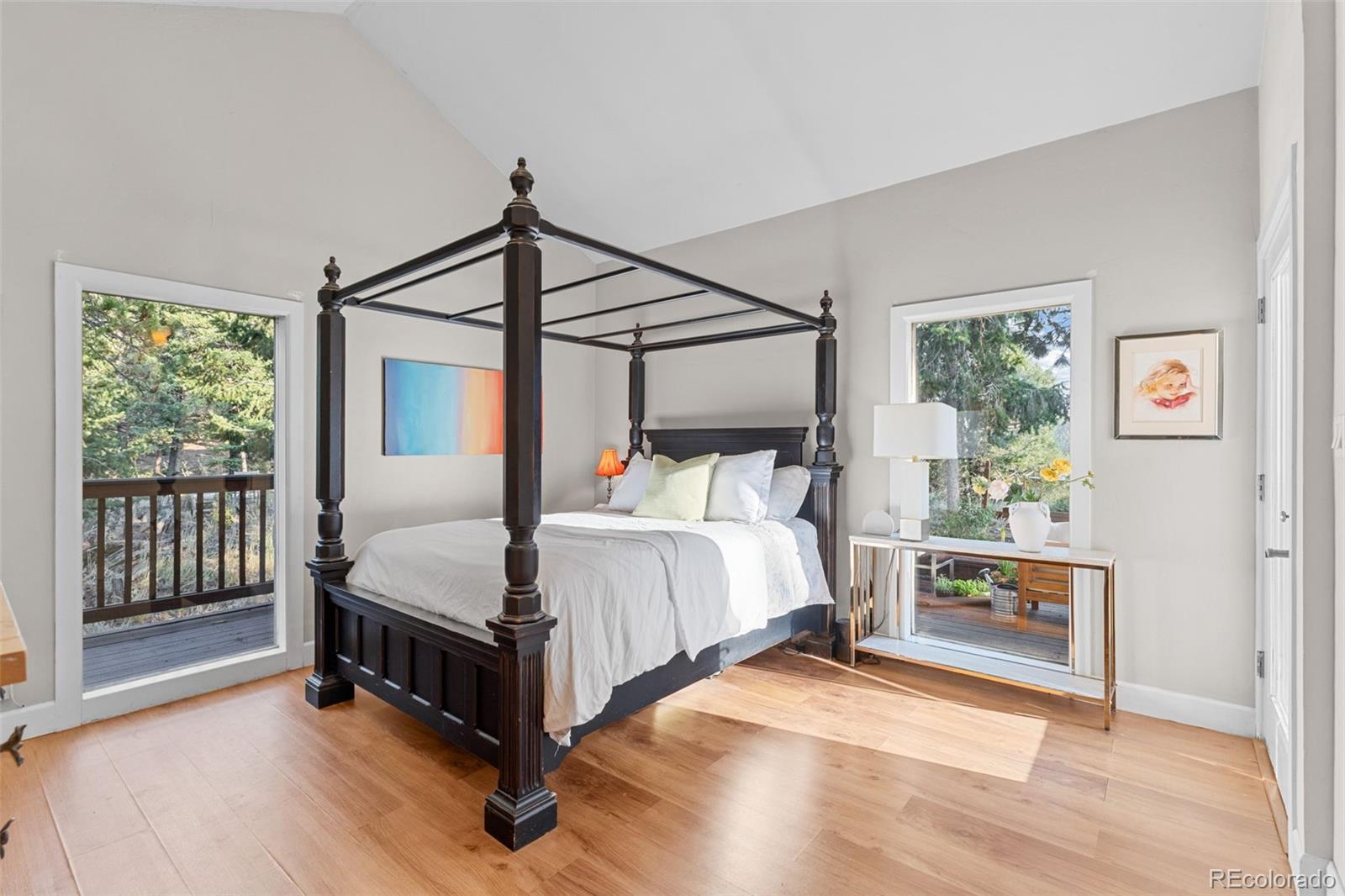 Soda Creek Mountain Retreat with Breathtaking Views! Discover the ultimate Colorado lifestyle in this expansive mountain estate, perfectly set on nearly seven private acres of serene pines with sweeping views of rolling meadows and layered peaks. Arrive down the private driveway and step into a setting of pure tranquility. Inside, a grand foyer welcomes you with soaring ceilings, a graceful curved staircase, and walls of natural light. The main level is ideal for everyday living and entertaining, featuring a spacious kitchen with island seating that seamlessly flows into the dining and family rooms, connected by the double-sided fireplace. Step outside to patios and wraparound decks that capture majestic mountain views in every direction, easily accessed from nearly every room in the house. Upstairs, the luxurious primary suite offers a private terrace, fireplace, spa-like bath, and a generous walk-in closet. Additional bedrooms upstairs and on the main level feature ensuite baths, perfect for family and guests. The walk-out lower level expands your living space with a home theater, wine cellar, bar, bonus rooms, and access to a heated three-car garage with workshop. All of this comes with an unbeatable location—just minutes from I-70. Enjoy quick access to Bergen Park, downtown Evergreen, and Denver, or head west to world-class ski resorts. Private, elegant, and endlessly inspiring, this one-of-a-kind Soda Creek estate offers the perfect blend of luxury and Colorado adventure.