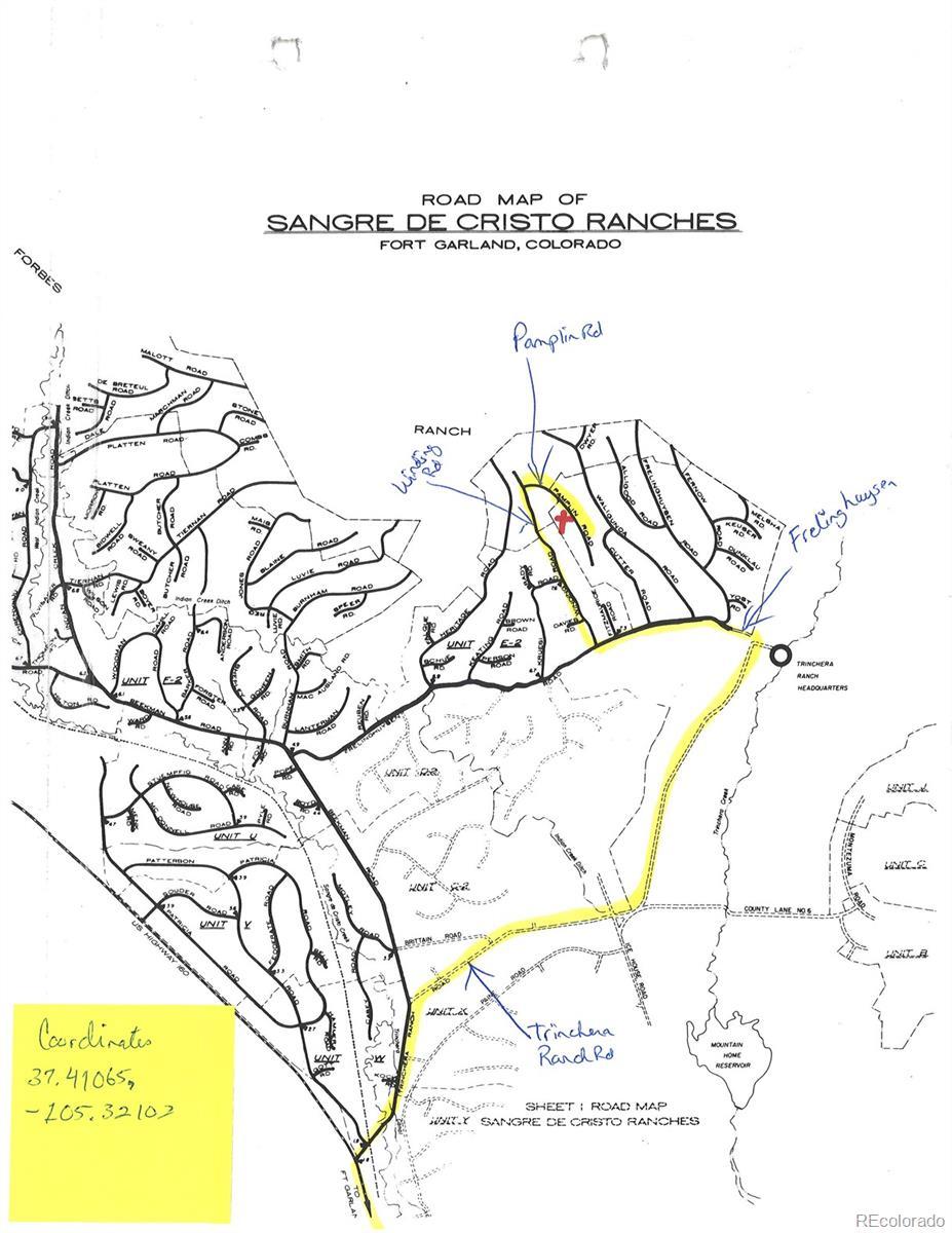 Enjoy 5 acres in the Rocky mountains in a quaint subdivision called Sangre de Cristo Ranches. The platted property is located in the foothills near historic Fort Garland with great museums, restaurants and amenities. The property has year round access on county maintained roads. There are build sites with lots of Pinon , Juniper and sage brush. Fantastic views with so many possibilities.
