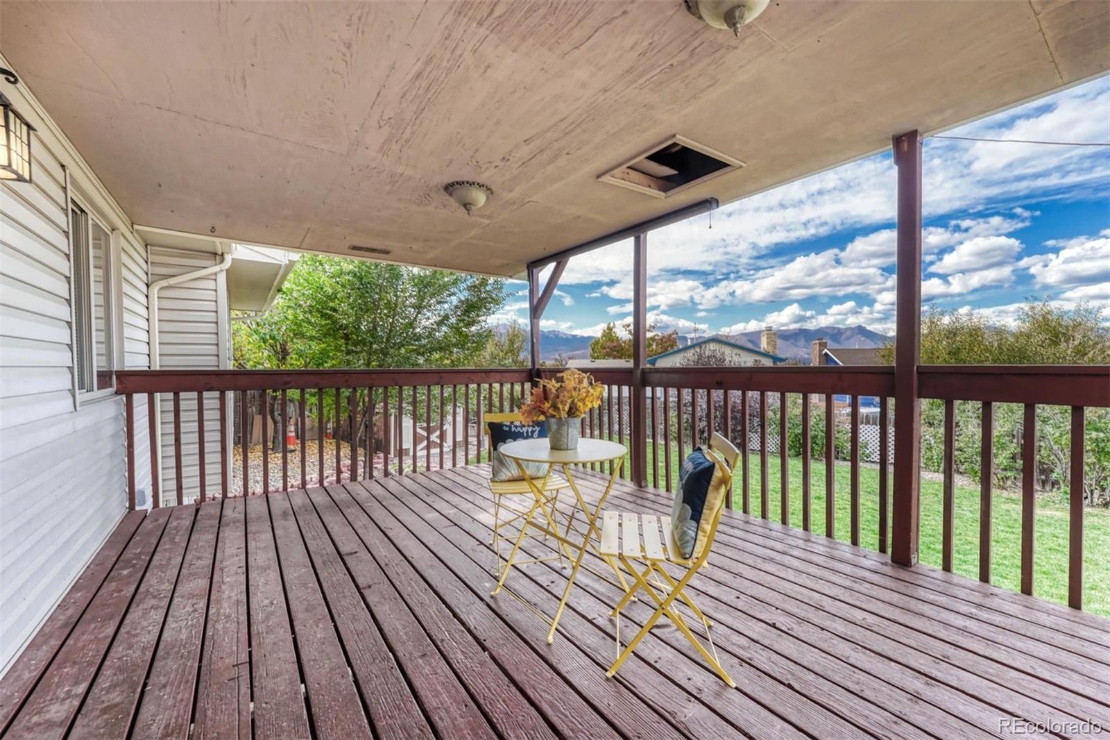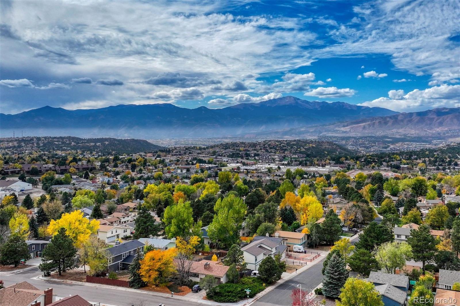 Discover an exceptional Colorado Springs ranch-style home featuring five bedrooms plus a versatile flex room, all positioned to capture stunning Pikes Peak and Front Range mountain views. Ideally located on a quiet curved street in the center of town, this property offers the perfect combination of privacy, scenery, and unmatched convenience to restaurants, shopping, parks, and major commuting routes. Enjoy true main-level living with updated lighting throughout and an open layout that connects the kitchen, dining area, and great room for effortless everyday comfort. The fully finished walk-out basement expands the livable space with a large recreation room, an impressive gas fireplace, and a flexible bonus room—perfect for guest quarters, a home gym, office, or media room. Step outside to a beautifully maintained backyard featuring mature landscaping, lush green grass, and ample room for gardening or outdoor relaxation. Additional property highlights include RV parking, a fully landscaped lot, and classic curb appeal that stands out in the neighborhood. This home captures the best of Colorado Springs living—spectacular mountain views, thoughtful updates, abundant space, and a peaceful setting designed for connection, comfort, and convenience.