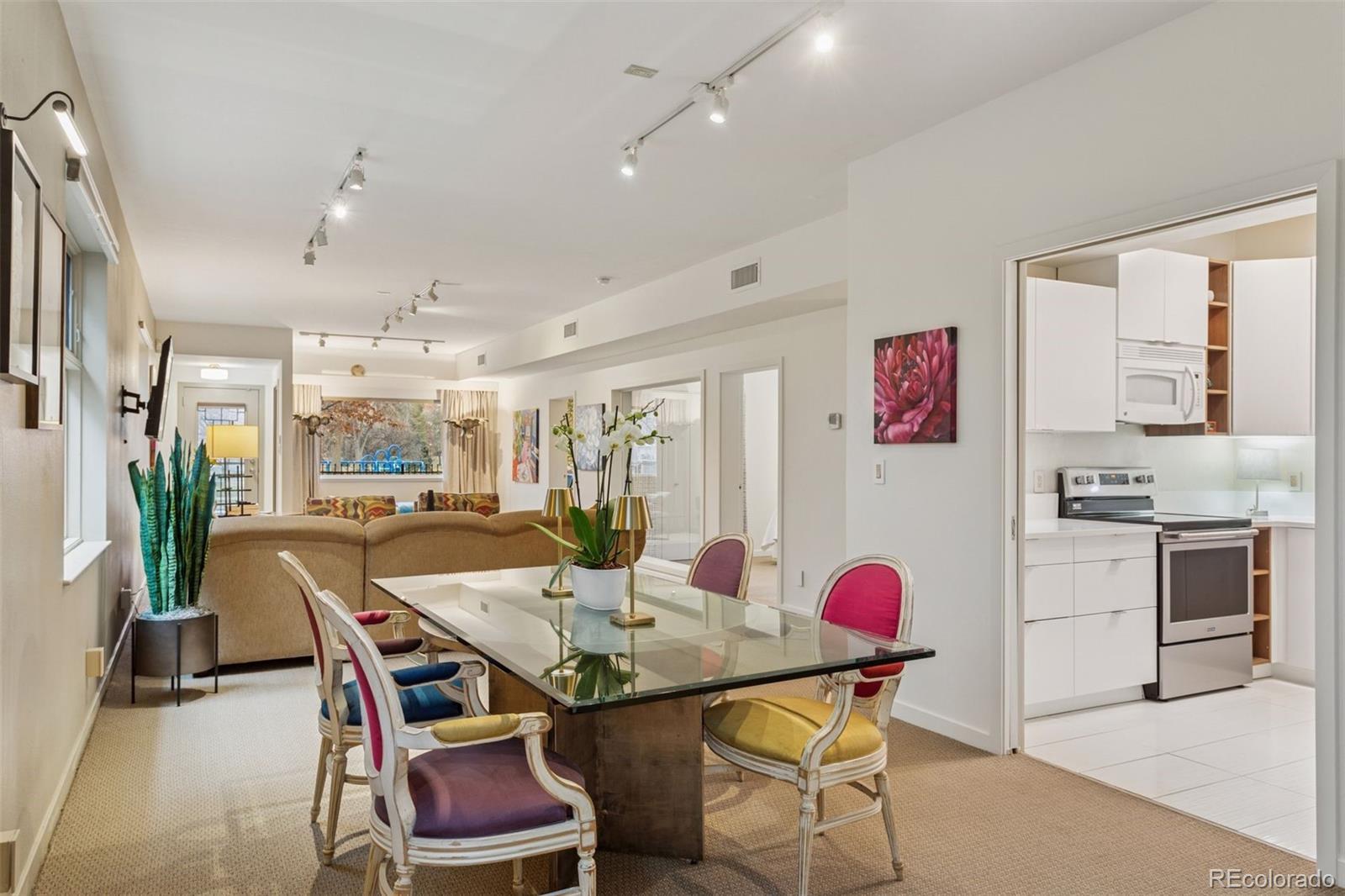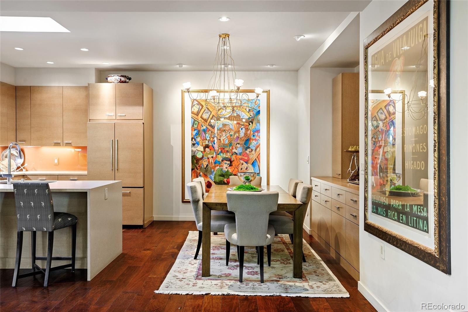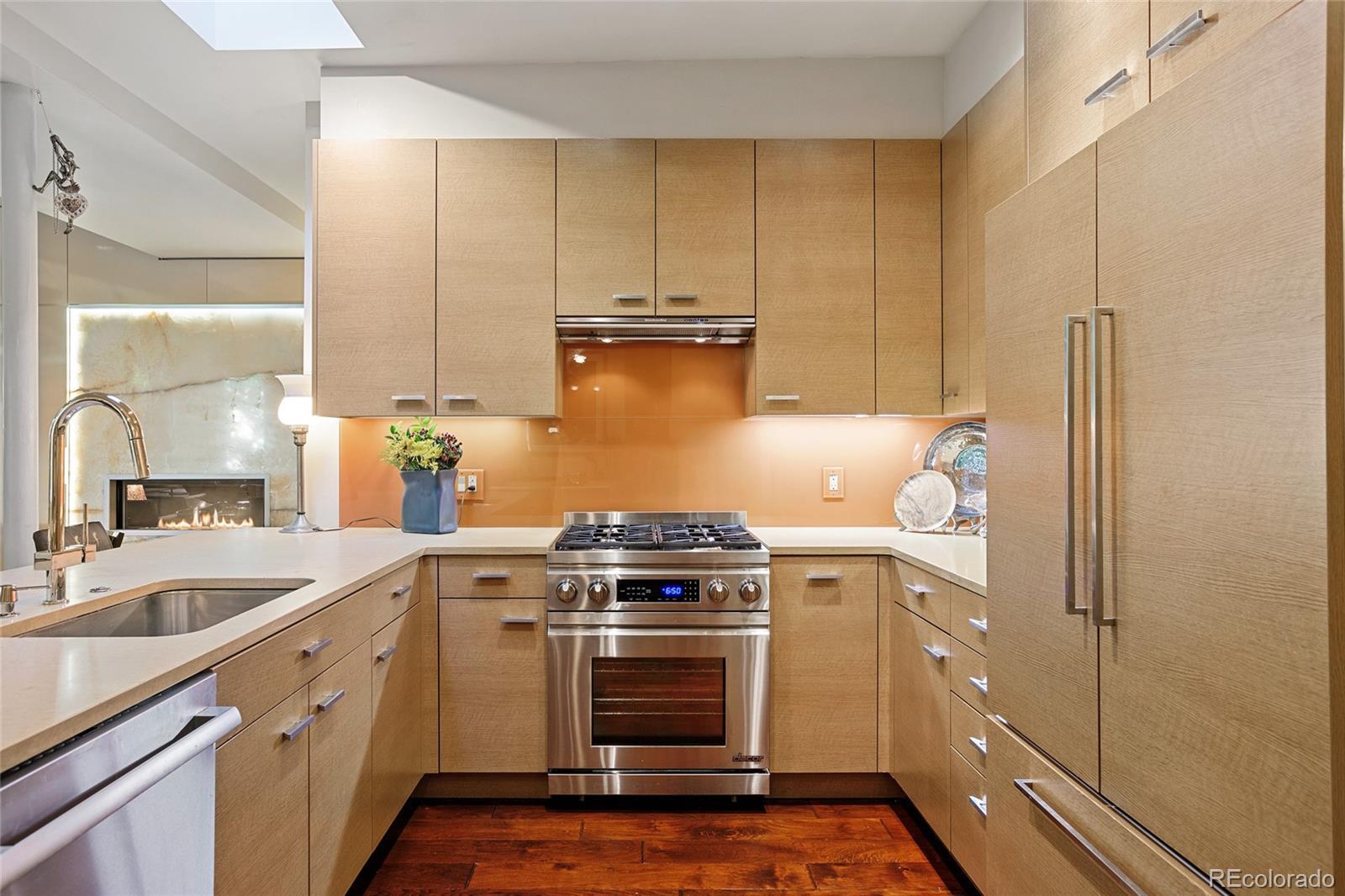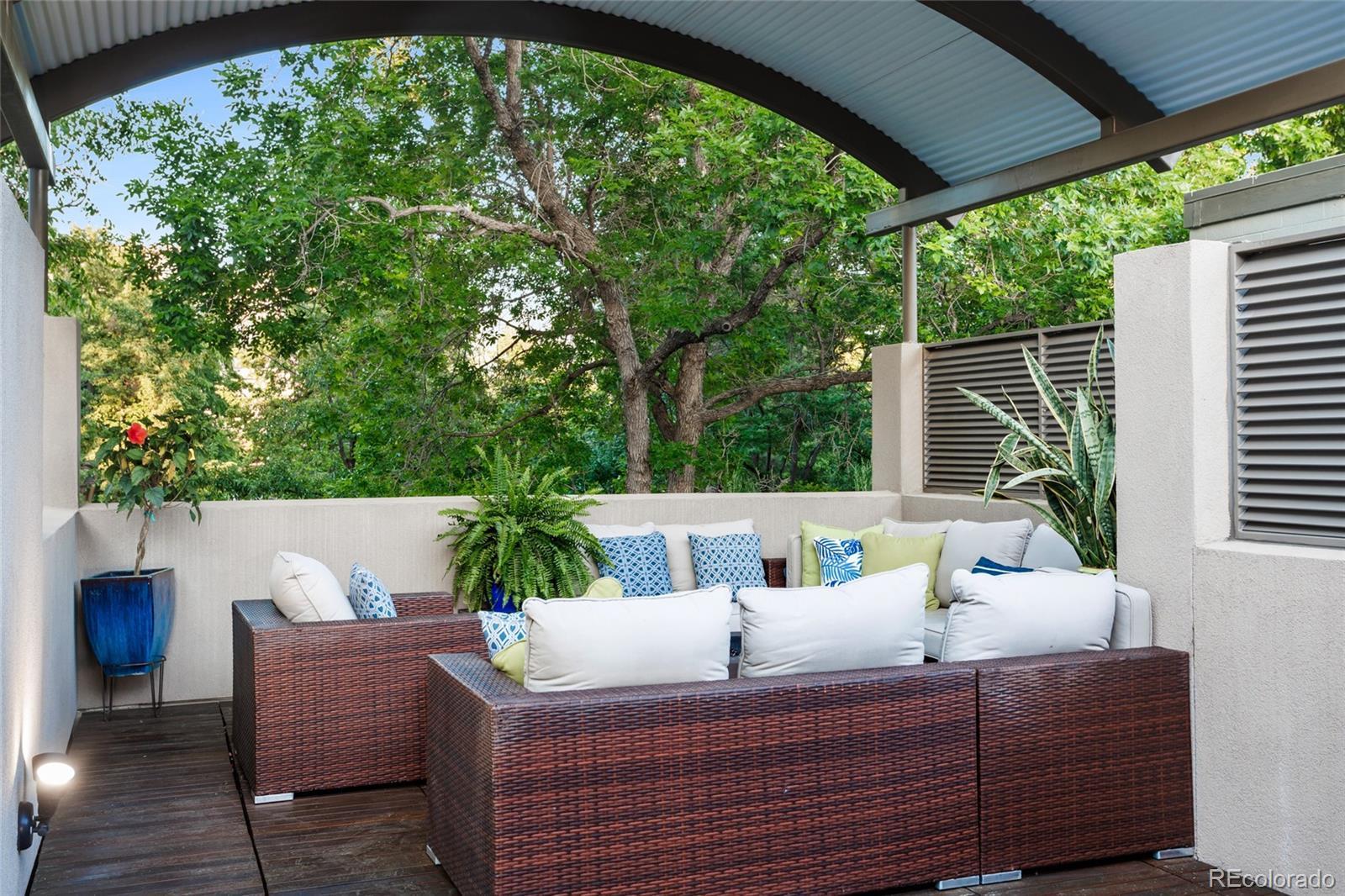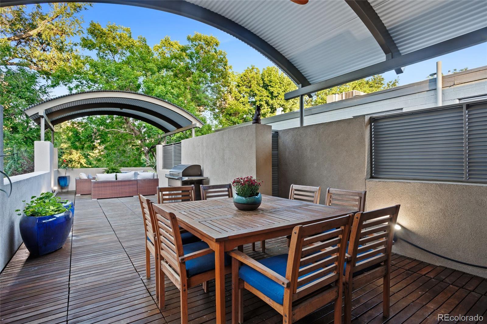 A rare blend of mid-century sophistication and modern versatility awaits at 865 Delaware, where striking design meets endless possibilities. This exceptional residence offers two fully self-contained living spaces, giving you the flexibility to create a luxurious single home, a multigenerational retreat, or a high-performing income property. The lower-level 2-bedroom suite features its own entrance, kitchen, living area, and baths, making it ideal for guests, rental opportunities, or a turnkey Airbnb. The main residence spans behind and above, unveiling an open-concept living space anchored by an illuminated onyx fireplace. High-end finishes abound, including Caesarstone countertops, Dacor appliances, Brookhaven cabinetry, and a cleverly integrated cocktail station that tucks away for seamless entertaining. A floating walnut staircase leads to a dramatic 22-foot-high open office and a lavish primary suite complete with steam shower, soaking tub, walk-in closet, and in-unit laundry. For those with vision, G-RX-5 zoning allows the potential to add up to three more stories—an extraordinary opportunity to elevate both lifestyle and investment value. Step outside to a private 1,250 sq ft rooftop deck that feels like a resort in the sky. With a 15-foot arched overhang, gas fireplace, dining and lounge areas, and tree-canopy views of Sunken Gardens Park, it’s an unmatched urban sanctuary just minutes from downtowns' great restaurants, Ball Arena, Coors Field, and what may soon be the new Broncos stadium. 865 Delaware isn’t just a residence—it’s a statement of design, luxury, and limitless potential.