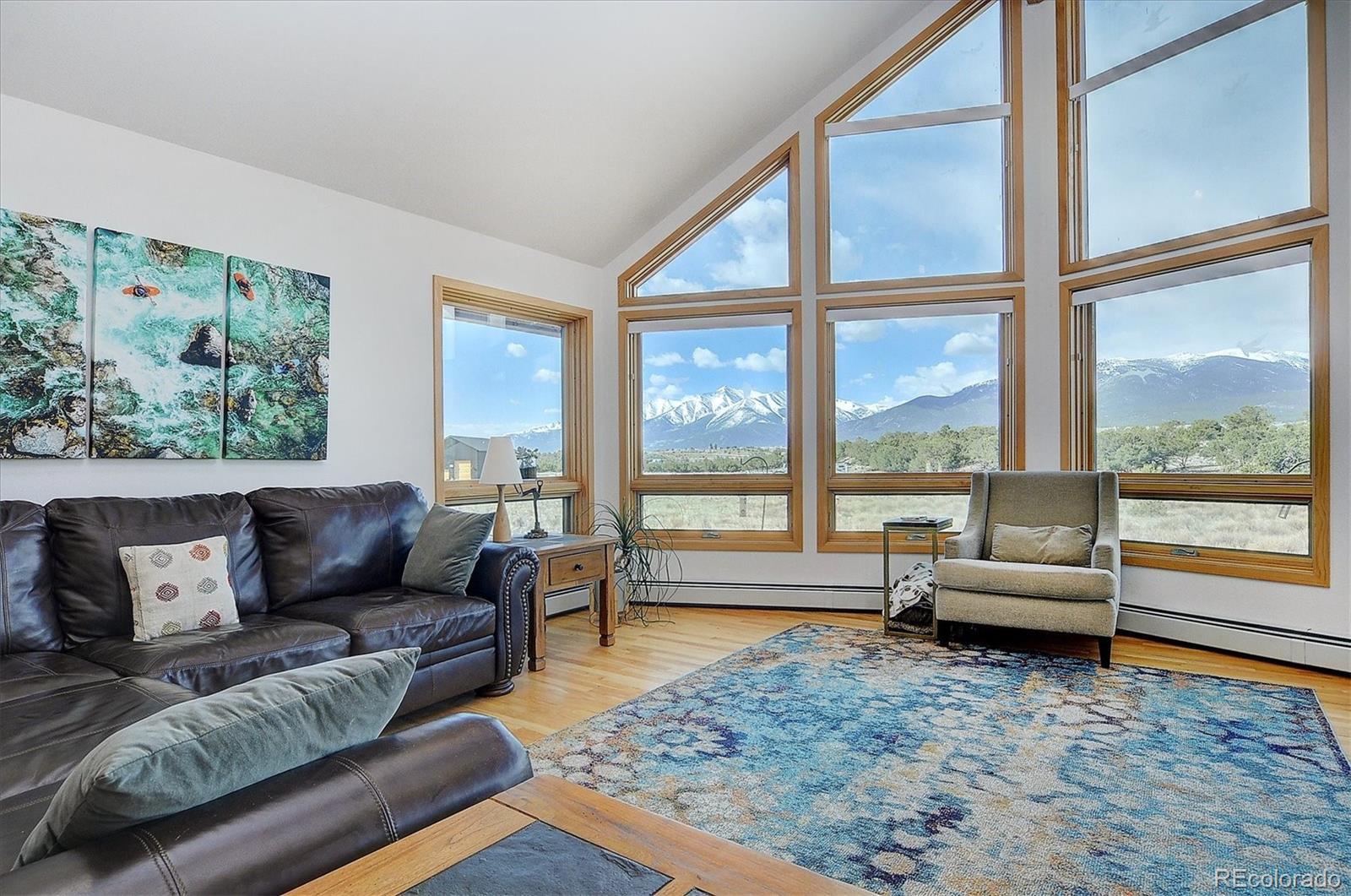 Welcome to your outdoor enthusiast's paradise! This remarkable home sits on 5 acres of land with no HOA, offering unparalleled serenity and solitude, yet only 4.5 miles to the amenities of Buena Vista. Bordering BLM Land, you'll enjoy breathtaking views of the surrounding mountains and pristine natural landscapes right from your doorstep. Located in the heart of the 4-mile recreation area, you'll have direct access to trails, making it easy to explore the rugged terrain and scenic beauty of the area. For water enthusiasts, this property boasts a prime location along the Fractions section of the river, providing opportunities for fishing, kayaking, and rafting adventures. Situated directly below the Numbers section and above the BV whitewater park, you'll have access to some of the best whitewater in the country. The house itself boasts hardwood floors, high ceilings, and incredible scenery no matter the window. Spacious rooms throughout, including an oversized and insulated garage, leave ample space to make this unique home your own. A fenced dog run is also attached to the garage to keep your furry friends close if needed. Whether you're an avid outdoor enthusiast or simply seeking a tranquil retreat surrounded by nature, this home offers the perfect blend of adventure and relaxation. Don't miss your chance to own this outdoor recreation dream location and experience the beauty and serenity of Colorado living at its finest!