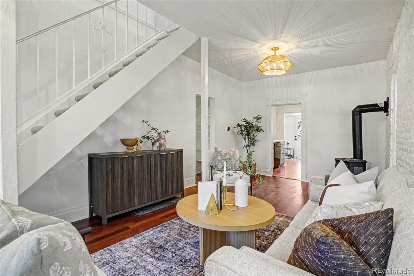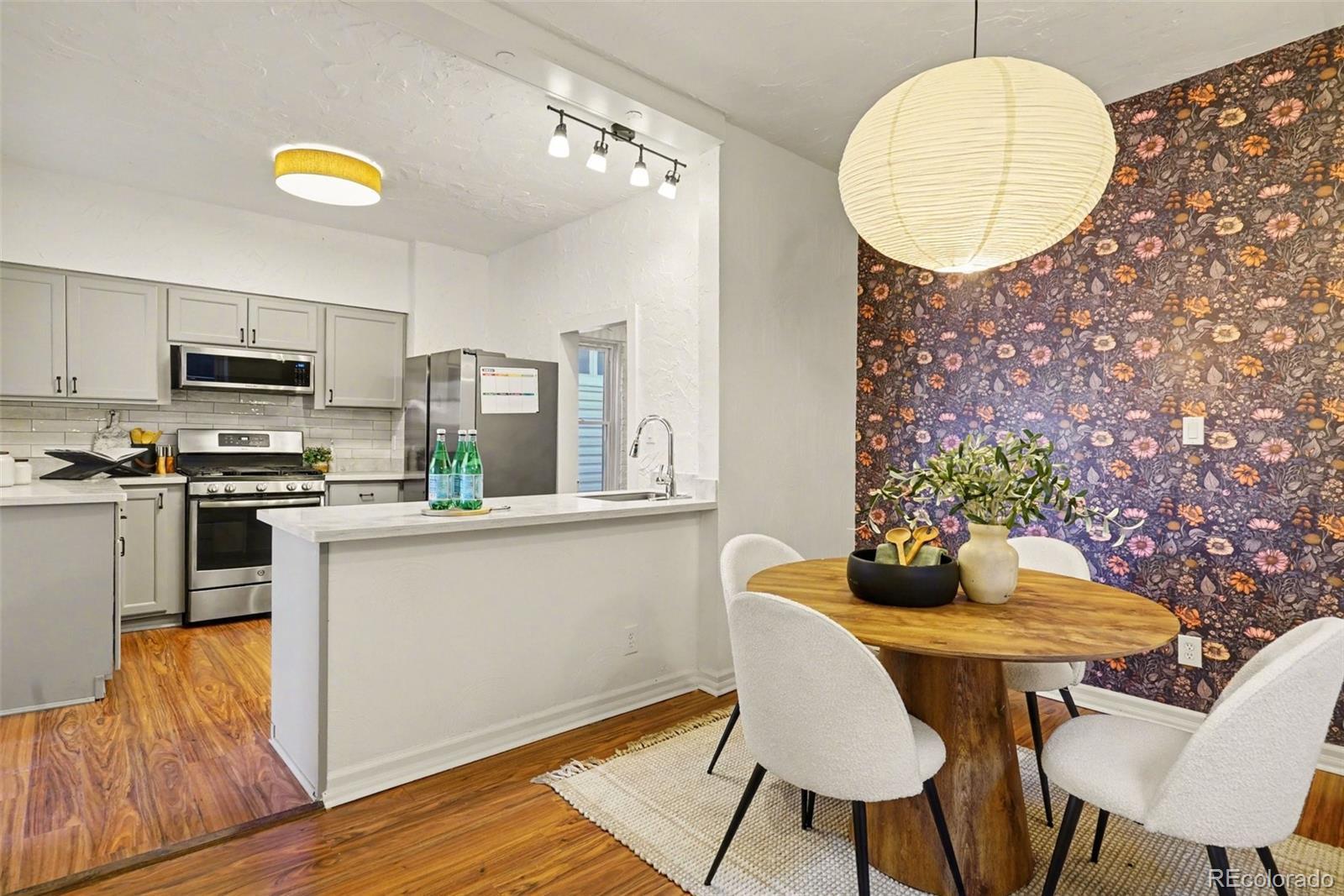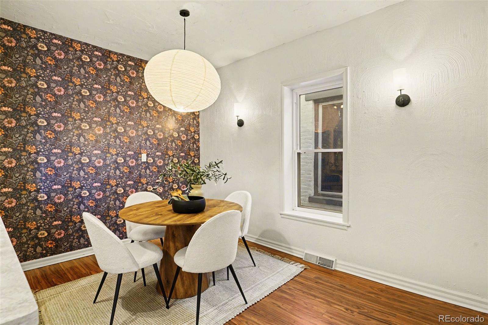 Discover this newly remodeled, character-rich home now reimagined with a chic, well-traveled vibe by a professional interior designer. Tucked just one block off vibrant Pearl Street in Denver’s sought-after Platte Park neighborhood, this location delivers the best of city living—stroll to boutiques, cafés, and restaurants; walk or bike to Wash Park and Whole Foods; and enjoy quick access to South Broadway’s lively scene. Inside, curated lighting, wallpaper accents, statement walls, and contemporary brass and black finishes elevate every space, transforming the home into a conversation piece. A classic entry foyer welcomes you into a bright main living area that flows seamlessly into the beautifully updated kitchen featuring gray cabinetry, quartz countertops, subway tile backsplash, and stainless steel appliances. The open dining room is anchored by a handcrafted paper orb light, offering diffused illumination and understated elegance—perfect for both intimate dinners and lively gatherings. The main level includes a comfortable bedroom, a full bath with timeless appeal, and a practical laundry/mudroom with direct access to a private yard with plenty of space for gardening and enjoying, plus direct access to your 2 convenient off-street parking spaces. Upstairs, the primary bedroom is paired with a versatile flex space—ideal for a home office or reading nook—plus an additional bath that blends style and function. With a stylishly curated interior, upgraded windows, and a newer roof with solar panels (2023), this home blends thoughtful design, modern updates, and an unbeatable location. Chic, charming, and move-in ready—this Platte Park gem stands out.