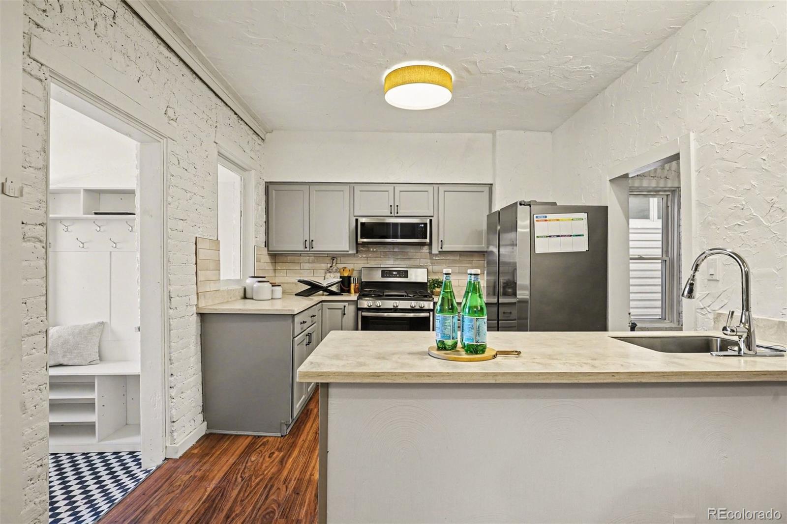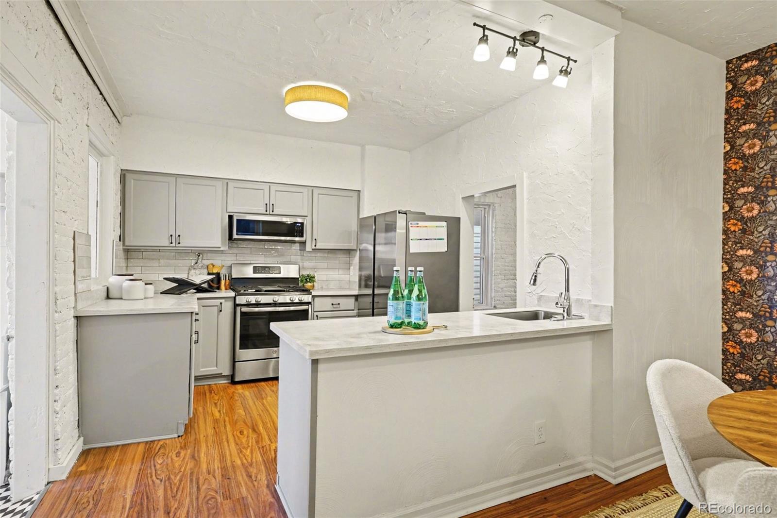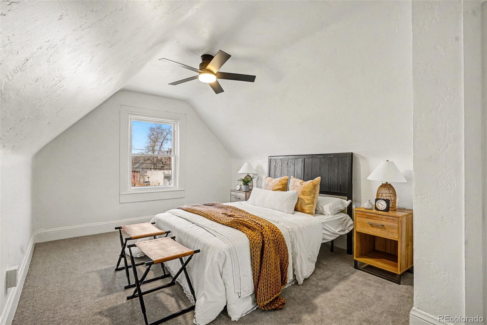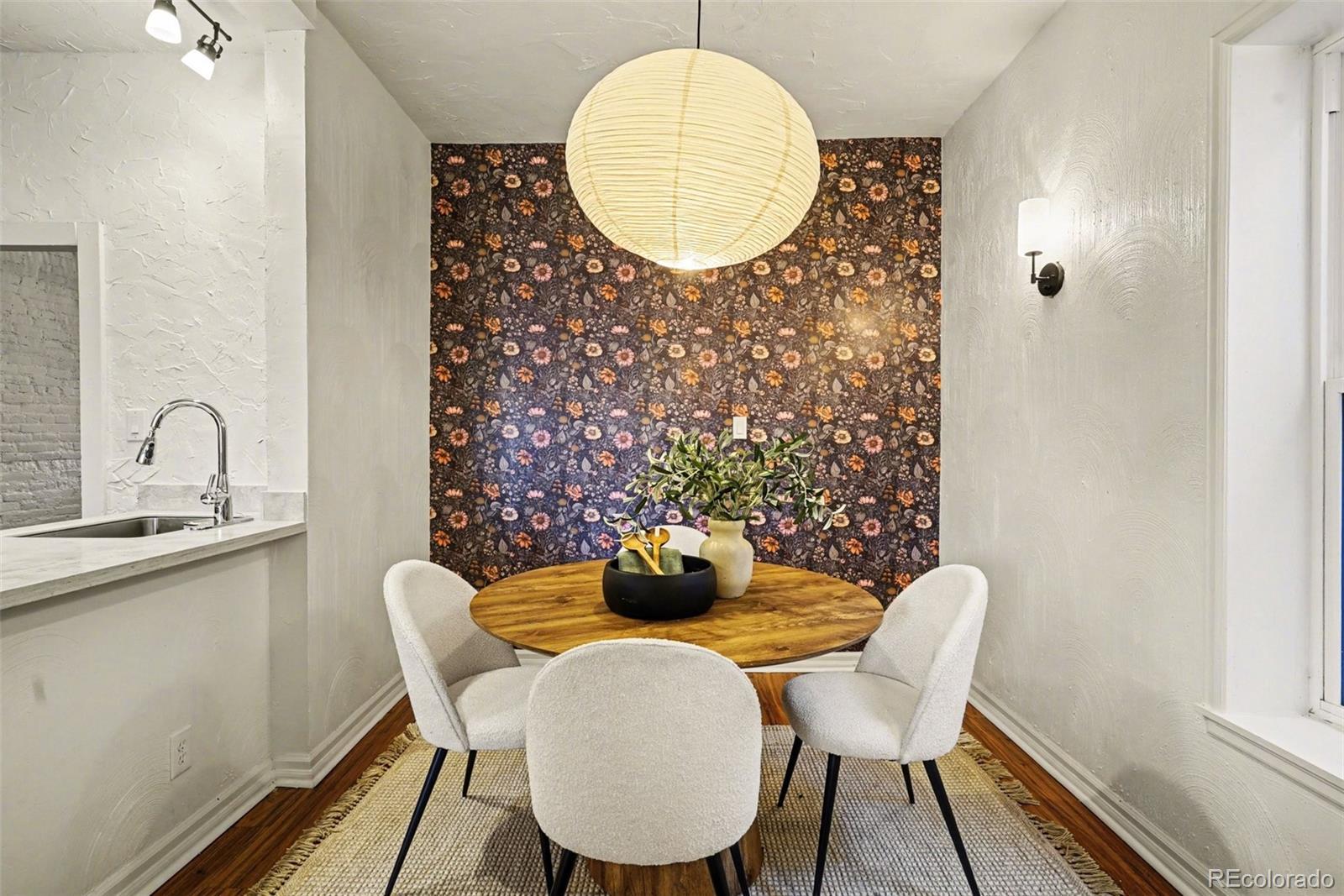 Discover this newly remodeled, character-rich home now reimagined with a chic, well-traveled vibe by a professional interior designer. Tucked just one block off vibrant Pearl Street in Denver’s sought-after Platte Park neighborhood, this location delivers the best of city living—stroll to boutiques, cafés, and restaurants; walk or bike to Wash Park and Whole Foods; and enjoy quick access to South Broadway’s lively scene. Inside, curated lighting, wallpaper accents, statement walls, and contemporary brass and black finishes elevate every space, transforming the home into a conversation piece. A classic entry foyer welcomes you into a bright main living area that flows seamlessly into the beautifully updated kitchen featuring gray cabinetry, quartz countertops, subway tile backsplash, and stainless steel appliances. The open dining room is anchored by a handcrafted paper orb light, offering diffused illumination and understated elegance—perfect for both intimate dinners and lively gatherings. The main level includes a comfortable bedroom, a full bath with timeless appeal, and a practical laundry/mudroom with direct access to a private yard with plenty of space for gardening and enjoying, plus direct access to your 2 convenient off-street parking spaces. Upstairs, the primary bedroom is paired with a versatile flex space—ideal for a home office or reading nook—plus an additional bath that blends style and function. With a stylishly curated interior, upgraded windows, and a newer roof with solar panels (2023), this home blends thoughtful design, modern updates, and an unbeatable location. Chic, charming, and move-in ready—this Platte Park gem stands out.