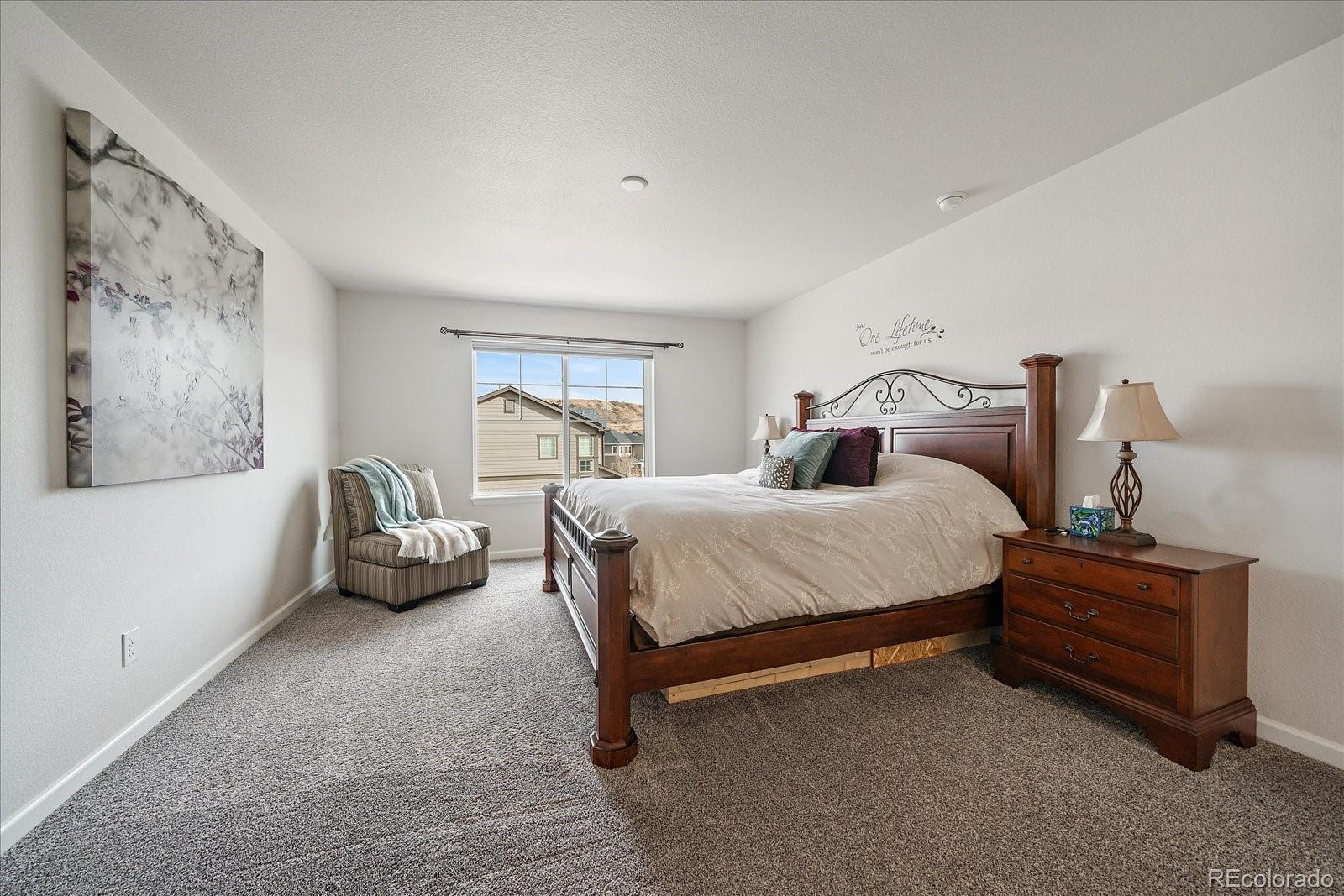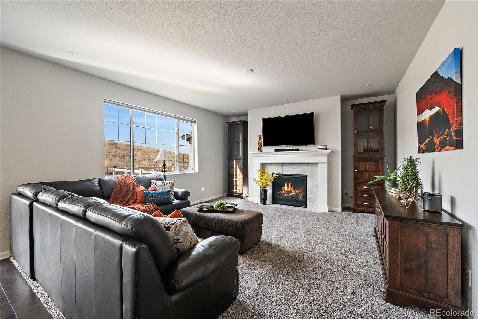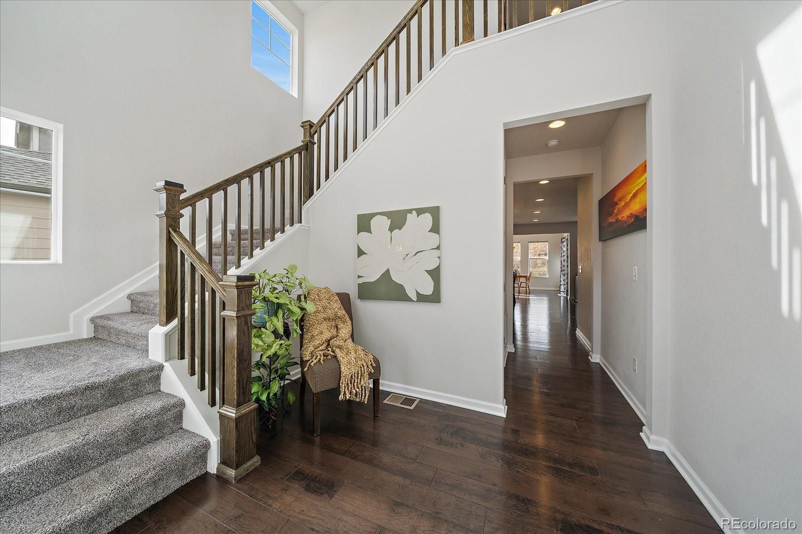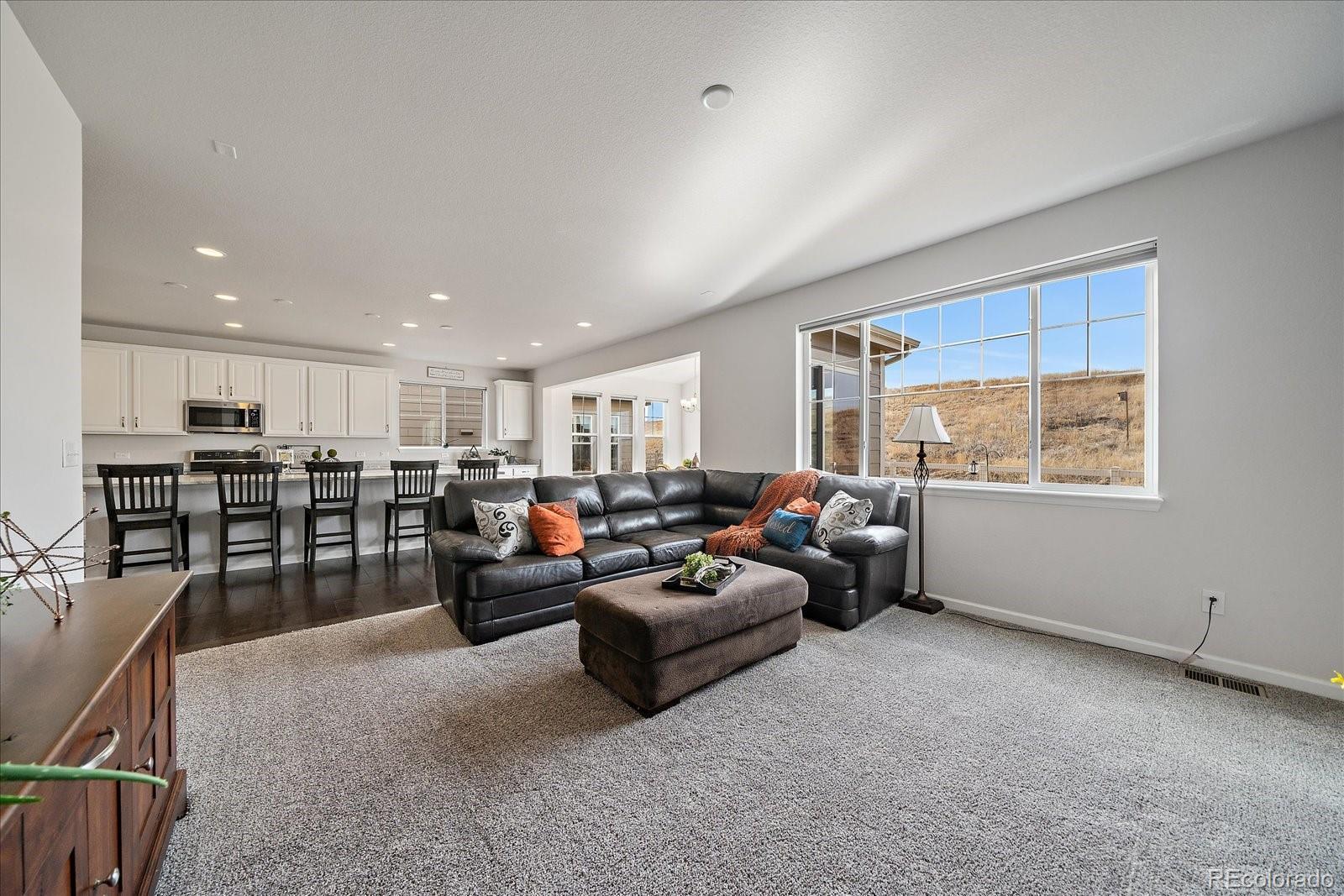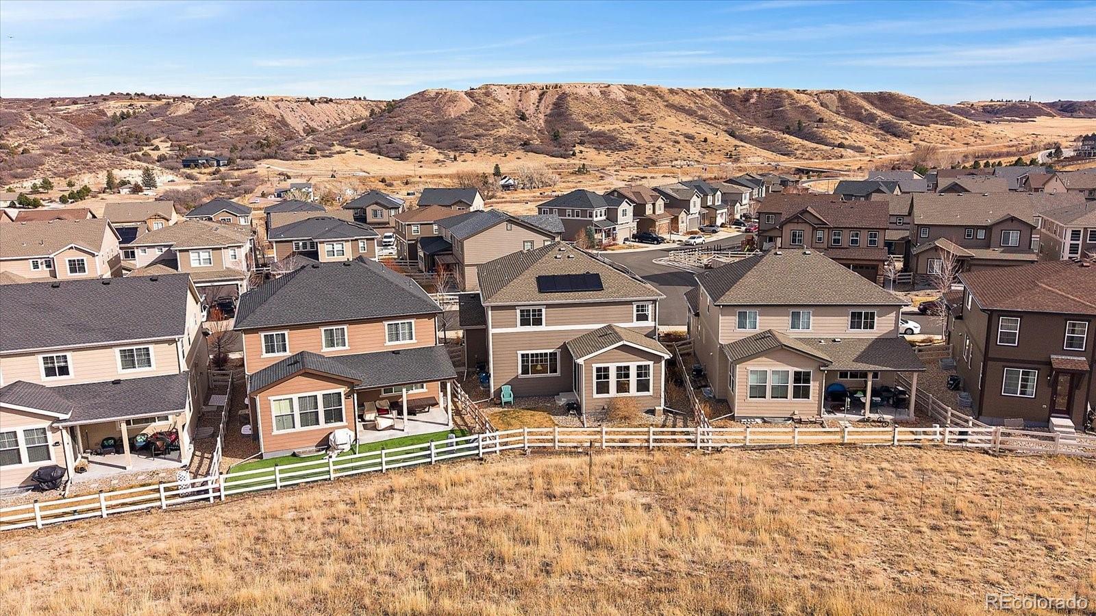 Welcome Home! I am excited to share the details of this beautiful property with you. This 4-bedroom, 3-bathroom home is situated on a wonderful lot backing to open space, offering views of the rolling hills and bluffs of Crystal Valley. The upper level provides stunning views of the Colorado Rockies, Rhyolite Park, and The Rock. The main level features a spacious kitchen with a massive 14' x 4' center island, ample cabinet space, and a large walk-in pantry. Adjacent to the kitchen is a light and bright dining room, while the family room includes a gas log fireplace, perfect for entertaining. This level also includes a 4' x 13' mudroom, a half bath, and a 2.5-car garage. On the upper level, you will find a spacious Primary suite with a 5-piece ensuite bath and a walk-in closet. The hallway leads to an 8' x 10' laundry room equipped with an extra-large utility sink, perfect for bathing those fur babies. There are three additional bedrooms, all featuring walk-in closets and two offering mountain views, which share a full bathroom with a double vanity. Additionally, the home comes equipped with a new water heater, a reverse osmosis system with a kitchen dispenser, and a water softener system. All bedrooms are wired for media and internet. In addition to everything within the Crystal Valley community, you can enjoy all that Castle Rock has to offer, such as the Douglas County Fairgrounds and Events Center, Downtown Festival Park, local farmers markets, restaurants, and shopping at The Barn & Emporium and so much more.