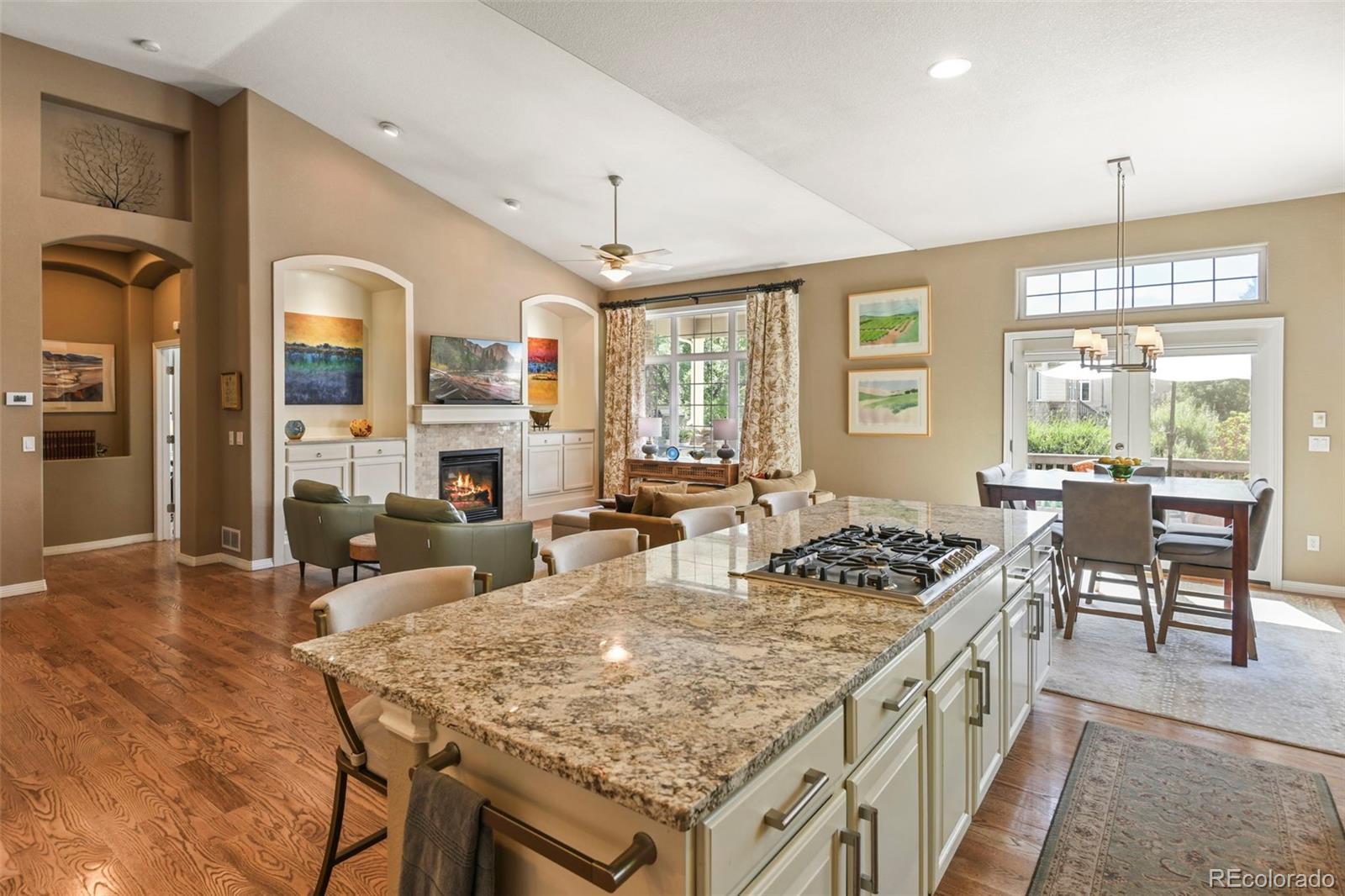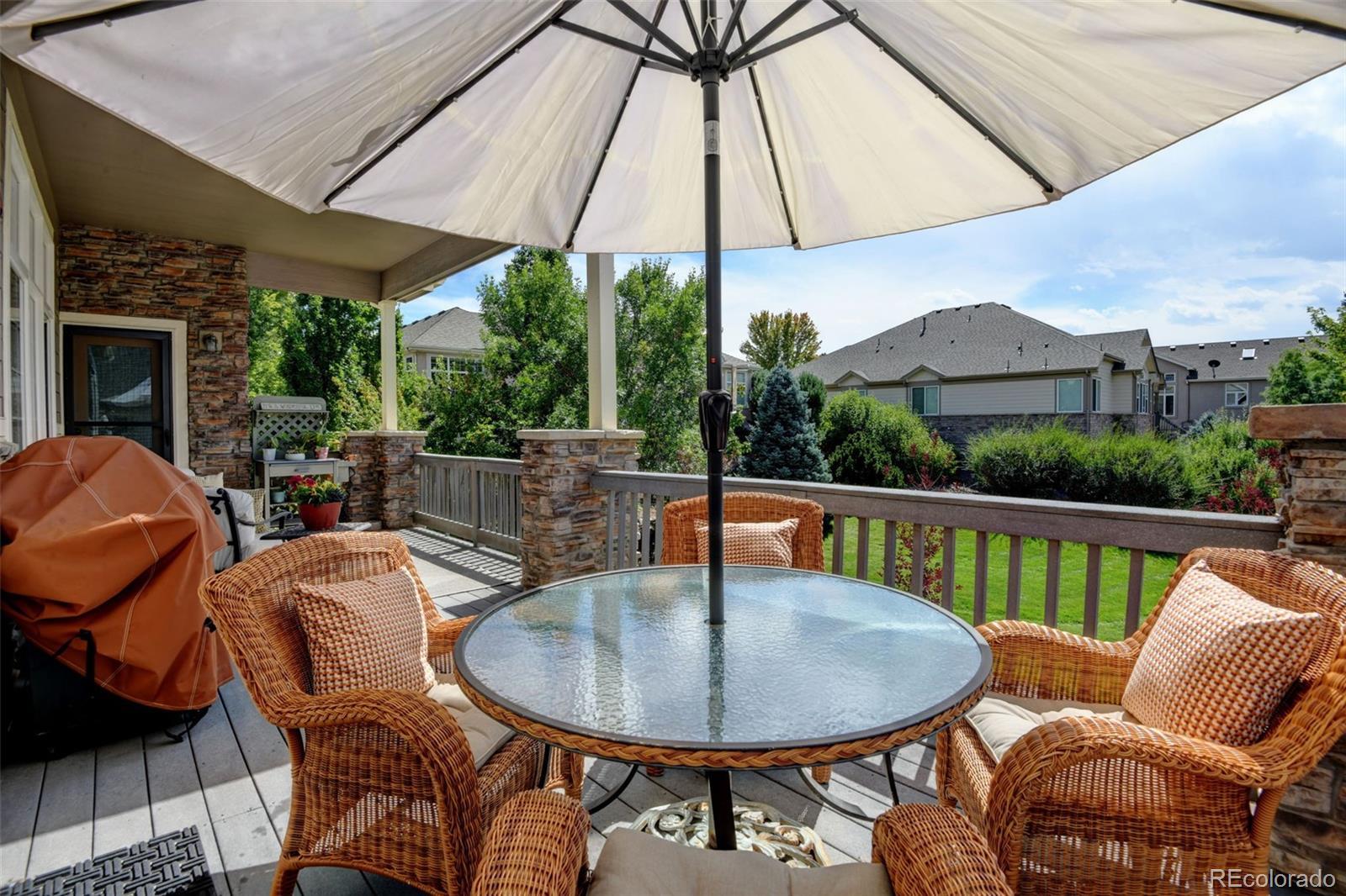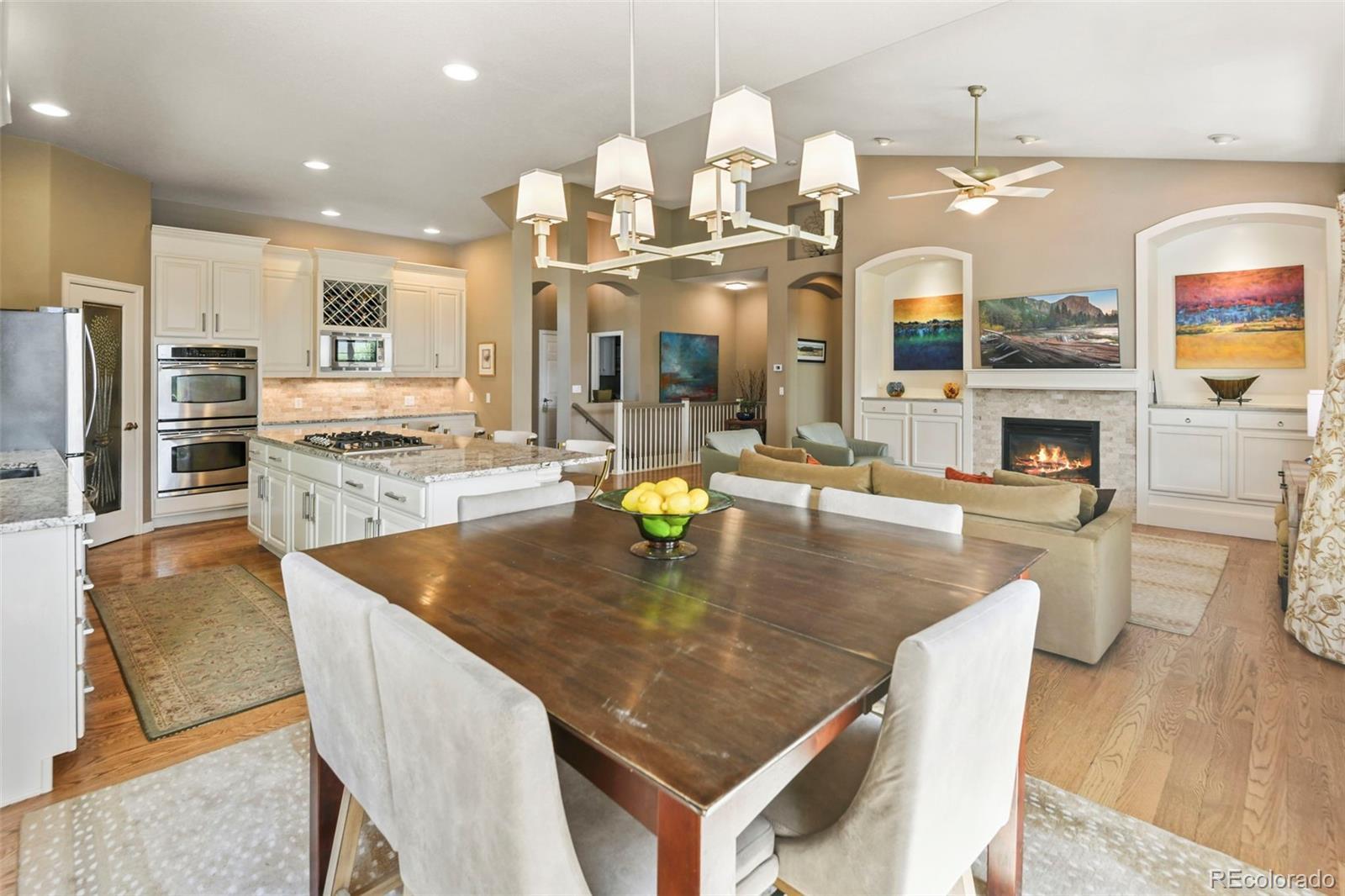 Immaculate ranch-style home in the highly coveted Legacy Ridge subdivision. Thoughtfully remodeled with tasteful updates throughout, this residence blends timeless single-level living with modern elegance, all bathed in abundant natural light. Warm hardwood flooring carries throughout the main level, opening into the inviting family room with a cozy gas fireplace, built-in shelving, and plenty of room for gatherings. The well-appointed kitchen flows into the living and dining areas, while a large island provides ample seating and prep space—perfect for hosting. The generous primary suite features a luxurious en-suite bath, a large walk-in closet with custom built-in organization, and private access to the upper-level deck. The fully finished walk-out basement offers a private secondary living space complete with a convenient wet bar—ideal for guests, multi-generational living, or game-day fun. A unique flex space adds versatility, ideal for a studio, craft room, or reading nook. Nestled on a quiet cul-de-sac, the property offers ample guest parking and a versatile third-car tandem bay, perfectly suited for a workshop or hobby space. The backyard invites you to relax or entertain with both upper and lower decks and mature landscaping. As part of the sought-after Legacy Ridge golf course community, you’ll enjoy miles of walking trails, parks, a sparkling swimming pool, and a beautiful clubhouse. All this, with easy access to Denver, Boulder, shopping, dining, and entertainment.