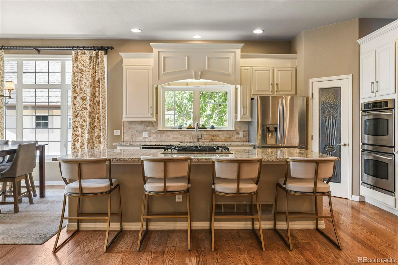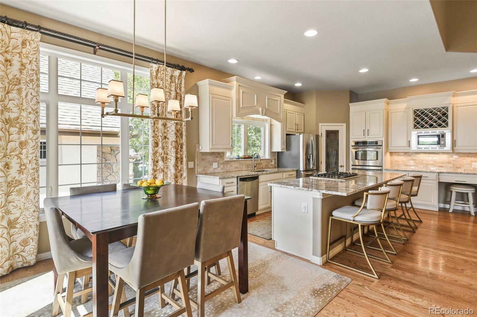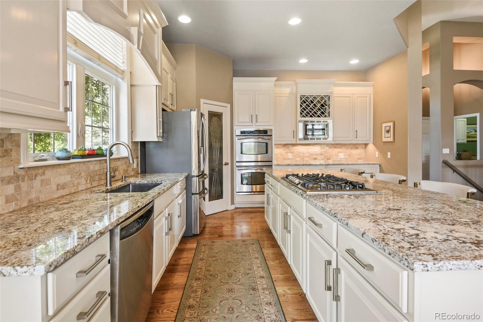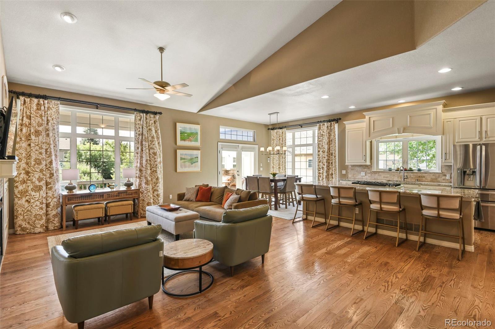 Immaculate ranch-style home in the highly coveted Legacy Ridge subdivision. Thoughtfully remodeled with tasteful updates throughout, this residence blends timeless single-level living with modern elegance, all bathed in abundant natural light. Warm hardwood flooring carries throughout the main level, opening into the inviting family room with a cozy gas fireplace, built-in shelving, and plenty of room for gatherings. The well-appointed kitchen flows into the living and dining areas, while a large island provides ample seating and prep space—perfect for hosting. The generous primary suite features a luxurious en-suite bath, a large walk-in closet with custom built-in organization, and private access to the upper-level deck. The fully finished walk-out basement offers a private secondary living space complete with a convenient wet bar—ideal for guests, multi-generational living, or game-day fun. A unique flex space adds versatility, ideal for a studio, craft room, or reading nook. Nestled on a quiet cul-de-sac, the property offers ample guest parking and a versatile third-car tandem bay, perfectly suited for a workshop or hobby space. The backyard invites you to relax or entertain with both upper and lower decks and mature landscaping. As part of the sought-after Legacy Ridge golf course community, you’ll enjoy miles of walking trails, parks, a sparkling swimming pool, and a beautiful clubhouse. All this, with easy access to Denver, Boulder, shopping, dining, and entertainment.