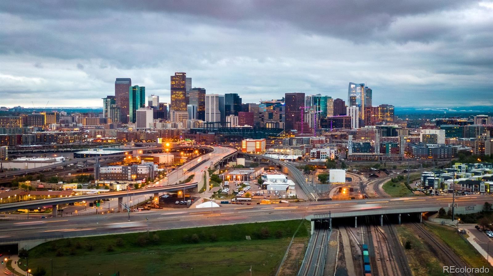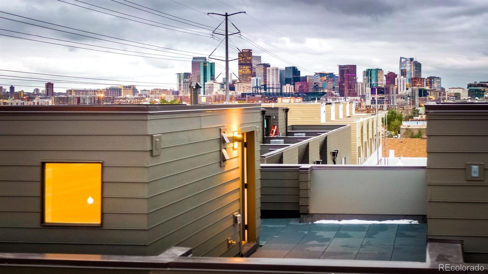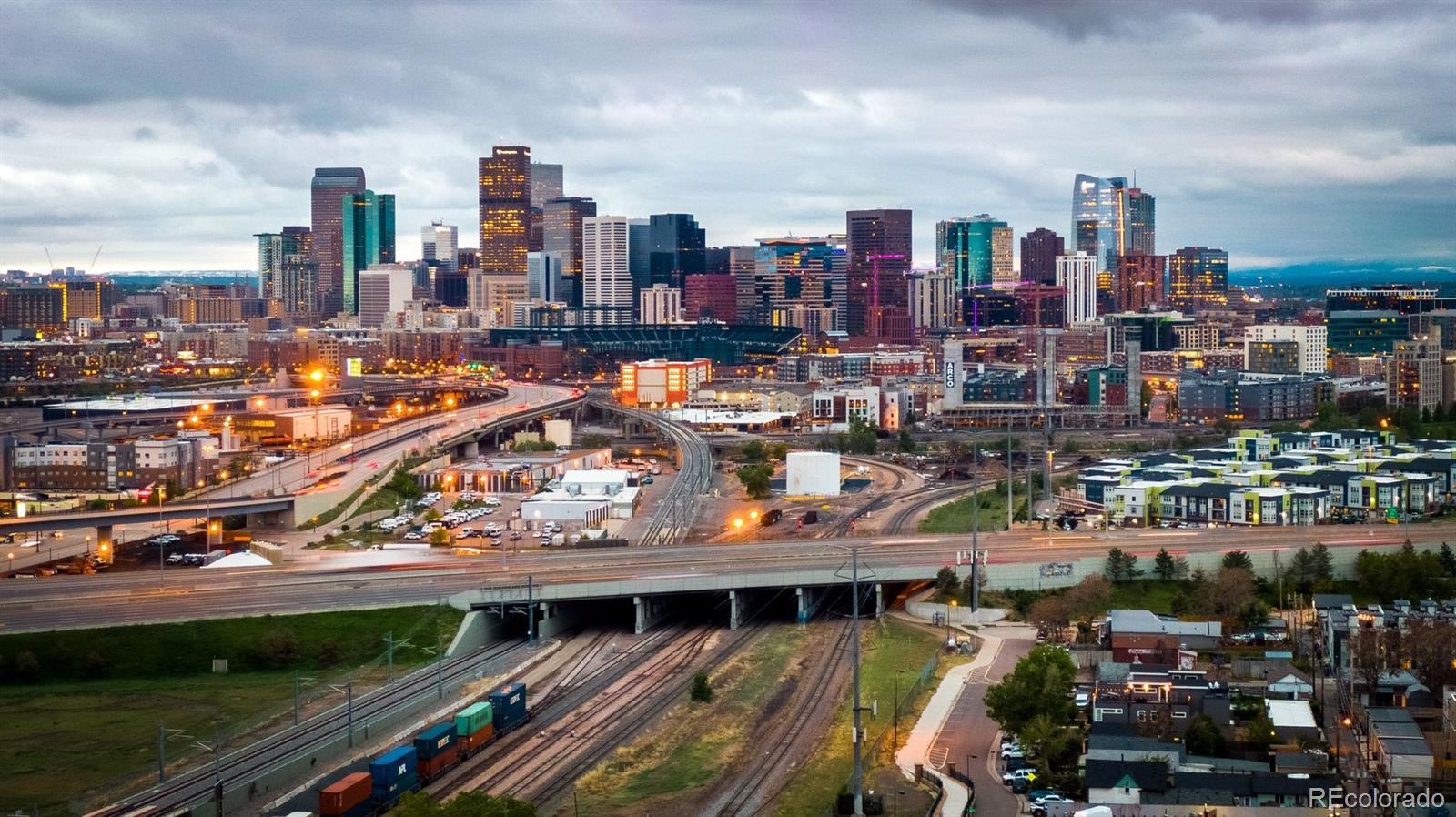 Experience modernist living at its finest in this freshly painted townhome located in the thriving transit-oriented development of Railhouse in Sunnyside. Boasting a premium location with unbeatable rooftop views of downtown Denver and the majestic mountains, this 4-story unit offers luxury living at its best. Upon entering, you'll be greeted by a spacious foyer with a convenient closet and access to an attached 2-car garage - a rare luxury in the city. The second floor showcases an open-concept layout featuring a sleek kitchen with quartz countertops, stainless steel appliances, and soft close cabinetry. The kitchen seamlessly flows into the dining and living areas, all adorned with hardwood flooring and oversized windows that flood the space with natural light. A cozy electric fireplace adds warmth, while a tucked-away powder room is perfect for guests. The bedroom level houses two primary suites, each with their own quartz and tiled baths and ample closet space. A stackable laundry unit is conveniently located next to the bedrooms. On the upper level, step out through an atrium door onto the rooftop deck to enjoy breathtaking views of the city skyline and mountains - perfect for entertaining guests or unwinding with a glass of wine. Located just a block away from the 41st and Fox Street light rail station, this home offers easy access to D.I.A. and is situated near the Platte River and Cherry Creek paths, ideal for outdoor enthusiasts. Within walking distance you'll find a variety of yoga studios and restaurants, including popular spots like Waldschanke Ciders & Coffee, Huckleberry Roasters Coffee, and Diebolt Brewing Company. Experience urban living at its best in this prime Sunnyside location, with the community sharing the cost of snow removal and exterior maintenance for added convenience. Don't miss out on this exceptional opportunity to own a piece of urban paradise!