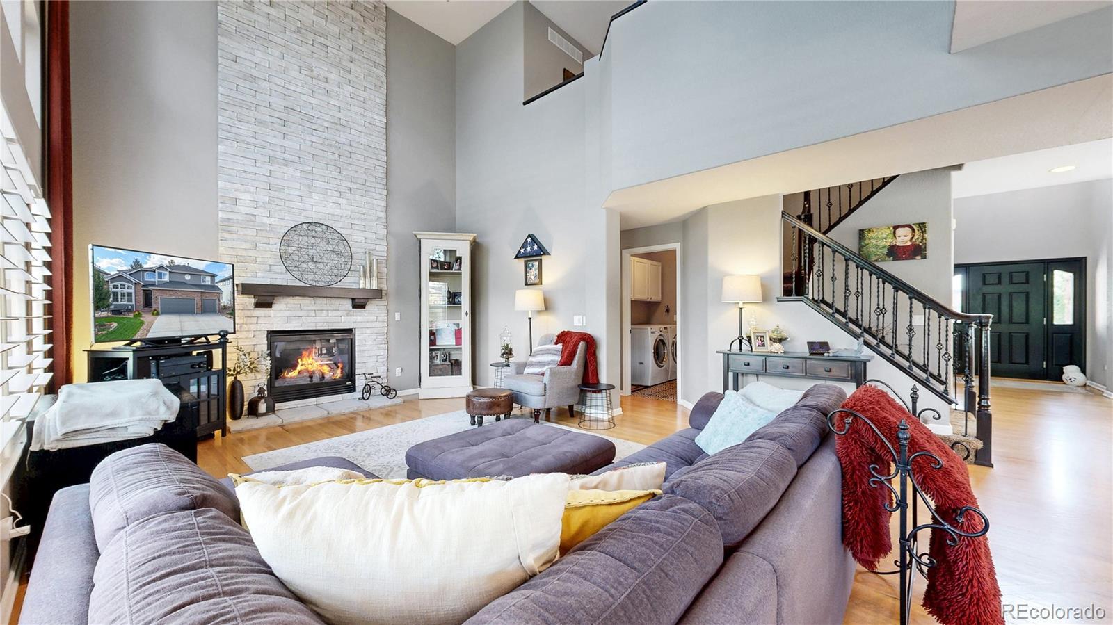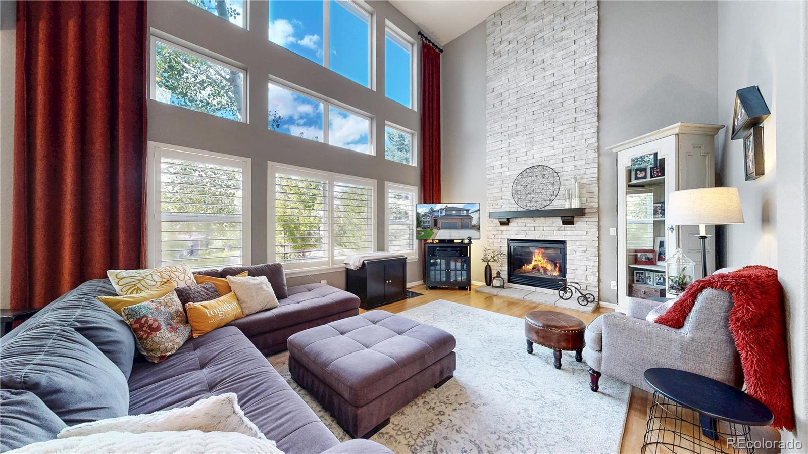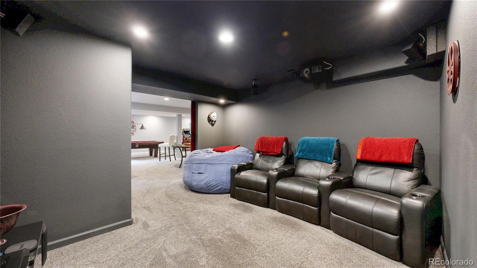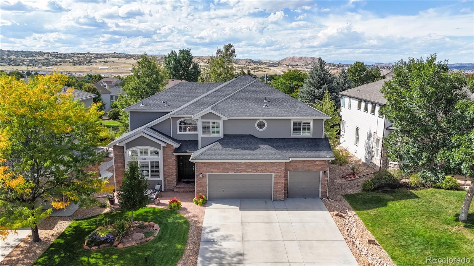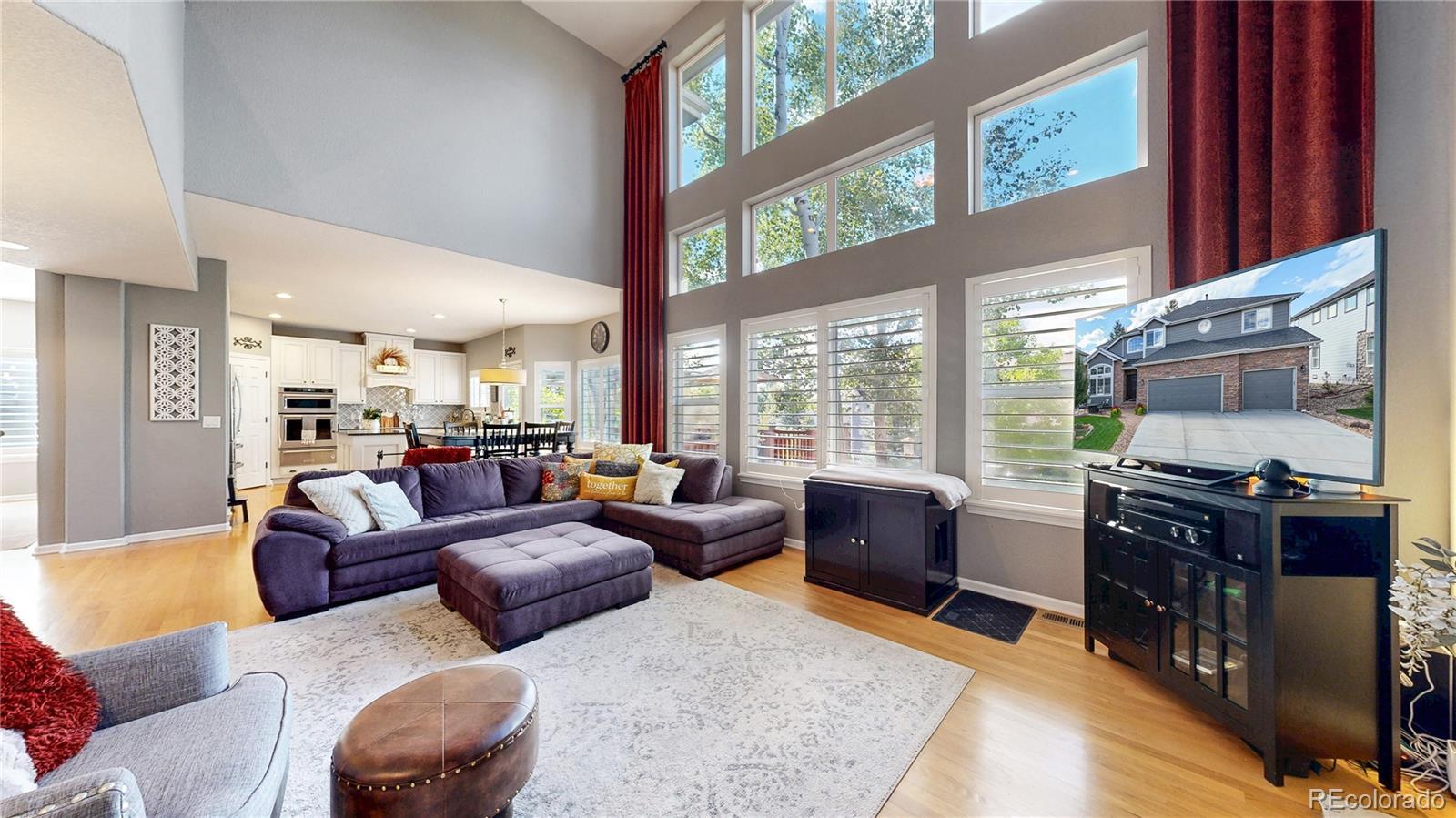 Wow!!! Discover your dream home in the prestigious Plum Creek golf course community! This stunning residence boasts gleaming hardwood floors, elegant plantation shutters, and soaring vaulted ceilings throughout the main floor. The family room captivates with a floor-to-ceiling custom stone fireplace, bathed in natural light from oversized windows. The gourmet eat-in kitchen, recently remodeled, features granite counters, a custom backsplash, cooktop, double ovens/microwave combo, and a spacious island, perfect for entertaining. Unwind in the expansive master suite with his-and-her closets and a luxurious, updated bathroom. Work from home in the private office or host movie nights in the thrilling theater room with projector and leather movie theatre style seating included. Amazing bonus space includes a pool table with theme based lighting. Step outside to a Trex deck and a professionally landscaped yard, ideal for enjoying Castle Rock’s vibrant lifestyle—think scenic hiking trails, famous incline, concerts in the park, charming downtown festivals, and breathtaking Rocky Mountain views. With a 3-car garage and abundant natural light throughout, this home is a masterpiece of comfort and style in a community that offers golf, outdoor adventures, and small-town charm. Buyer to verify all.