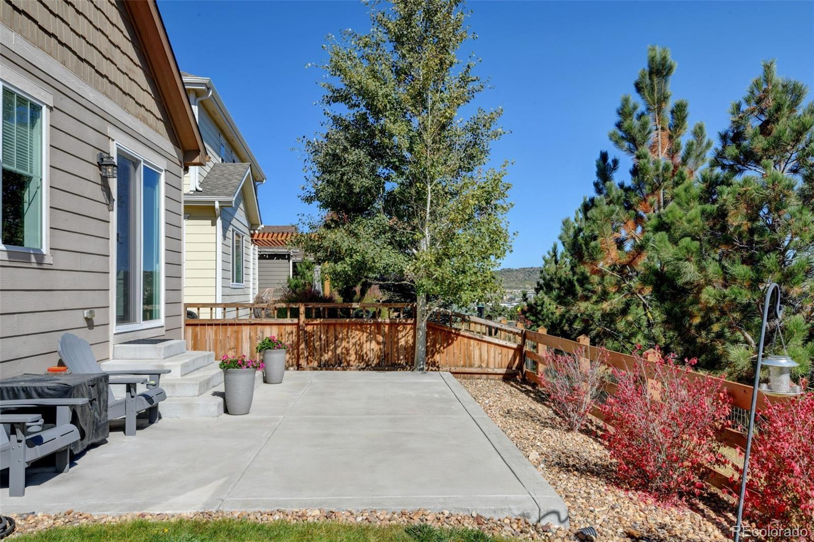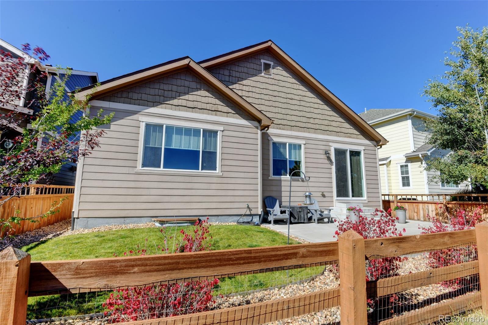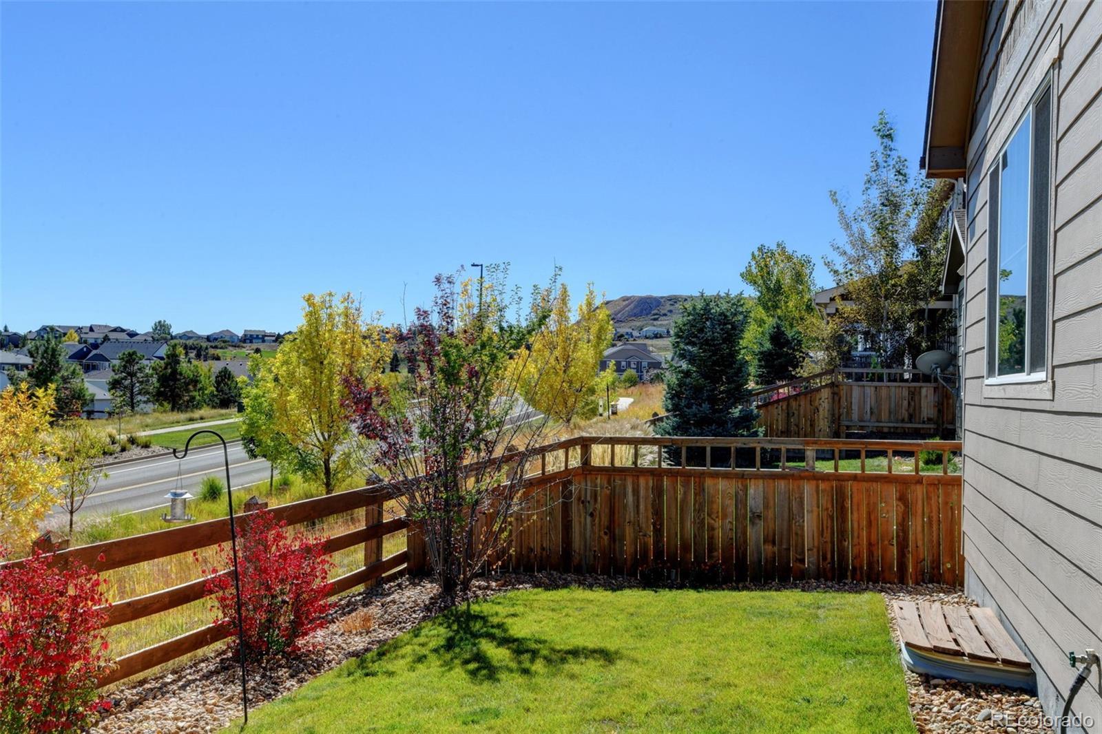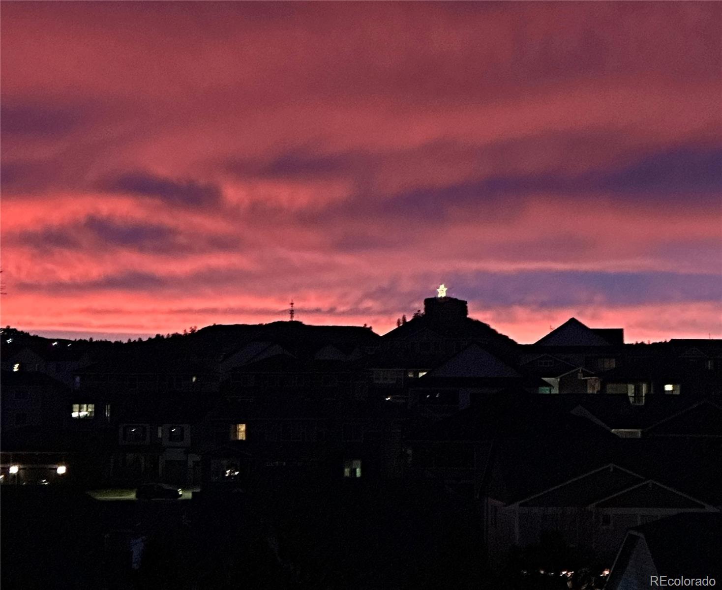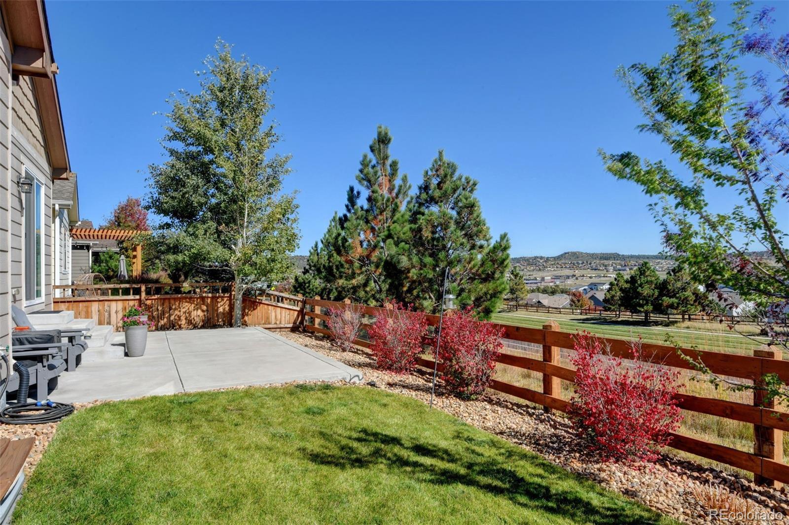 Effortless Main-Floor Living in The Meadows - Discover ranch-style simplicity with beautiful Castle Rock views and Bluff Mountain Views. Amazing Sunrises!! This welcoming home features an open layout where the kitchen shines with white cabinetry, snowflake granite countertops, stainless steel appliances and a pantry, perfect for everyday meals or entertaining. Three bedrooms and two full baths are all on one level, and the formal dining room flexes easily into a home office or study. Downstairs, the expansive unfinished basement offers nearly 1,981 sq ft of potential (total 3,978 sq ft living space) and boasts an impressive 10’7” ceiling—ideal for future living space, a home gym, theater, or even a golf simulator. The outdoor space is designed for easy living: a large patio, low-maintenance grass yard, fenced backyard backing to green space, and a covered front porch. Nearby trails, parks, and community amenities bring the best of Colorado living- relaxed, connected and close to everything Castle Rock offers.