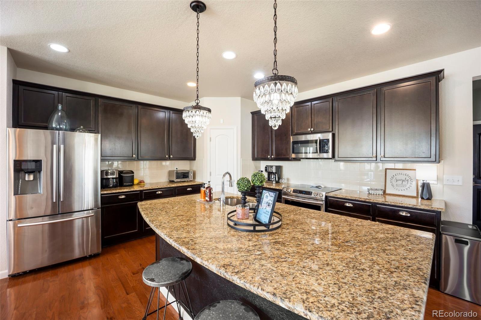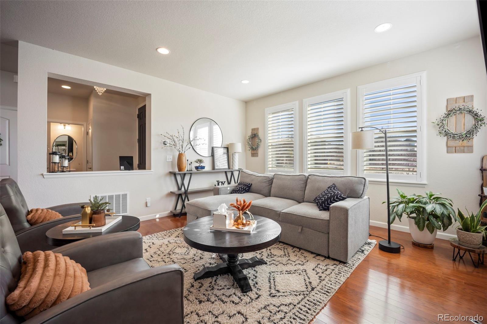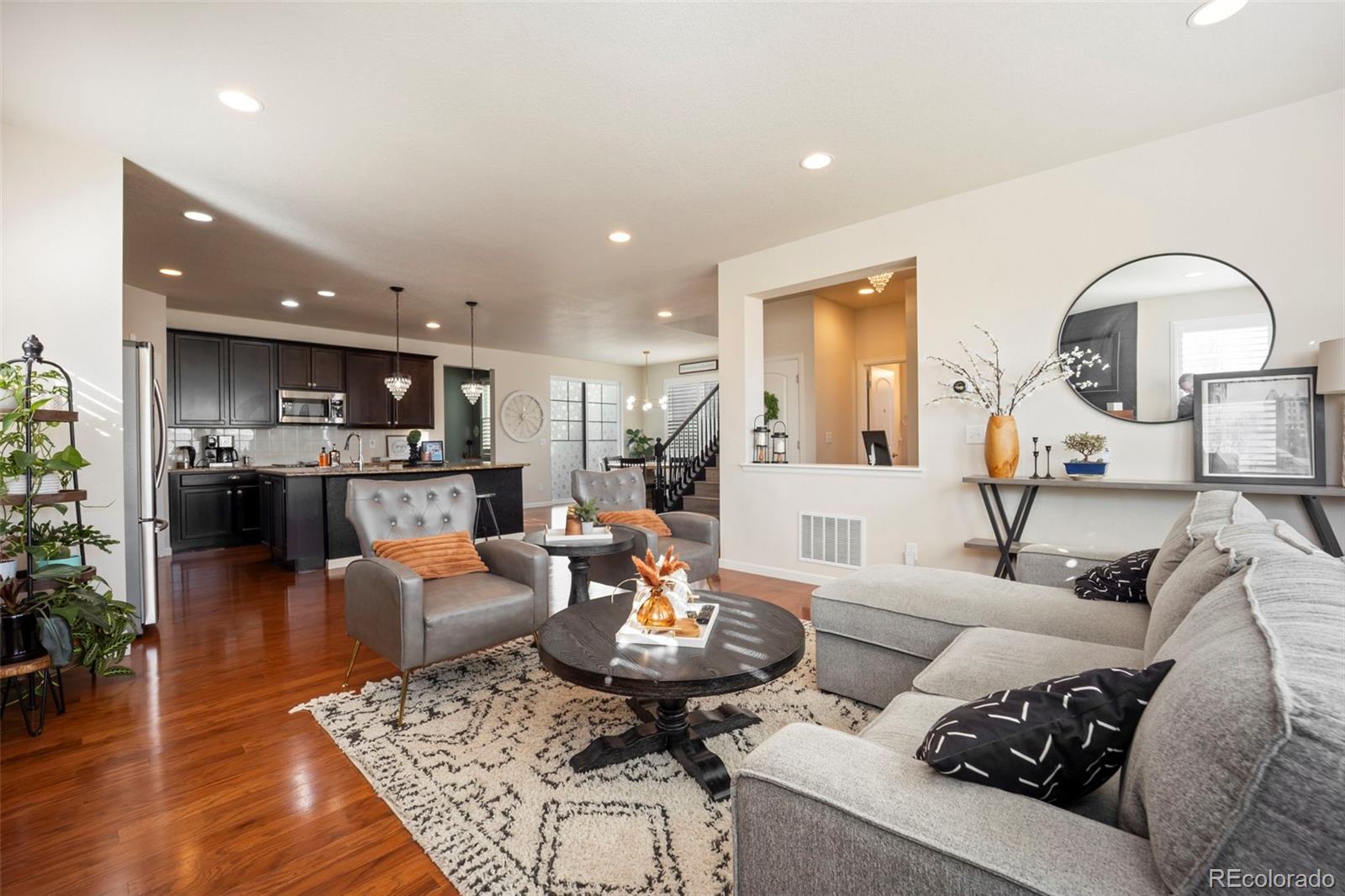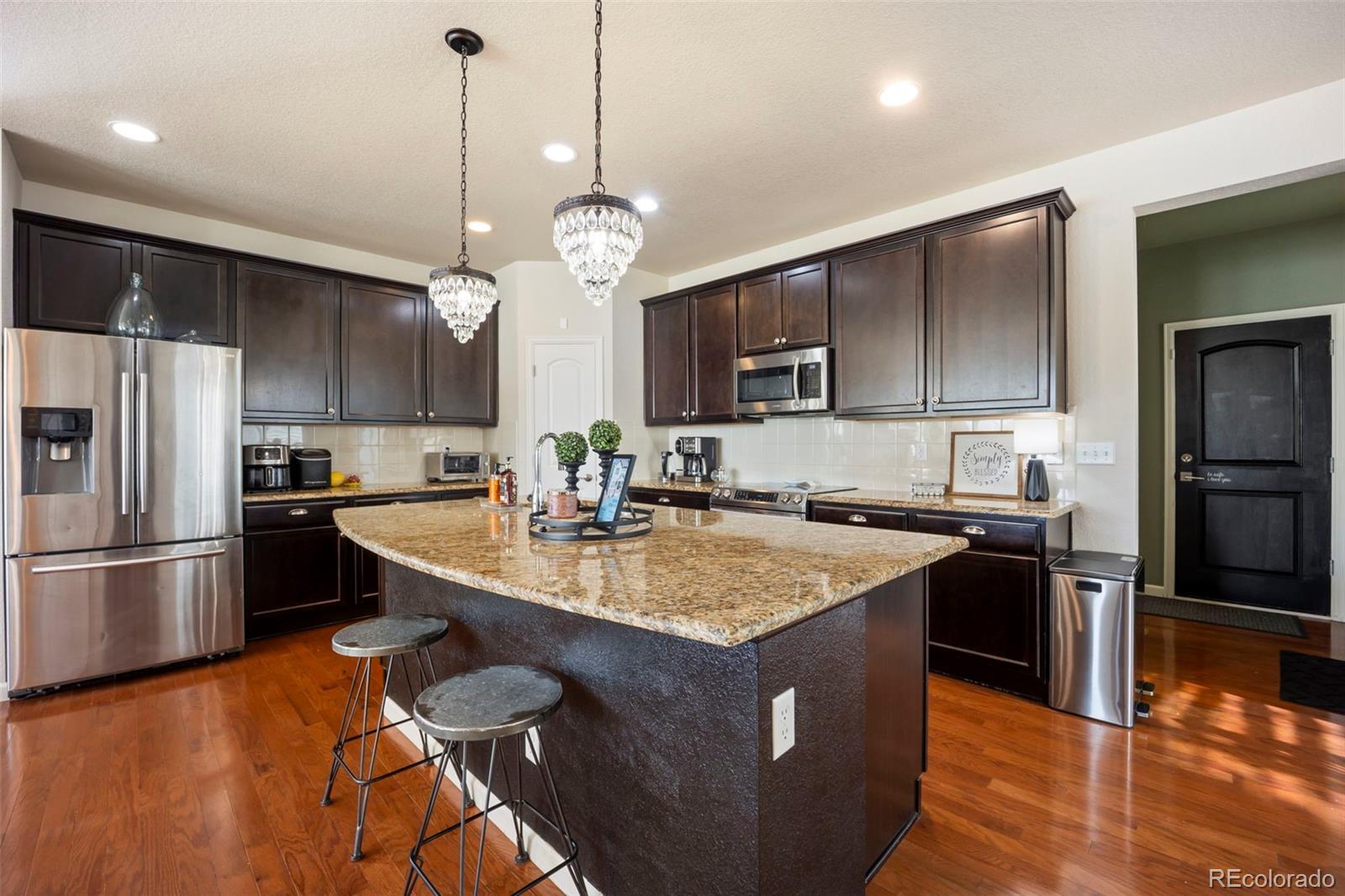 Fantastic open floor plan home featuring upgraded cooks kitchen, beautiful hardwoods throughout, modern touches throughout, fully fenced in yard, and even more room to grow! This awesome home is located within the Murphy Creek Community which centers around the 18 hole Murphy Creek Golf Course, and offers a "sparse urban" feel, convenient to the E-470 tollway for commuting to Denver or DIA. Nearby Homestead Park and Great Plains Park provide playgrounds, sports fields, trails, and water features. This community not only offers convenience for travel to and from work, but offers tons of recreation, activities, and charm as it continues to draw people in with its urban feel. Book your appointment today!