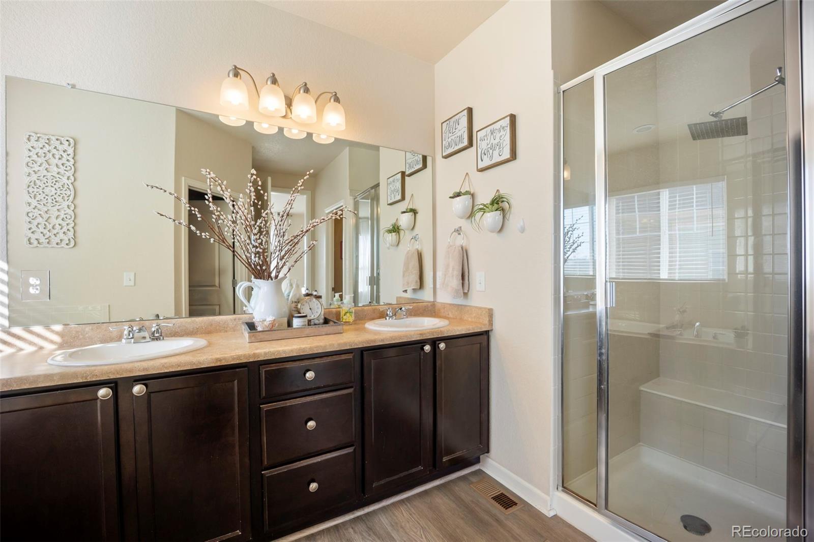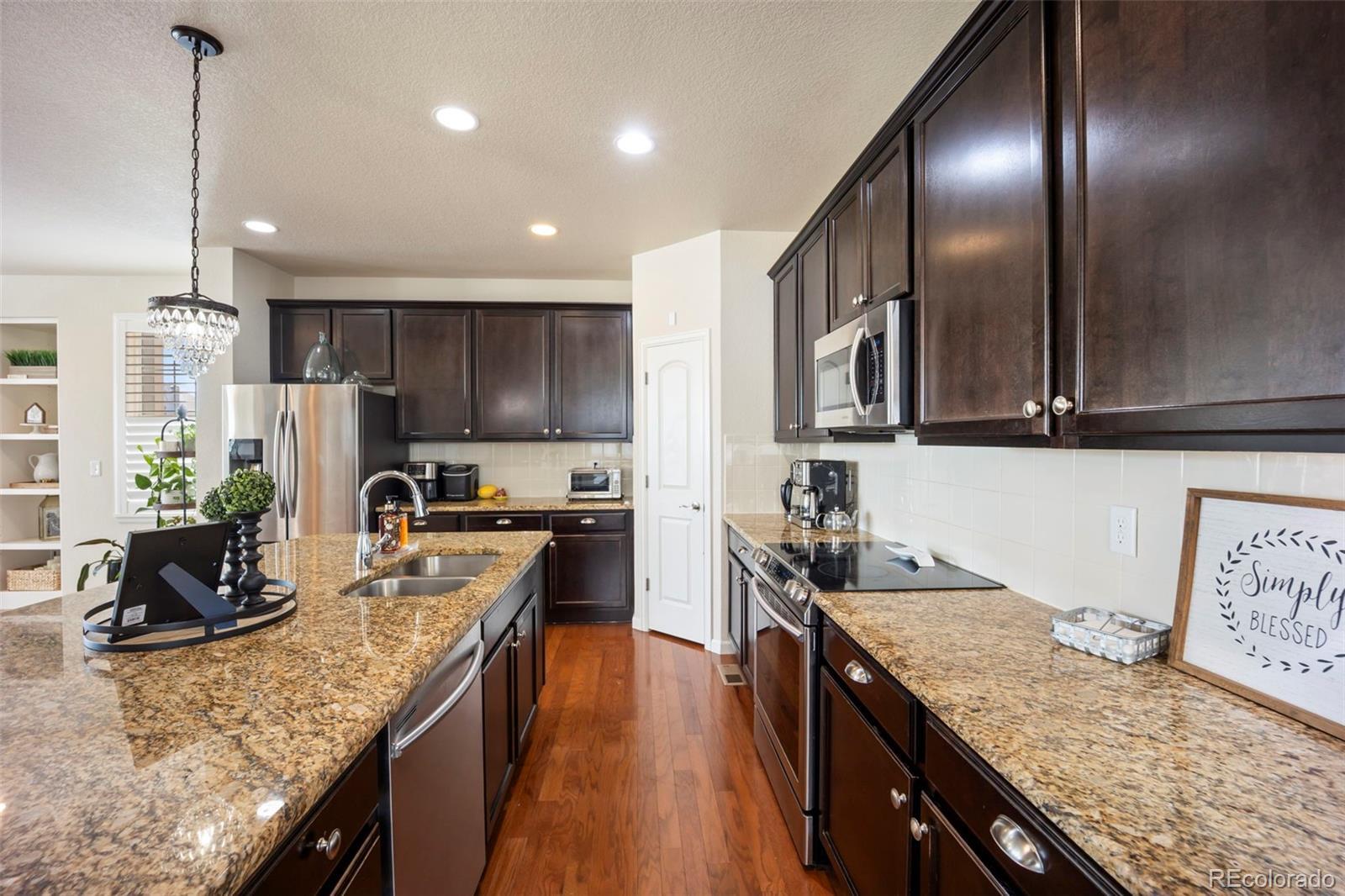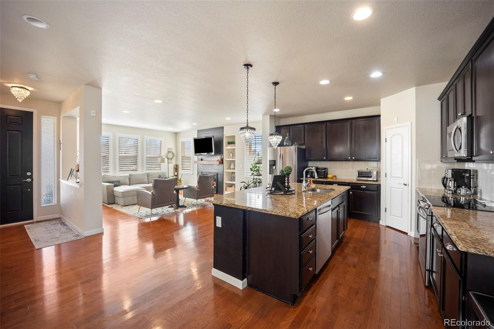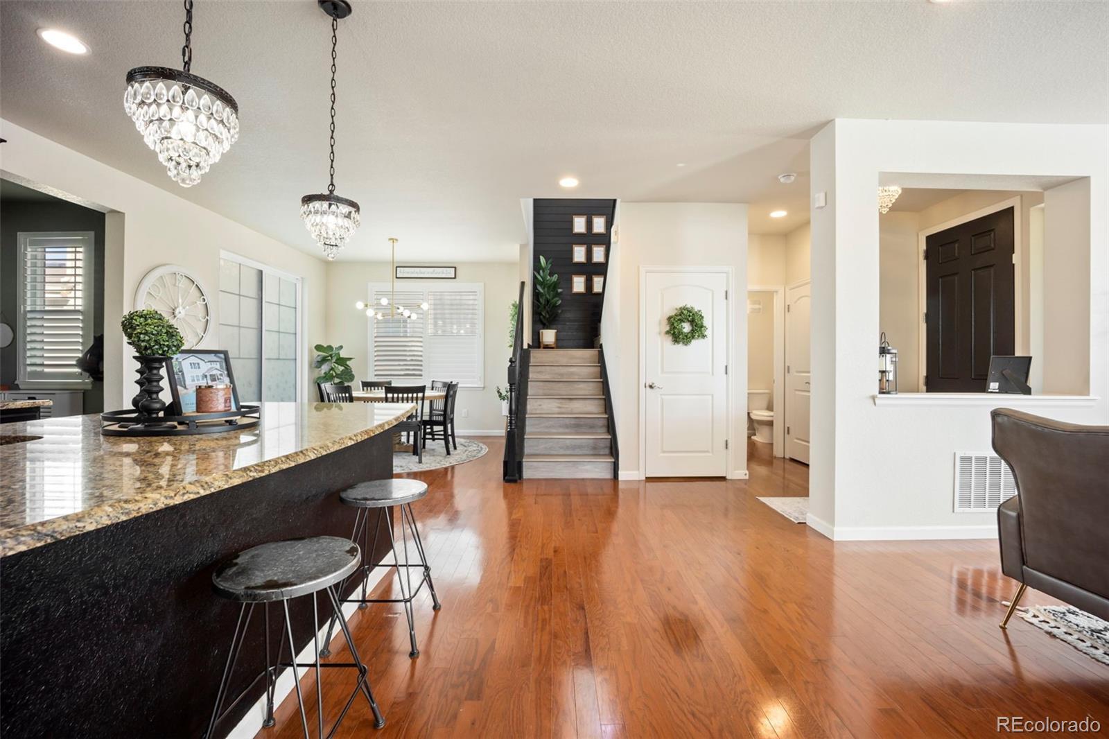 Fantastic open floor plan home featuring upgraded cooks kitchen, beautiful hardwoods throughout, modern touches throughout, fully fenced in yard, and even more room to grow! This awesome home is located within the Murphy Creek Community which centers around the 18 hole Murphy Creek Golf Course, and offers a "sparse urban" feel, convenient to the E-470 tollway for commuting to Denver or DIA. Nearby Homestead Park and Great Plains Park provide playgrounds, sports fields, trails, and water features. This community not only offers convenience for travel to and from work, but offers tons of recreation, activities, and charm as it continues to draw people in with its urban feel. Book your appointment today!