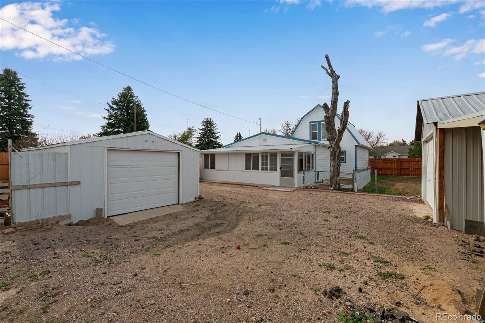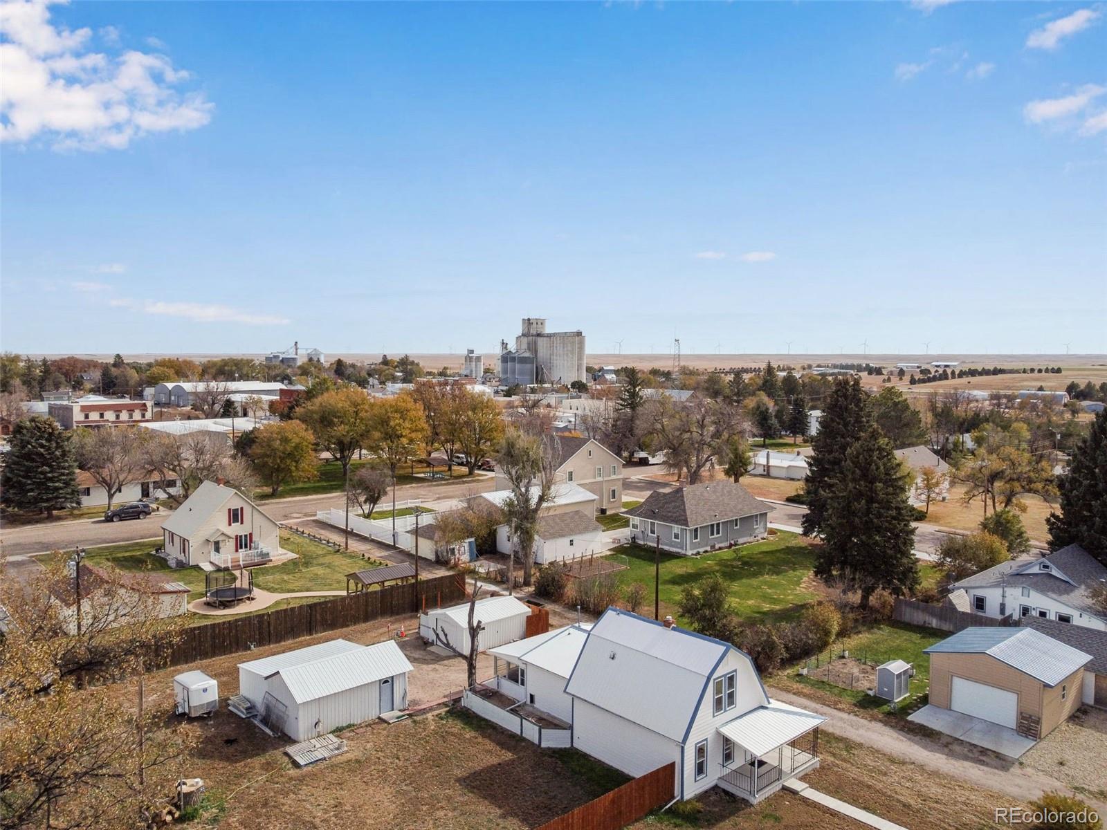Move right in and feel at home in this spacious and versatile two-story charmer, perfectly situated on an oversized lot just a block from K-12 Flagler Public School. Freshly painted inside and out this home is move-in ready! Inside, you’ll find 4 beds/3 baths thoughtfully designed for both comfort and function. The main level includes a bright living room, an inviting eat-in kitchen, and a convenient laundry area — along with the primary bedroom featuring its own ¾ bath. Upstairs, three additional bedrooms and a second ¾ bath offer flexible living space for family, guests, or a home office. The lower level adds even more versatility, partially finished and highlighted by a beautifully tiled ¾ bath with a roll-in shower. Step outside to enjoy the enclosed rear porch with new outdoor carpeting. You’ll also love the two detached one-car garages with brand-new concrete floors, automatic openers, and a covered carport for extra parking. A private well provides an alternative landscaping water source, while the newly installed cedar privacy fence enhances both security and tranquility. With updated plumbing, updated electrical panel, and dual heating systems (electric baseboard and gas forced air), this home combines small-town charm with modern comfort. Whether you’re sipping cocoa by the window or hosting holiday guests, this move-in ready home is ready to welcome you this season. Call today to schedule your private showing!
