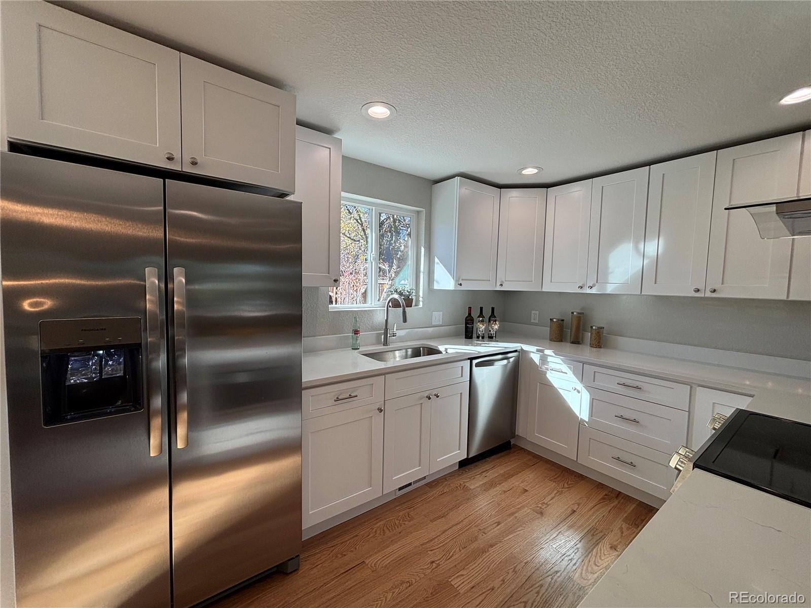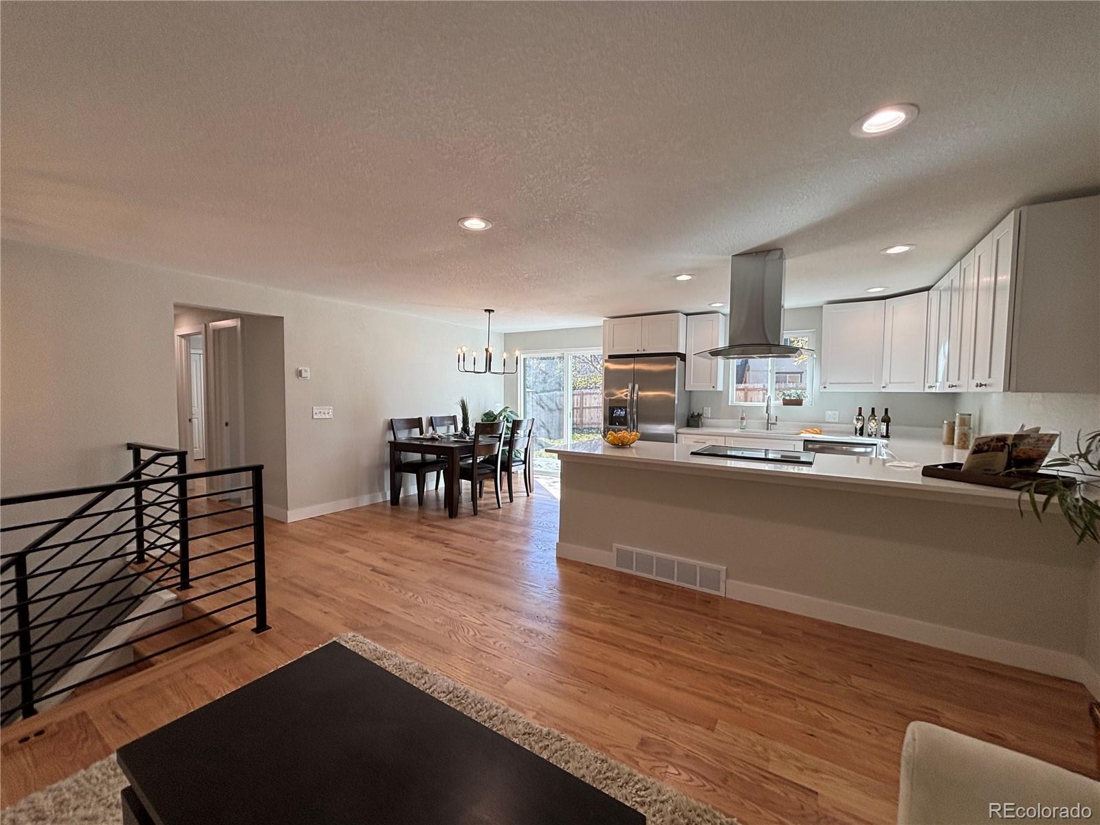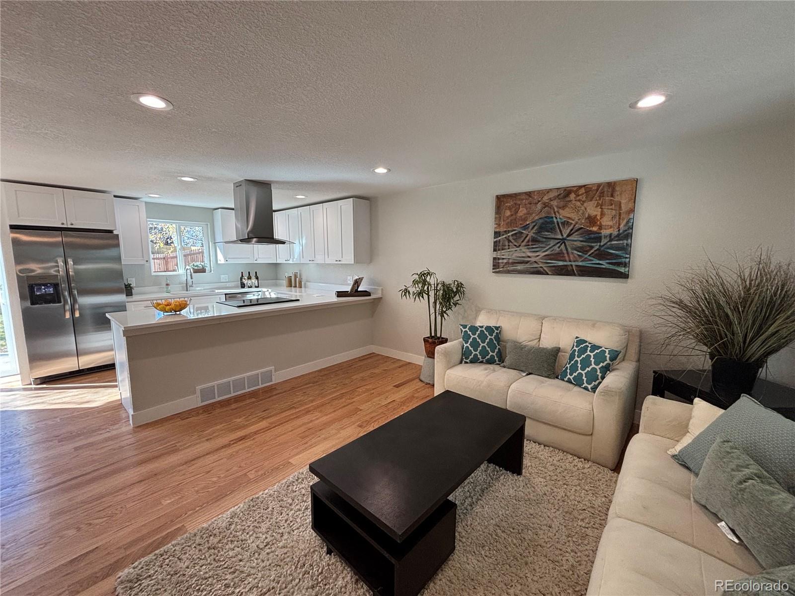 Welcome to this charming single-family home in Arvada. This updated 3-bedroom, 2-bathroom home offers the perfect blend of modern elegance and comfort. Featuring fresh, vibrant paint and upgraded lighting throughout, this home creates a welcoming atmosphere from the moment you step inside. The gorgeous hardwood flooring flows seamlessly through the upper level, while brand-new carpet adds a cozy touch to the lower level. The kitchen is a true highlight with beautiful wood cabinetry, luxurious quartz countertops, and stainless-steel appliances. – perfect for cooking and entertaining. The bathrooms have been meticulously updated with stylish designer tile. All new landscaping! Located in a fantastic neighborhood. This home is ready for you to move in and start making memories. Don’t miss your chance to see this amazing home – it’s waiting for you!