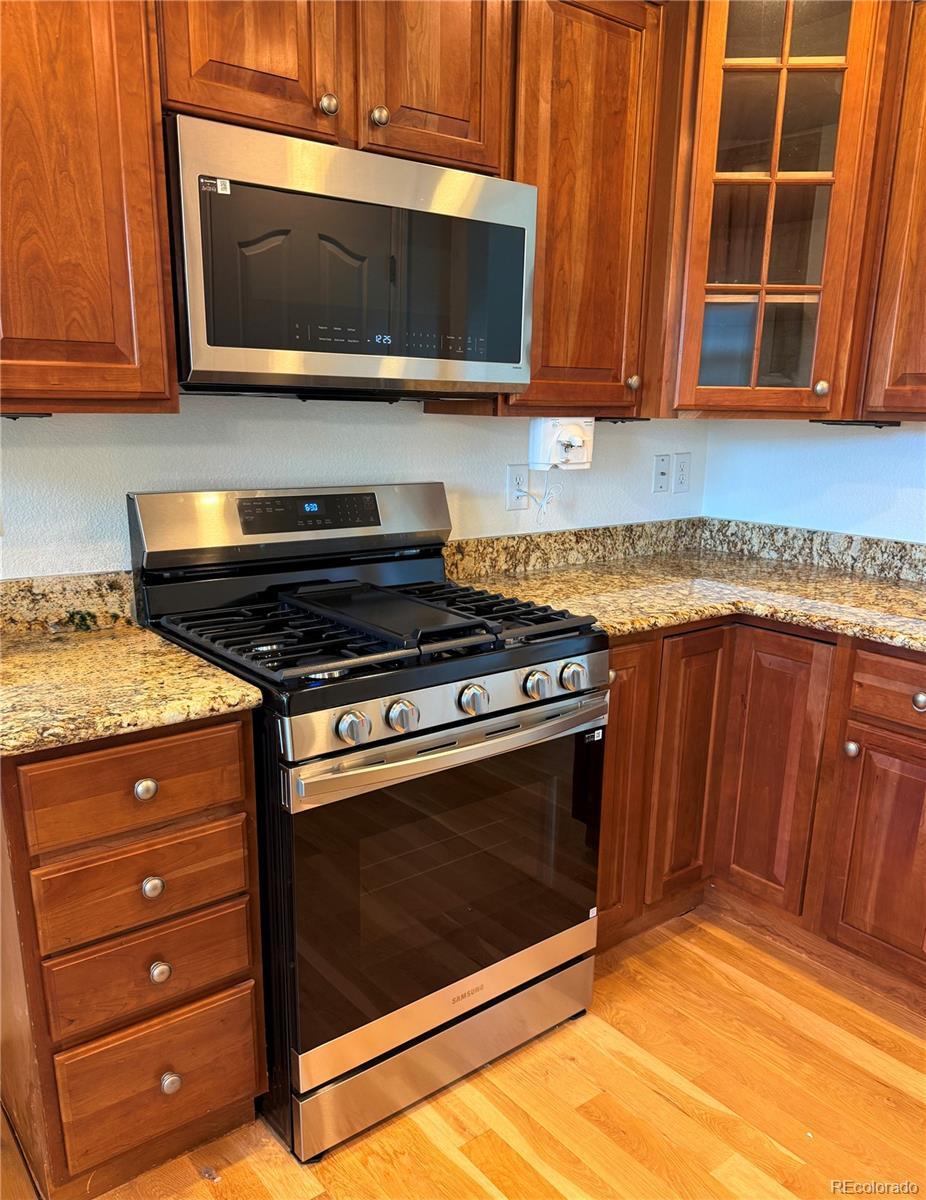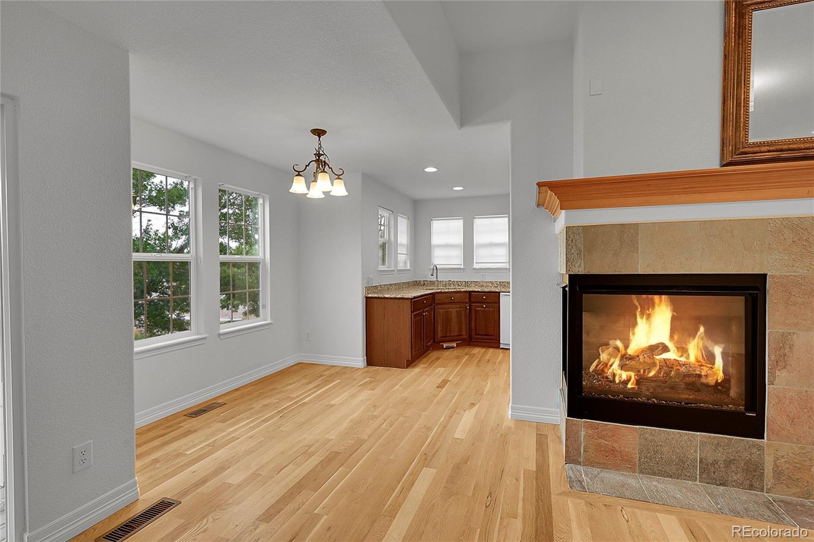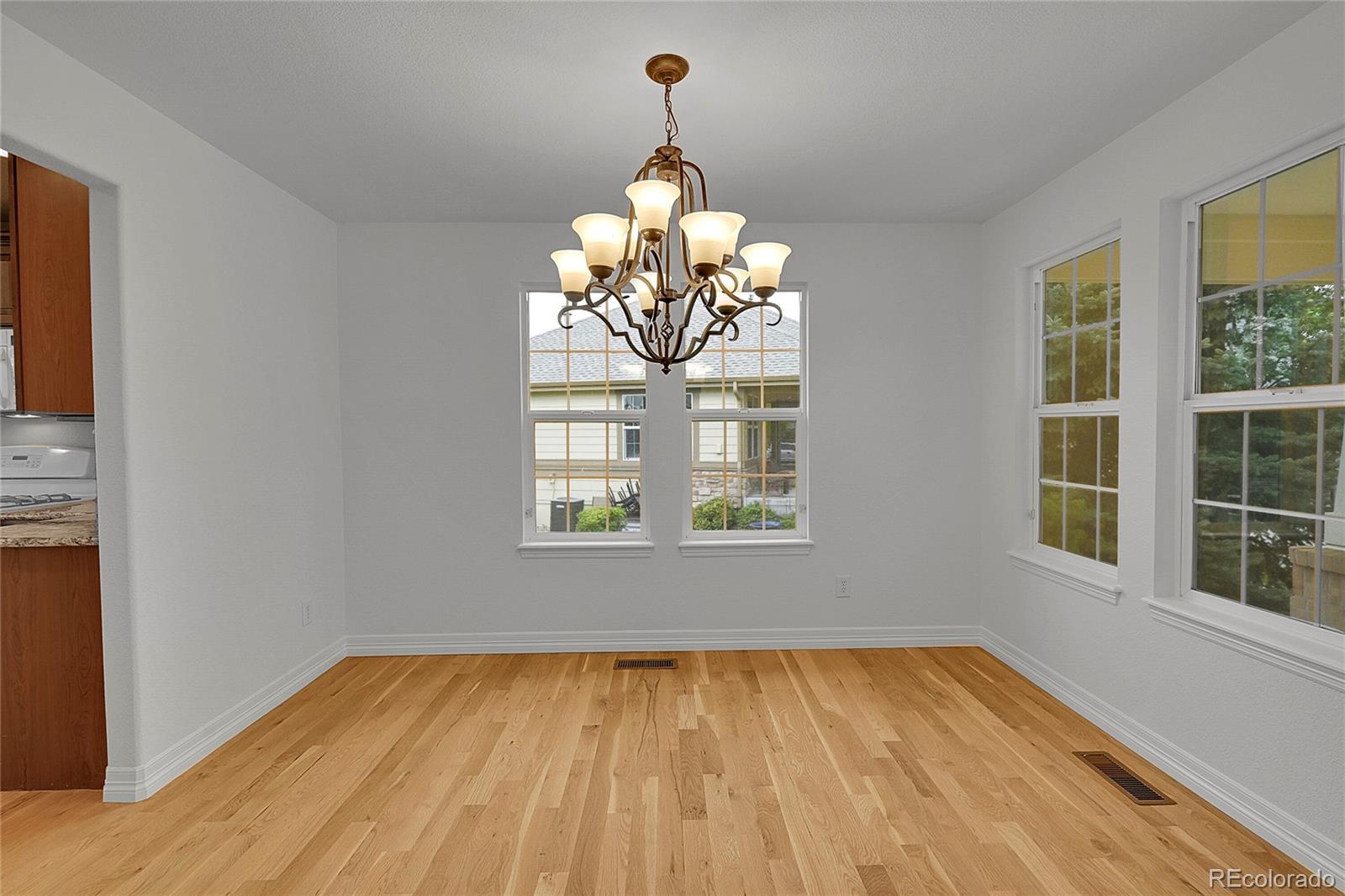 New, updated price! Welcome to this stunning 3-bedroom, 3-bath paired home nestled in the desirable 55+ golf course community of Heritage Todd Creek in Thornton. Spanning an impressive 2,680 square feet, this beautifully designed home boasts a finished garden-level basement, perfect for entertaining or relaxing. Step inside to discover a spacious great room with soaring 10-foot ceilings, adorned with newer beautiful hardwood floors and a cozy fireplace, creating an inviting atmosphere. The eat-in kitchen features brand new Samsung appliances with 5-burner gas cooktop, refrigerator, dishwasher, and built-in microwave oven, elegant granite countertops, and rich 42-inch cherry cabinets, making meal prep a delightful experience. The primary suite offers a luxurious retreat with a generous walk-in closet, while the additional formal dining room or study provides flexibility for your lifestyle needs. Freshly, professionally painted, the interior exudes warmth and charm. Enjoy morning coffee or sunsets on the covered deck or front porch, with picturesque views of the greenbelt right in your backyard. Experience resort-style living with HOA-managed exterior maintenance, allowing you to focus on leisure. Just a few blocks away, the clubhouse presents a variety of amenities, including a public restaurant, golf course, gym, two pools, a spa, and tennis courts. Dive into an active lifestyle filled with engaging clubs and activities that make this community truly special!