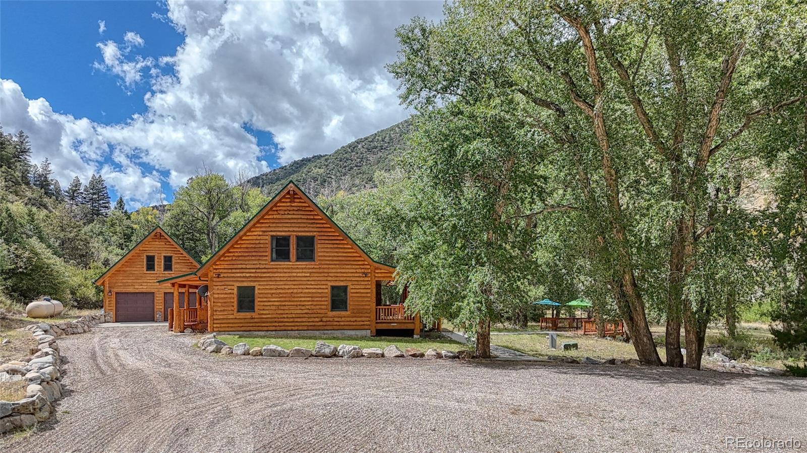 Unplug and unwind in this stunning log home featuring soaring ceilings, 38+ acres of mountain paradise, and an additional dwelling unit! Backing up to BLM and in the heart of the Rockies, this fully furnished 4-bedroom, 2-bath log mountain home offers the perfect blend of rustic charm and modern convenience with possible income potential! A spacious wraparound deck invites you to take in the sights and sounds of nature, while a private road is shared with only one other home, ensuring peace and seclusion. With soaring aspen wood finishes throughout, a detached garage, and an additional living unit, there’s room for everyone to relax and enjoy the Colorado lifestyle. Poncha Creek runs right through the property, providing private fishing access and a serene setting just minutes from downtown Salida or Poncha Springs. The property spans over 38+ acres, offering endless opportunities for recreation, gardening, or simply enjoying the breathtaking views. This home comes complete with an incredible package of inclusions: 2022 Kioti HP35 Tractor (47 hours) with box blade, landscape rake, brush mower, pallet fork, and bucket, 2021 Kawasaki Teryx-S 4-Seater with steel plates and pull-behind landscape drag, Trailer with brand-new tires, gardening and electrical tools, plus so much more. Whether it’s a mountain getaway, a year-round residence, a smart investment, or your own private sanctuary, this property has it all complete with soaring tongue-and-groove ceilings and a durable, energy-saving SIP walls panels and roof. With turnkey furnishings and equipment included, it’s ready for you to move in and start living your mountain dream. Please see our virtual tour with video and floor plan walk through.